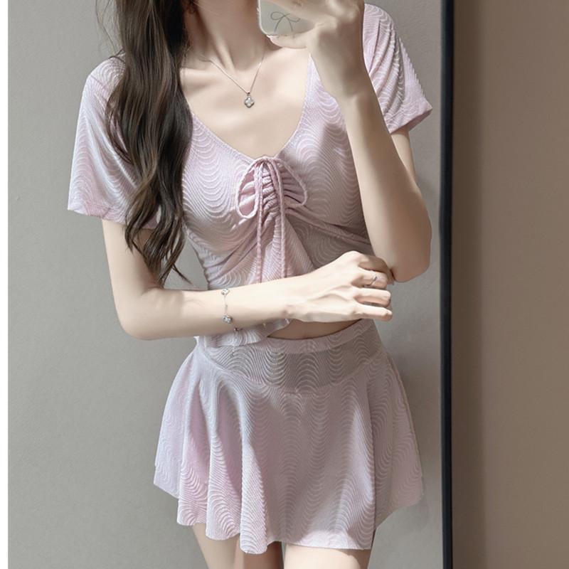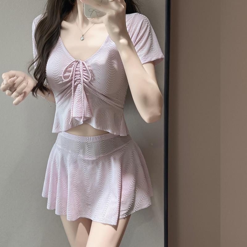 Compra Traje de Baño de Dos Piezas de Hada para Mujer Conservador Adelgazante Control de Abdomen Textura de Encaje Vacaciones en Aguas Termales Traje de Baño de Aguas Termales para Chica al por mayor en Joom.pro