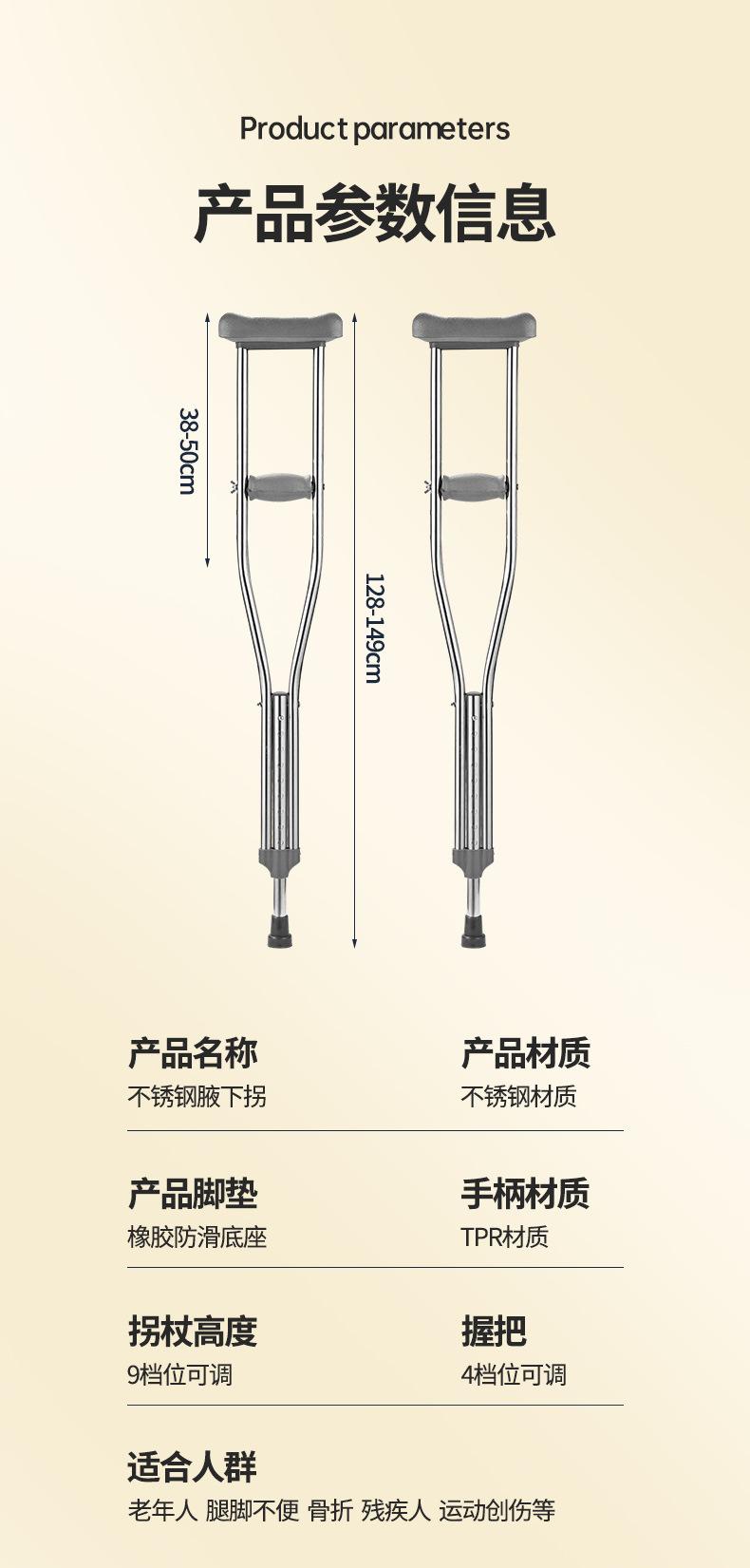 Suministros del Fabricante Muletas de Acero Inoxidable, Muletas Axilares Ajustables para Levantar, Muletas Dobles Engrosadas Antideslizantes, Ayudas para Caminar para Ancianos