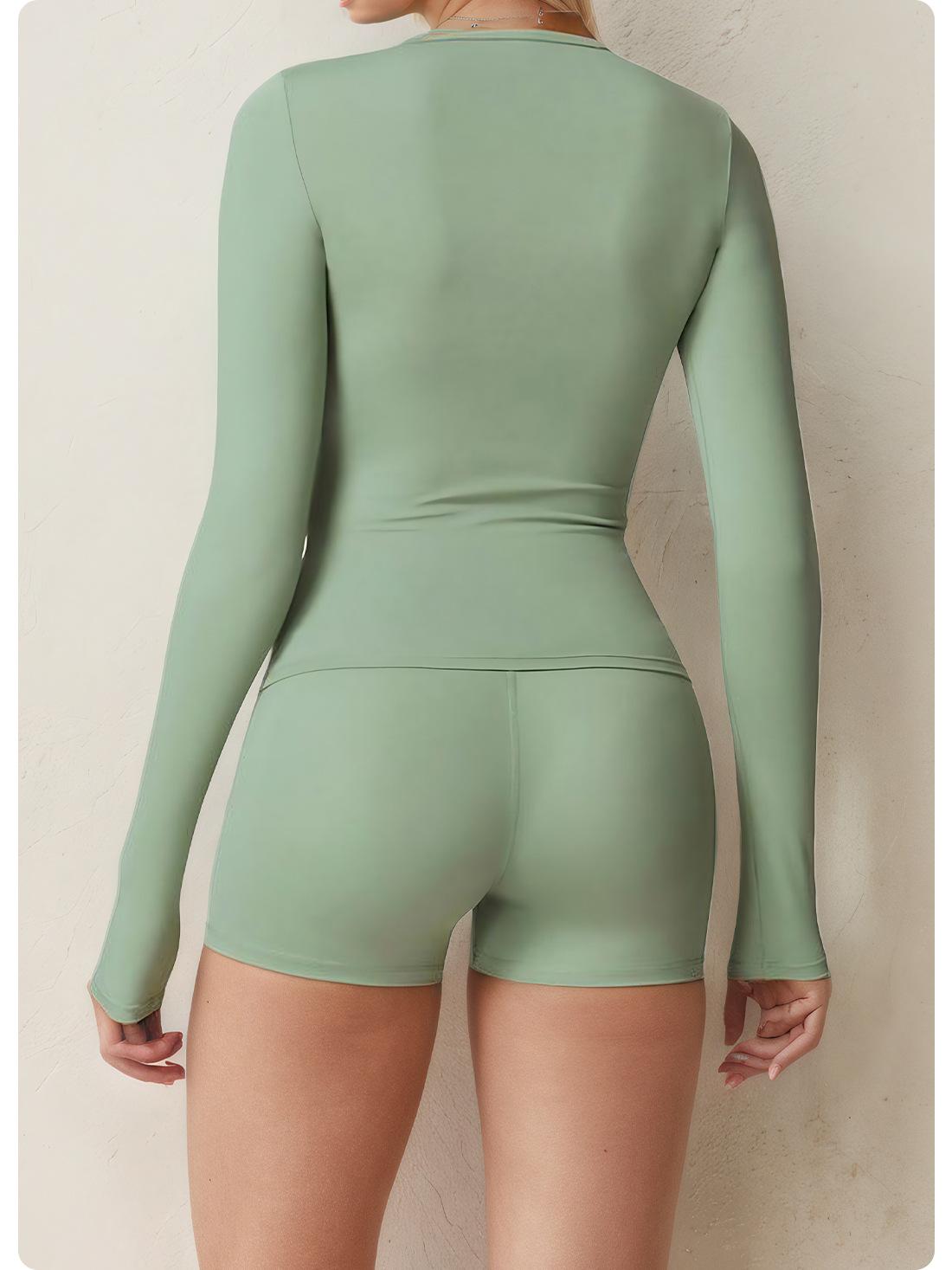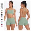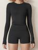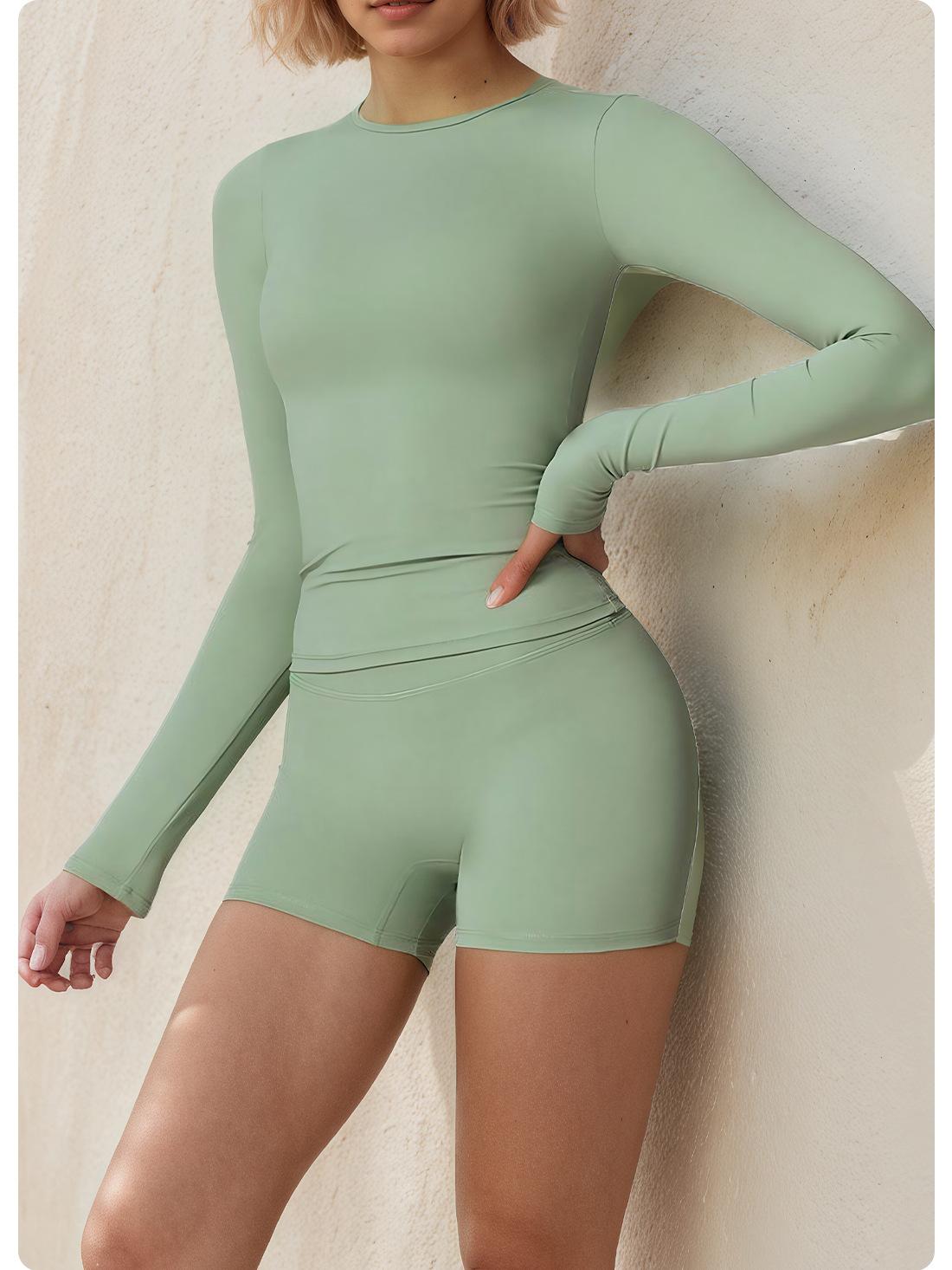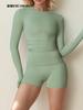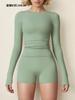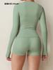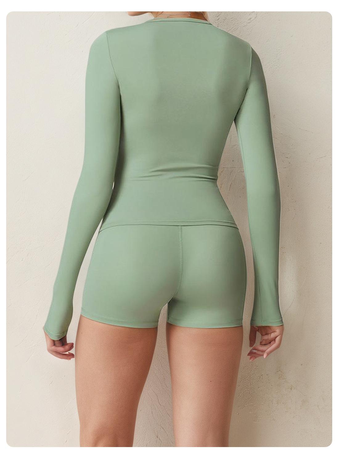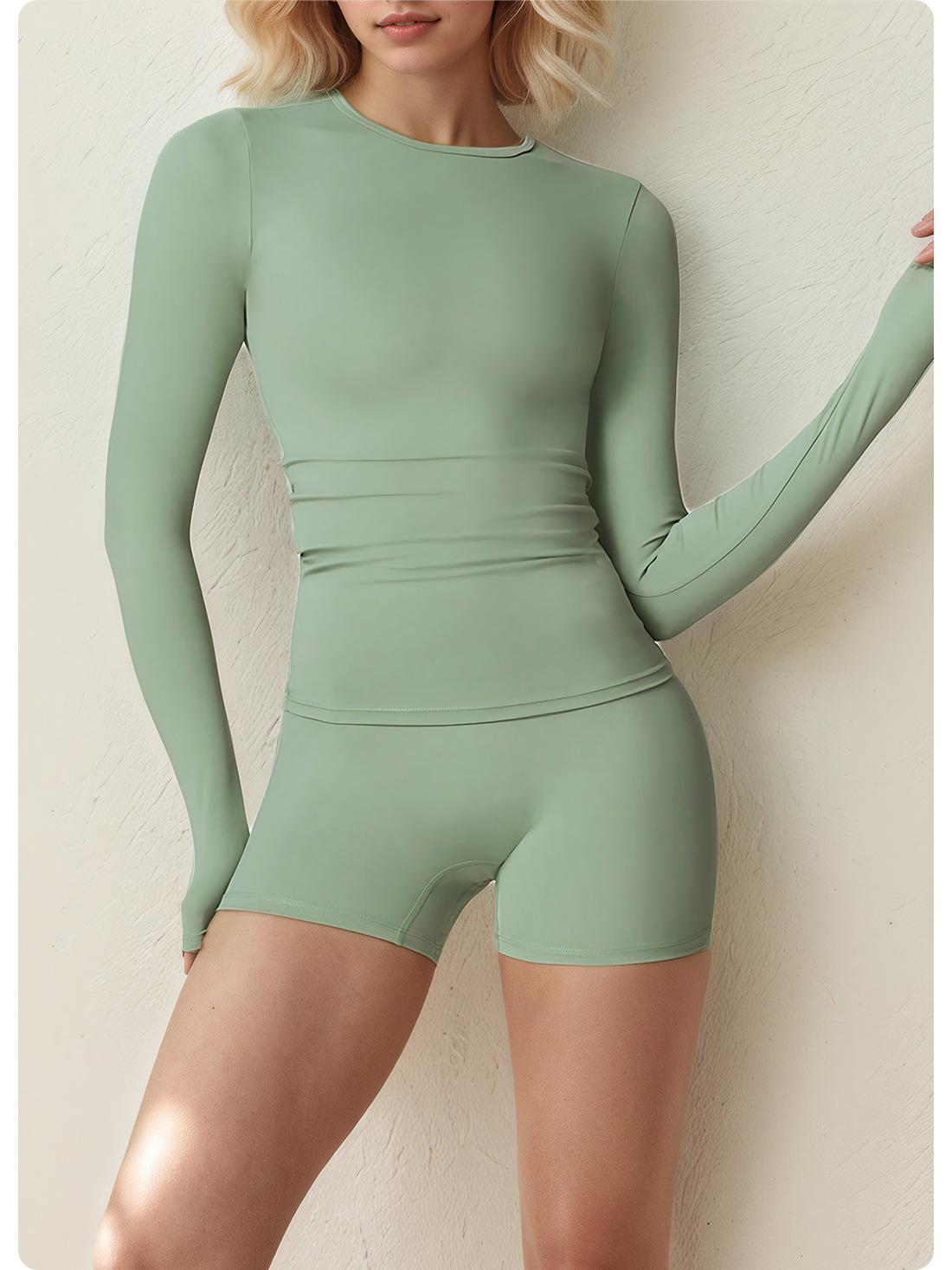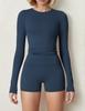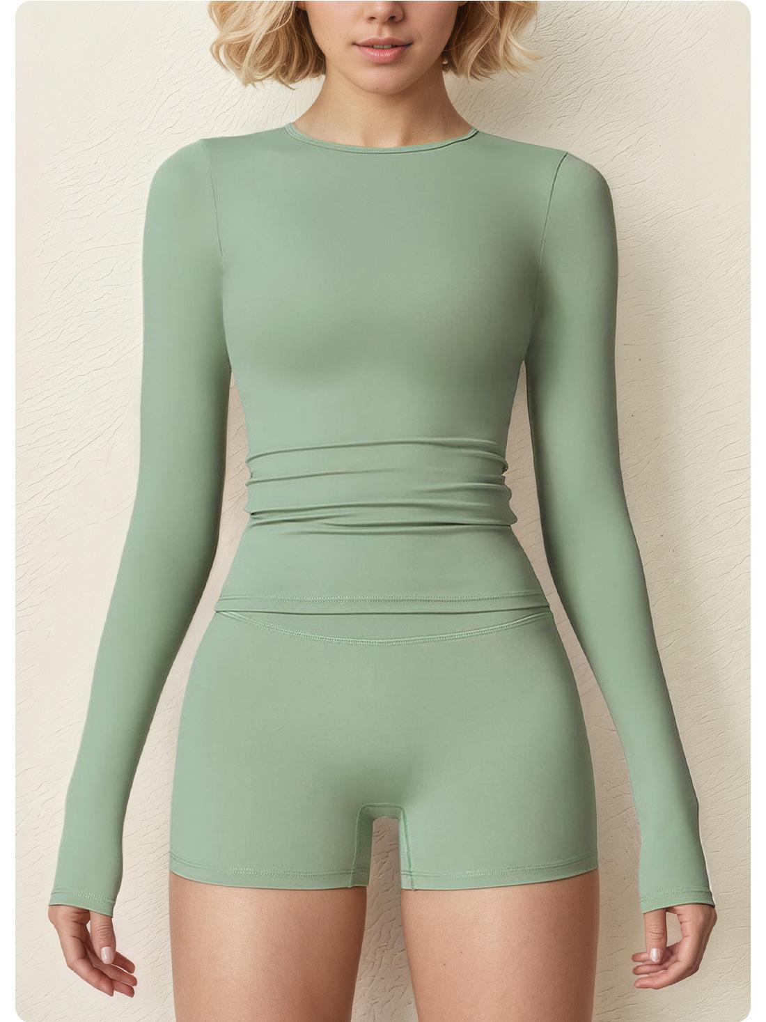 Conjunto de Ropa Deportiva de Yoga Transfronterizo Europeo y Americano con Sensación de Nube de Secado Rápido para Fitness Top de Manga Larga para Ejercicio al Aire Libre Shorts Levanta Glúteos