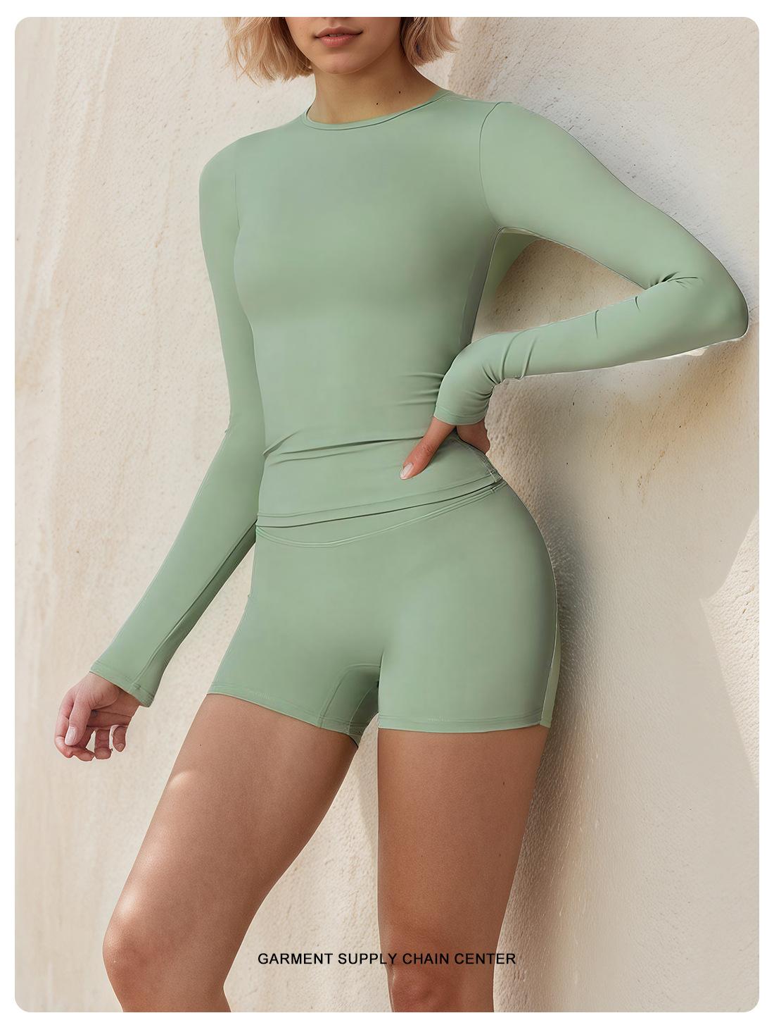 Conjunto de Ropa Deportiva de Yoga Transfronterizo Europeo y Americano Sensación Nube Secado Rápido Fitness Top de Manga Larga Ejercicio de Running al Aire Libre Shorts Levanta Glúteos