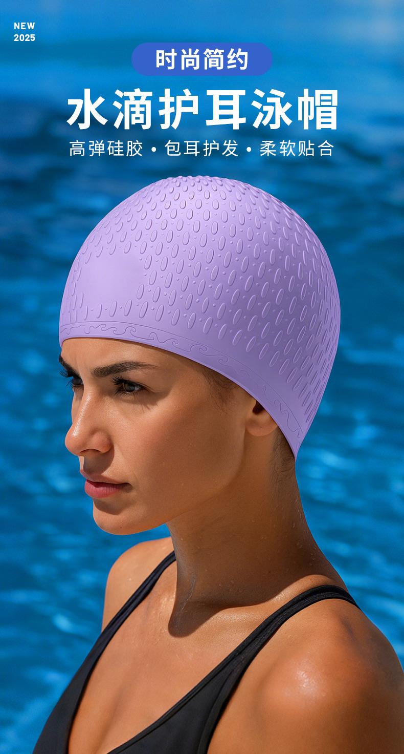 Gorro de Natación de Silicona, Unisex, Talla Grande, No Elástico, A Prueba de Oídos, Gorro de Natación Gota de Agua, Color Sólido, Gorro de Natación de Alta Elasticidad