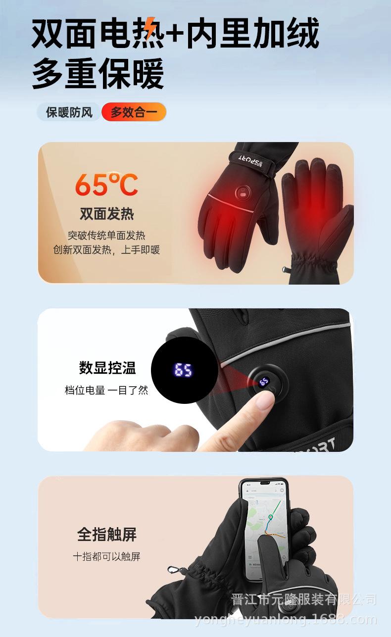 Guantes de Invierno Transfronterizos con Calefacción de Tres Niveles Forrados de Vellón Cálidos Táctiles Recargables para Ciclismo al Aire Libre Esquí Guantes Calefactables Eléctricos para Hombre