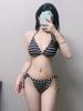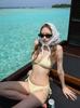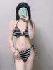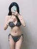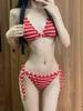 Traje de baño Nuevo Estilo Dividido Simple Rayado con Cordones Triángulo Bolsa Bikini con Almohadillas para el Busto Sexy Traje de Baño de Vacaciones de Playa para Mujer