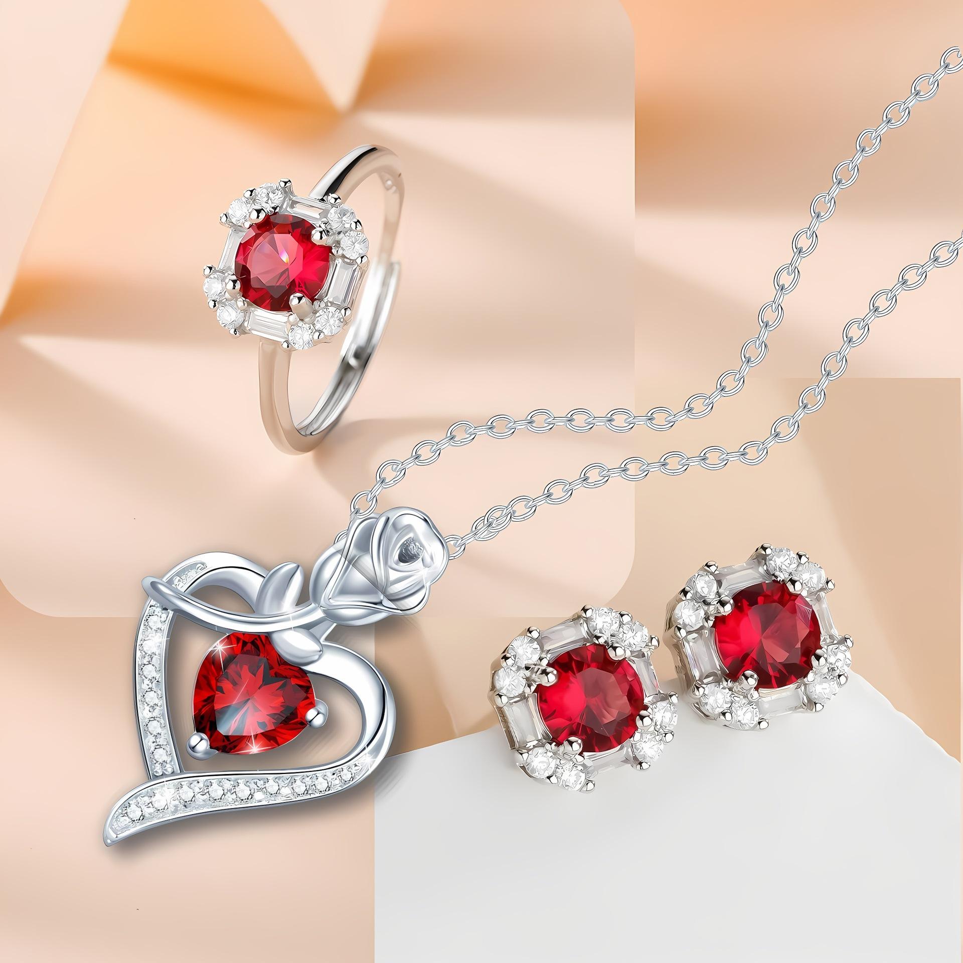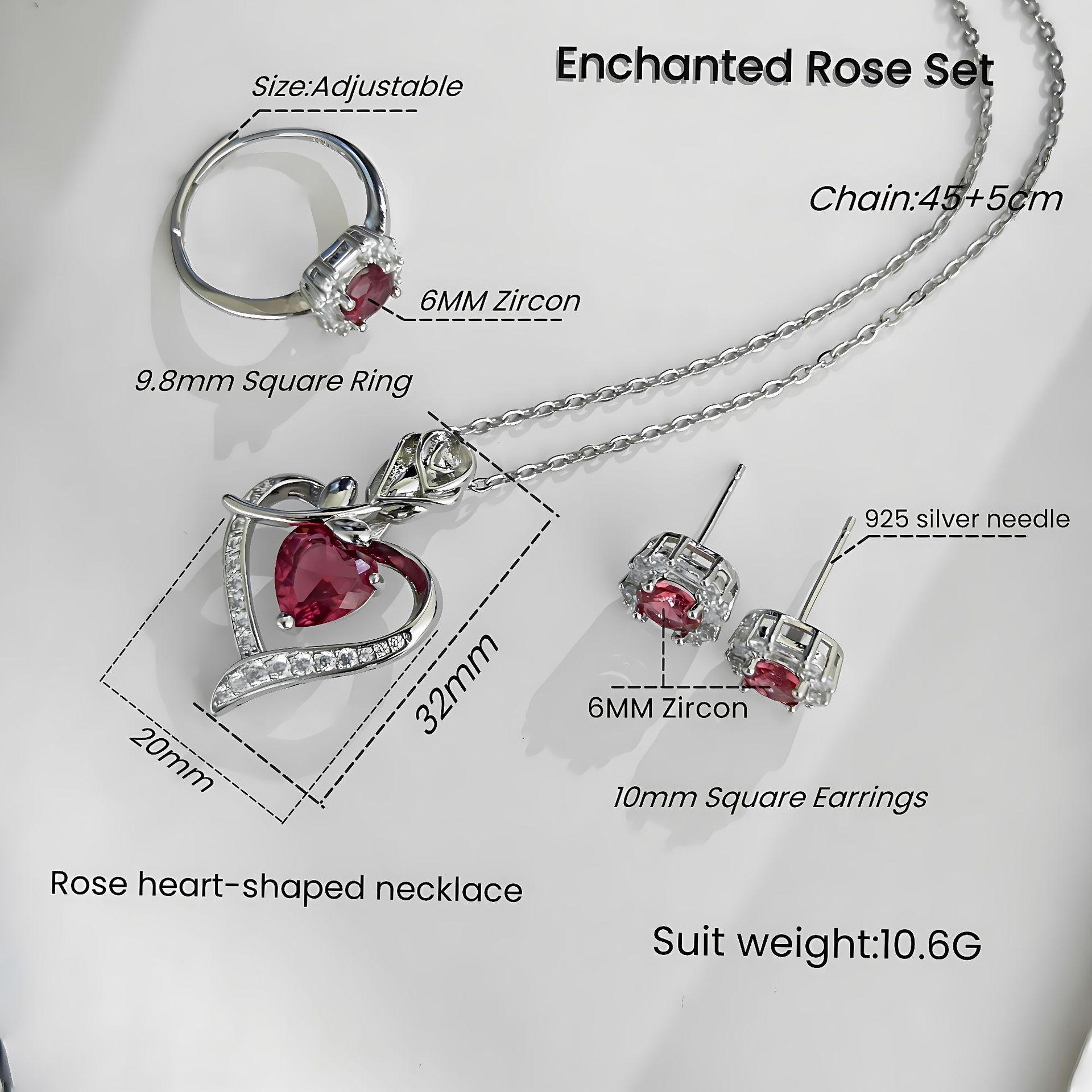 Heart red diamond rose heart necklace, Heart red diamond earrings, Heart red diamond ring, Heart red rose suit...