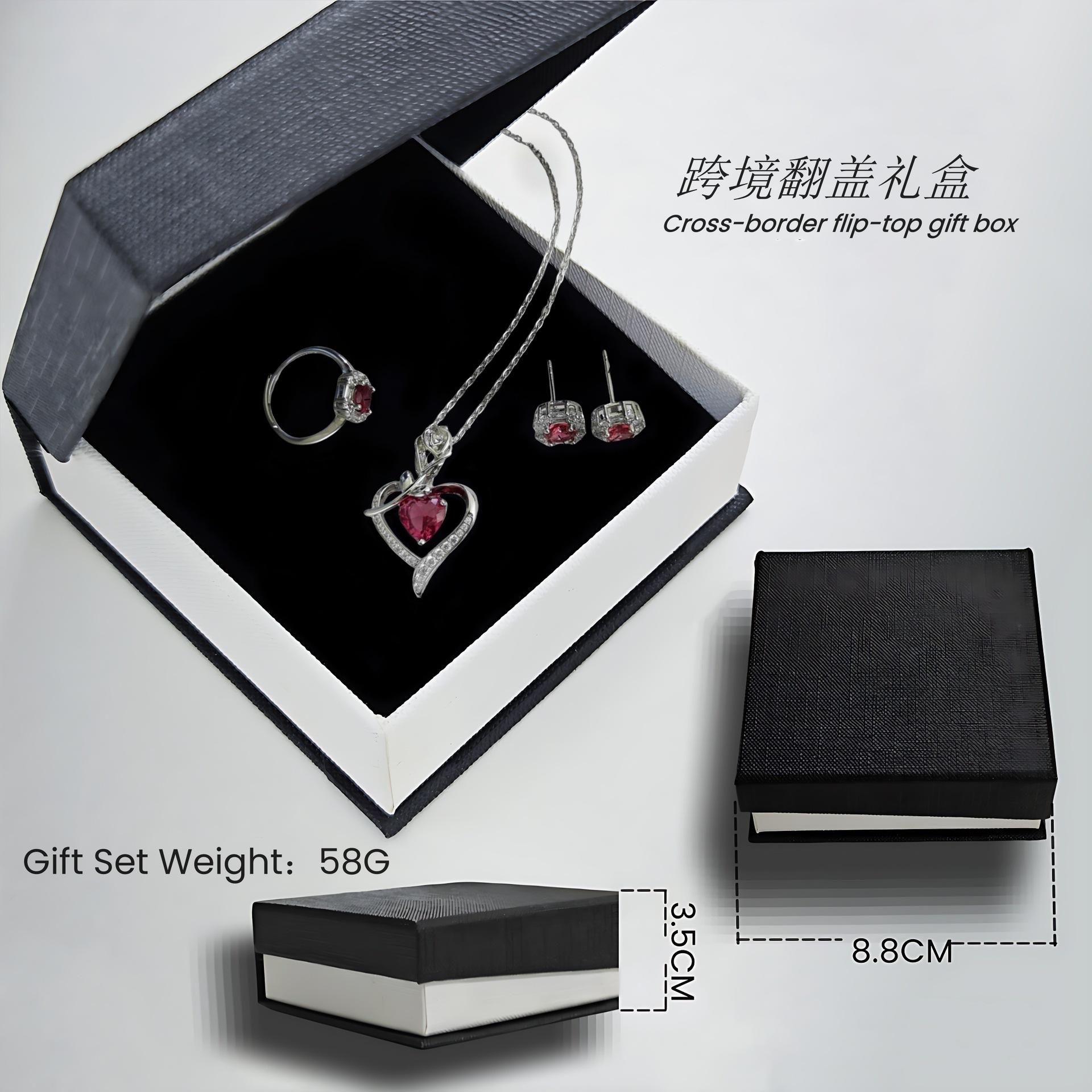 Transfronterizo Nuevo Juego de Joyería de Tres Piezas Collar Aretes Anillo Colgante de Corazón de Amor de Alta Gama