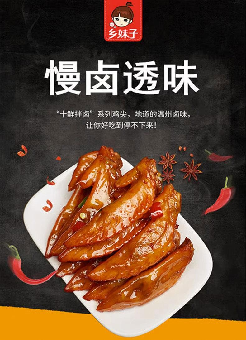 Punta de ala de pollo Xiangmeizi con múltiples sabores punta de ala de pollo punta de pollo picante oficina marinado comida cocinada paquete pequeño bocadillo snacks