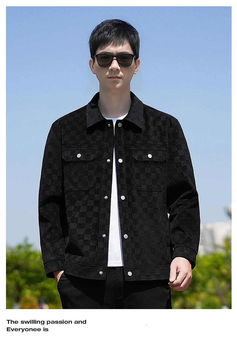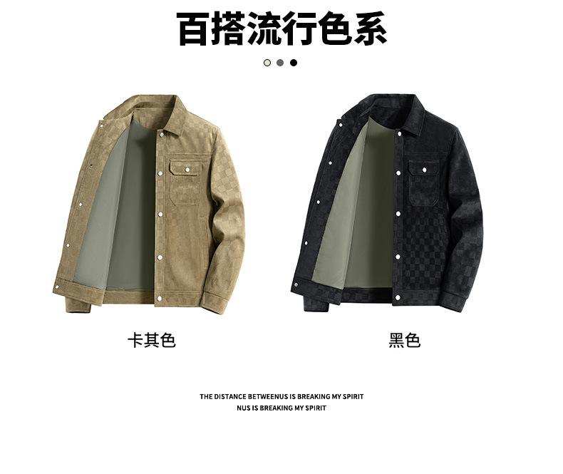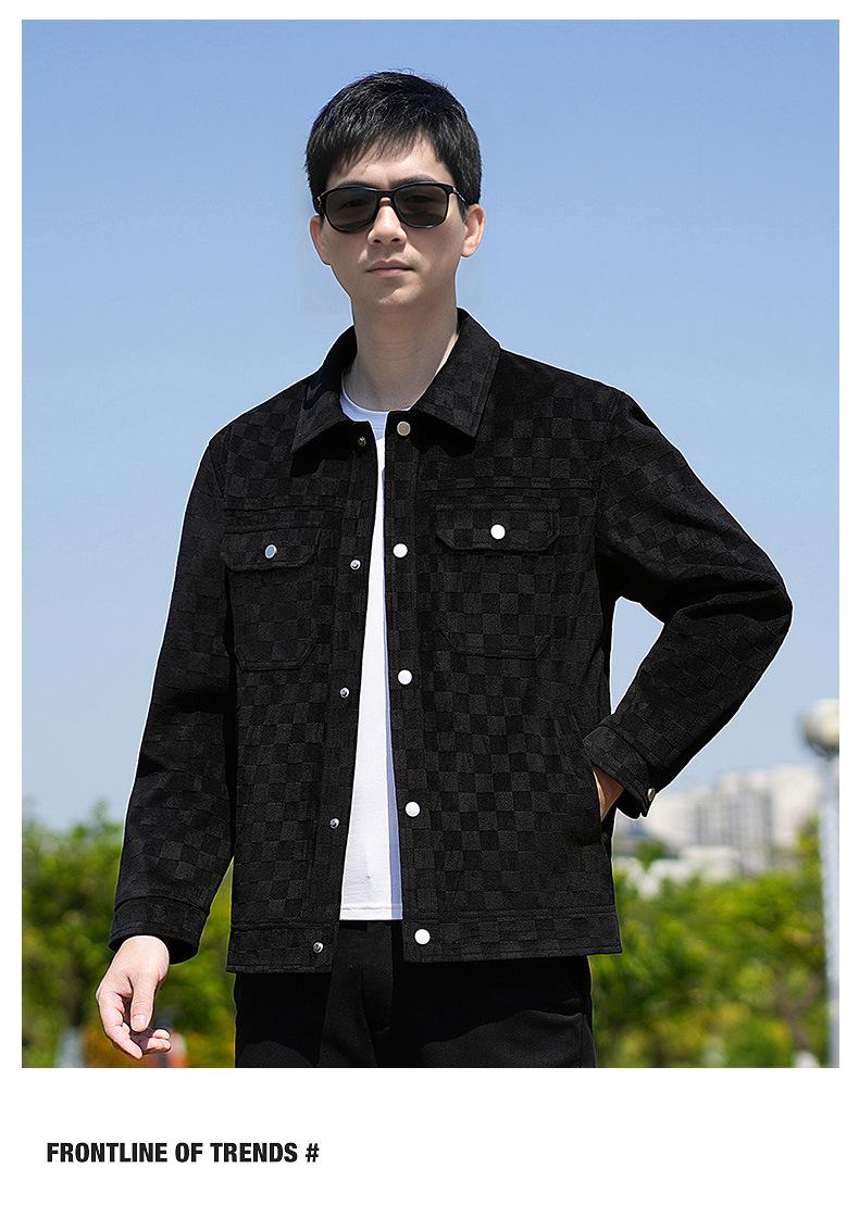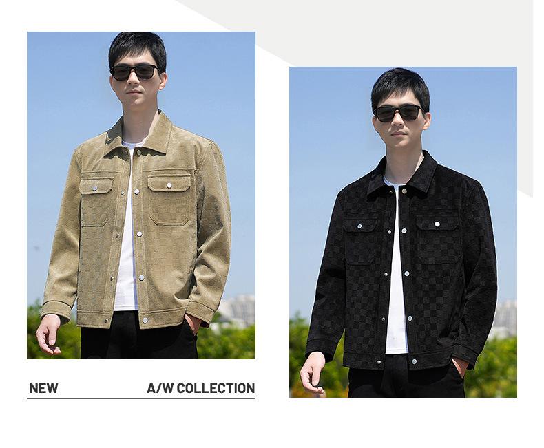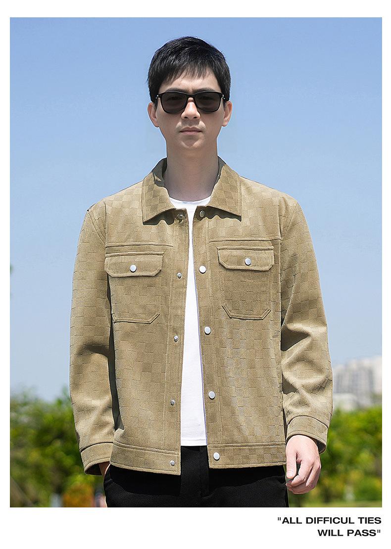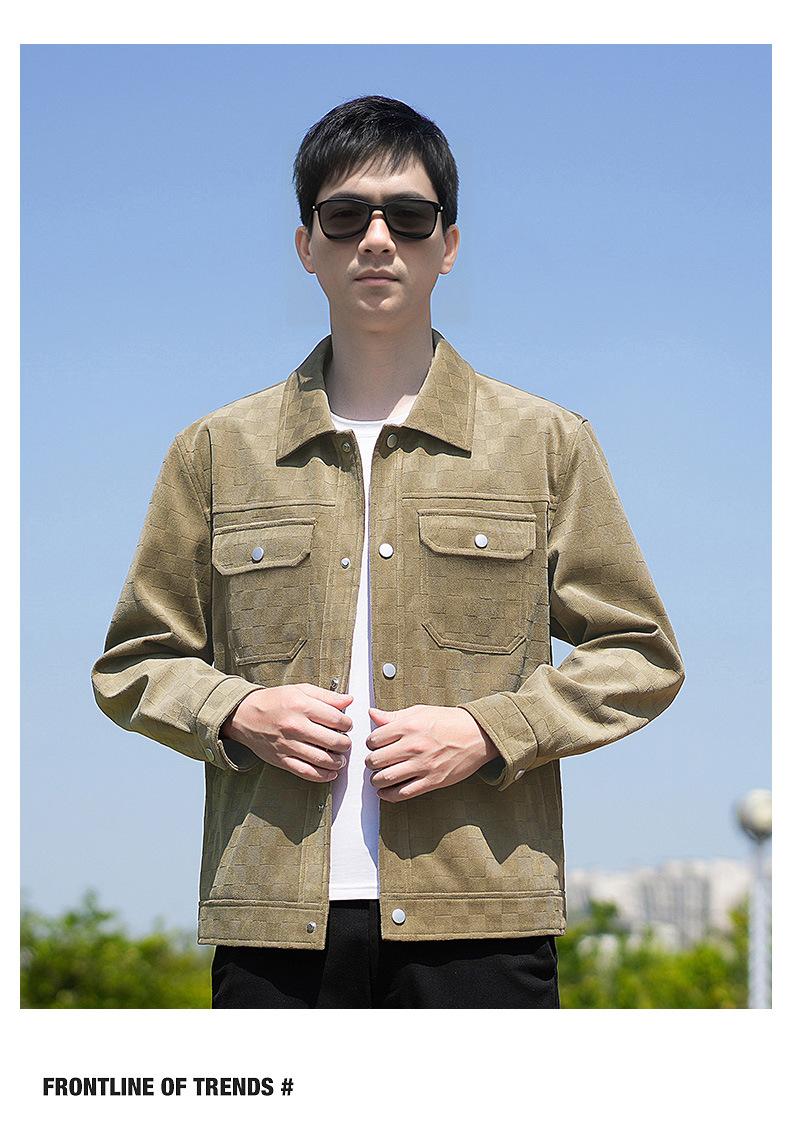 Nueva Chaqueta de Hombre de Primavera y Otoño de alta calidad con Patrón de Cuadros de Ante, Business Casual, Amigable con la Piel, Abrigo de Hombre con Solapa