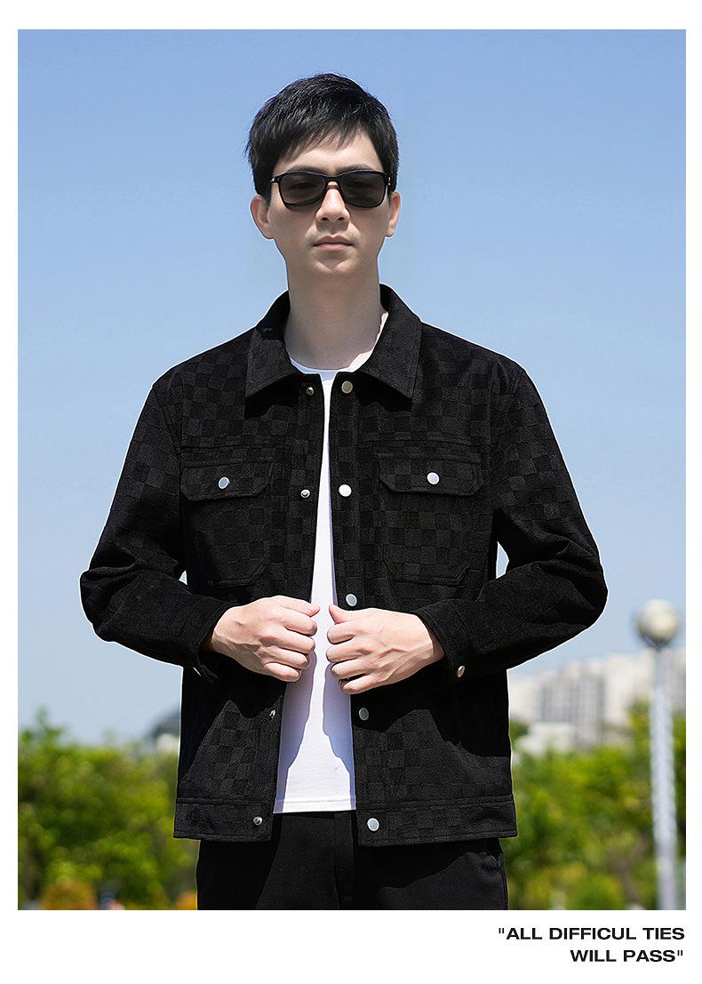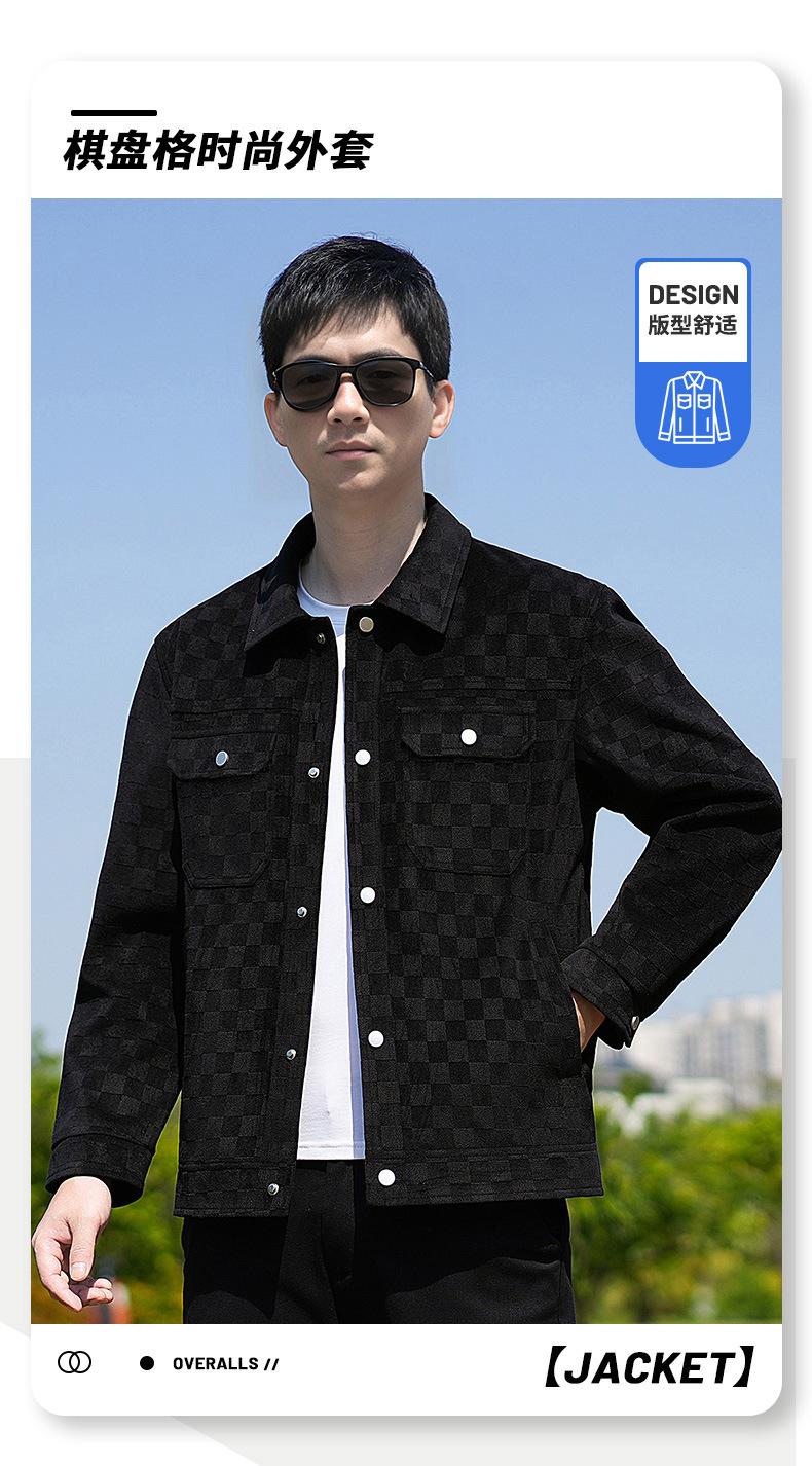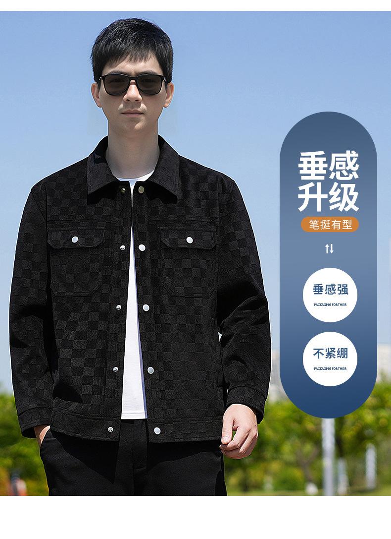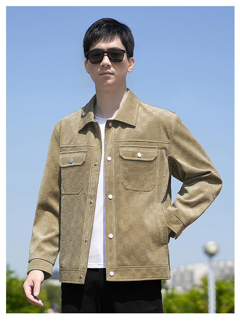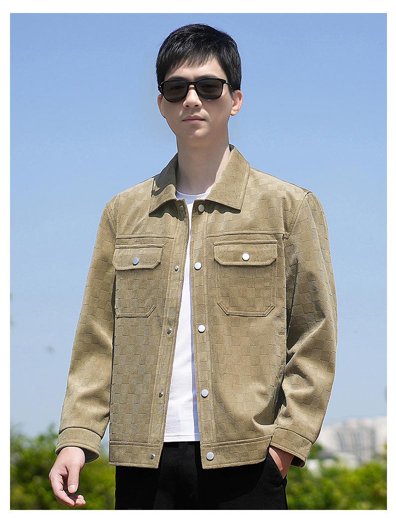 Nueva Chaqueta de Hombre de Primavera y Otoño de alta calidad con Patrón de Cuadros de Ante, Business Casual, Amigable con la Piel, Abrigo de Hombre con Solapa