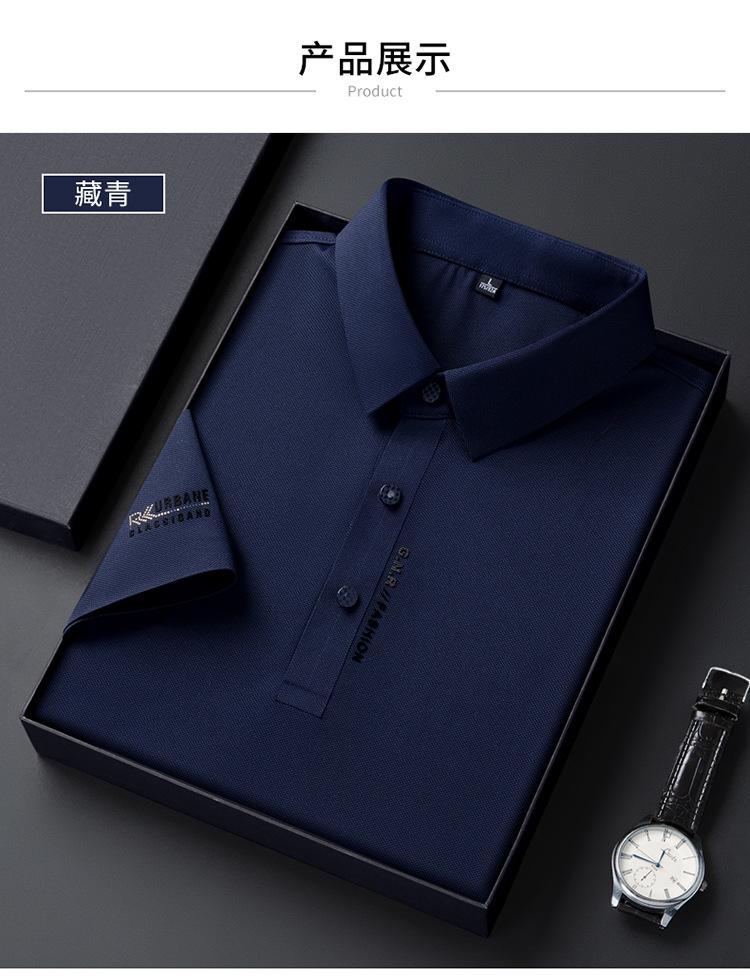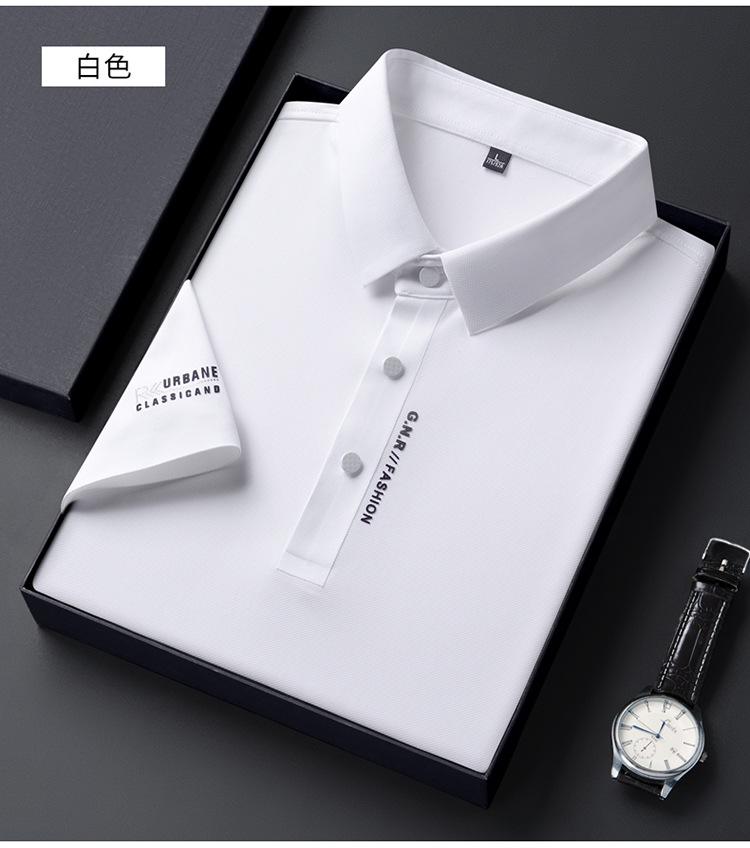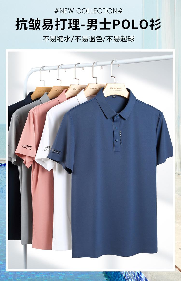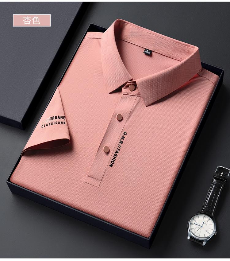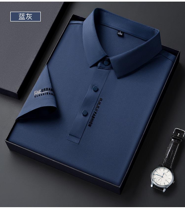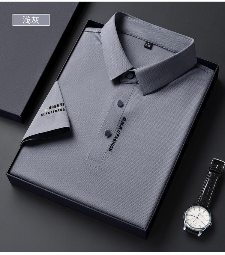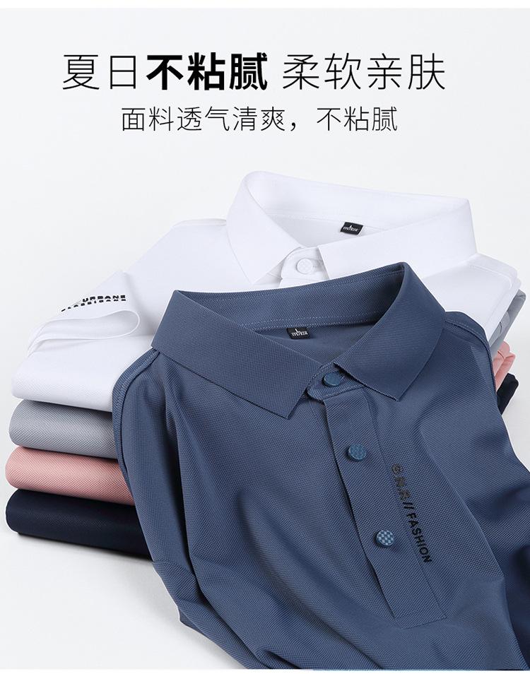 Verano Nuevo Estilo Seda de Hielo Sin Costuras Polo de Manga Corta para Hombre Negocios Casual Elástico Sin Planchado Solapa Camiseta de Secado Rápido