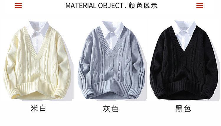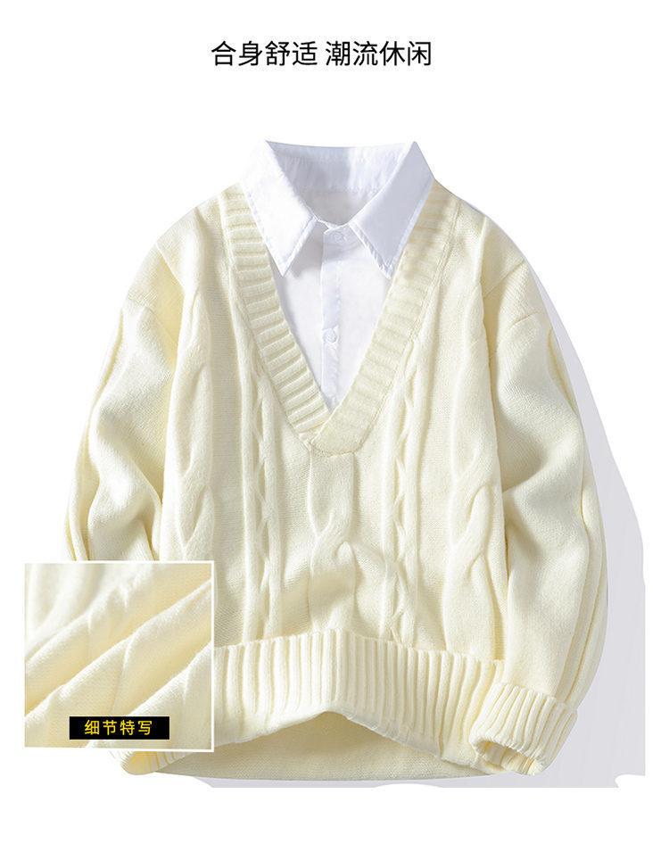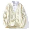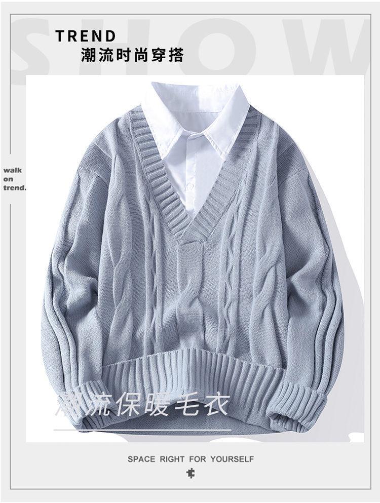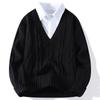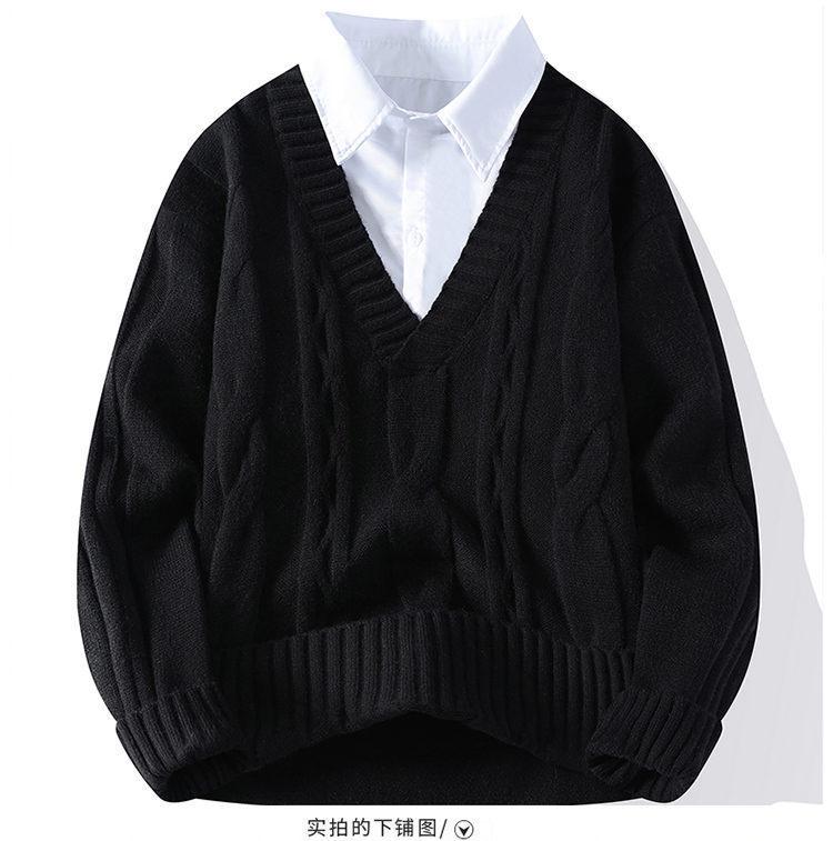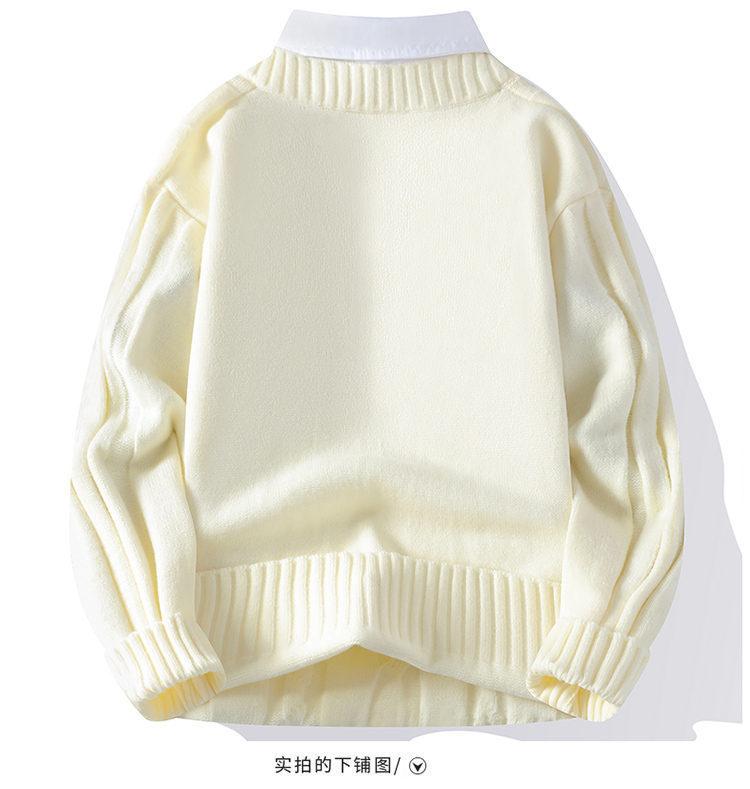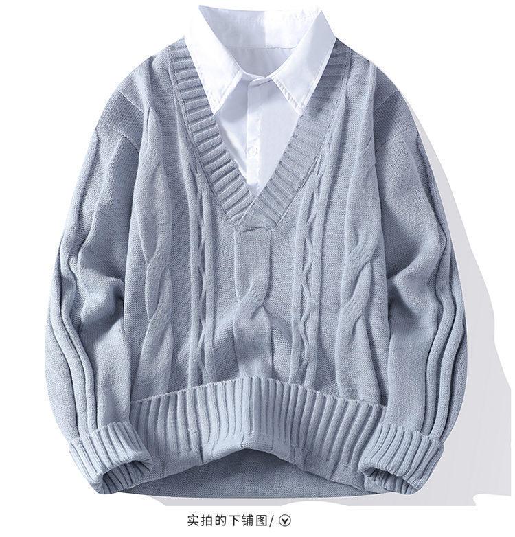 Suéter de punto casual cálido para hombre de otoño e invierno, nuevo estilo, cuello de camisa, manga larga, falso de 2 piezas, suéter pulóver moderno para hombre