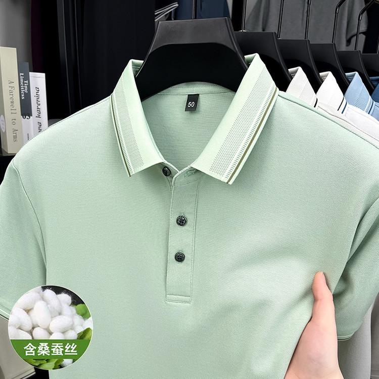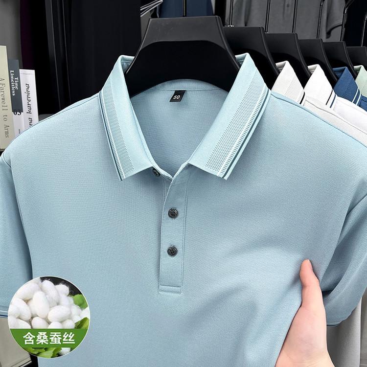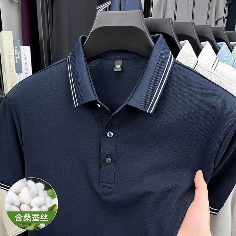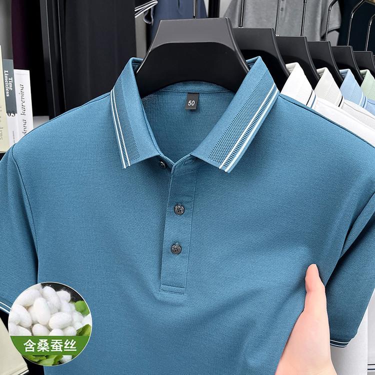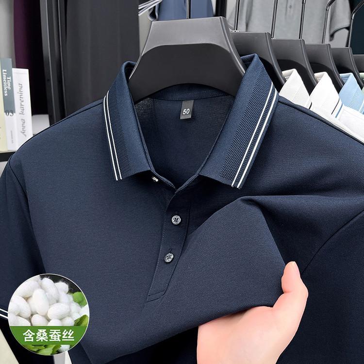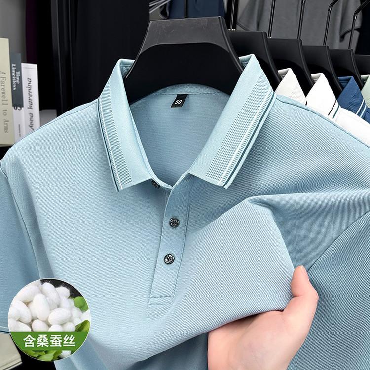 Compra Camiseta de Verano de Seda de Morera de Manga Corta para Hombre, Polo de Solapa Casual de Negocios, Top Holgado de Media Manga para Papá al por mayor en Joom.pro