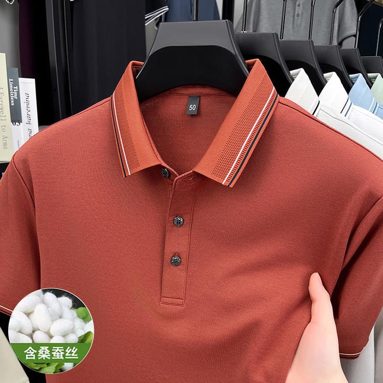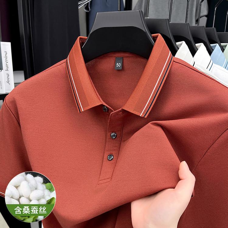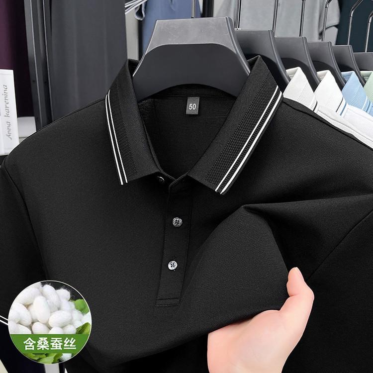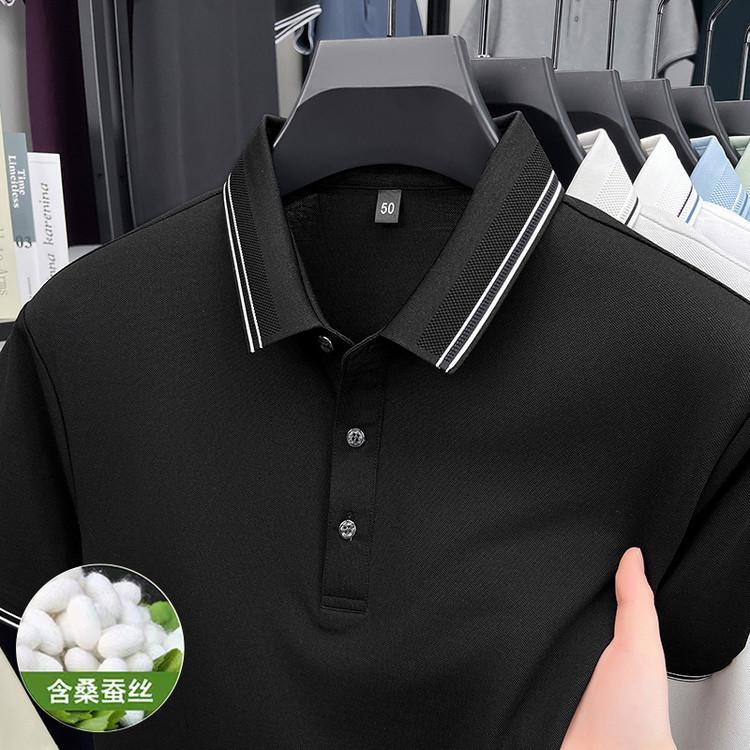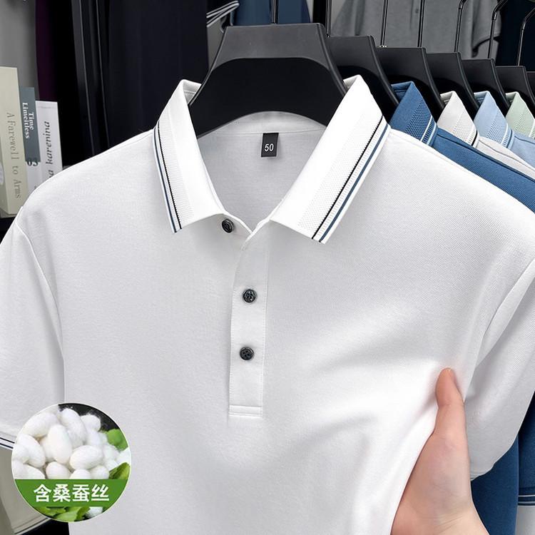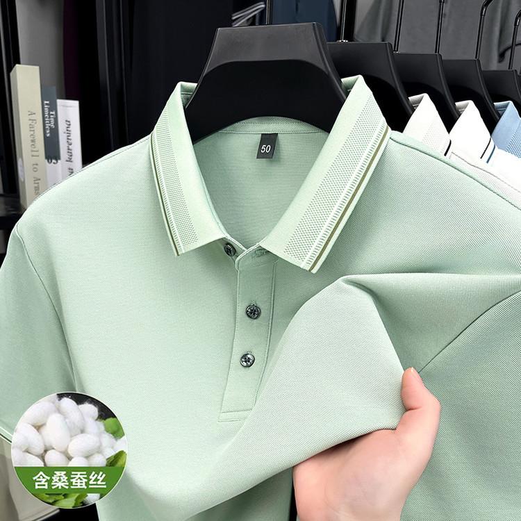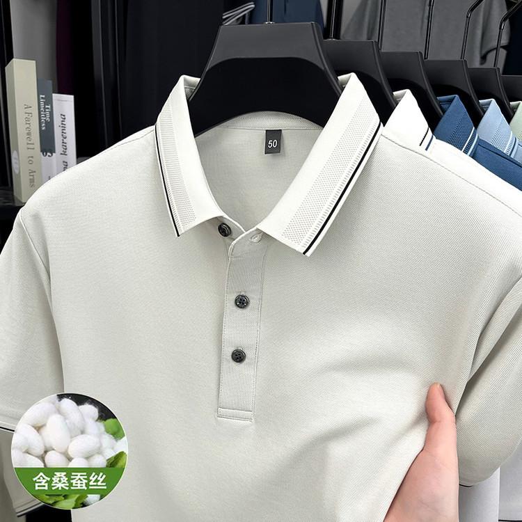 Compra Camiseta de Verano de Seda de Morera de Manga Corta para Hombre, Polo de Solapa Casual de Negocios, Top Holgado de Media Manga para Papá al por mayor en Joom.pro