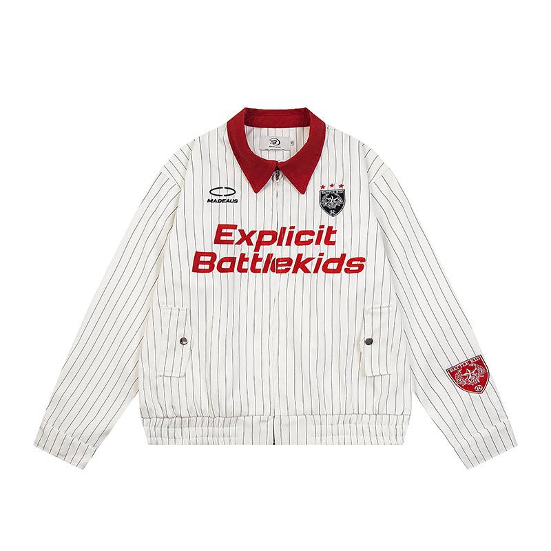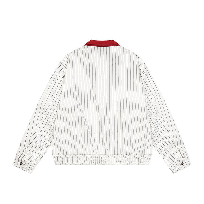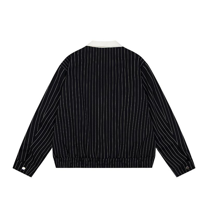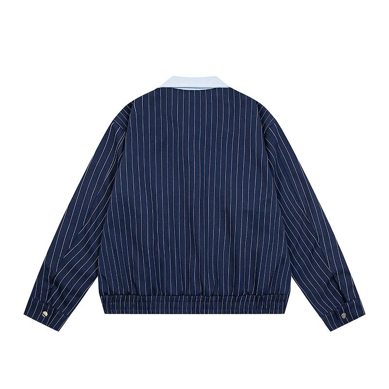 Chaqueta Hip-Hop Callejero Retro Americana para Hombre y Mujer Primavera y Otoño Suelta Casual Rayada Traje de Béisbol Chaqueta de Solapa para Pareja