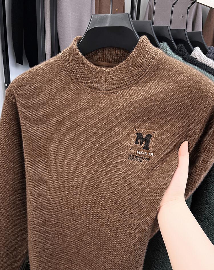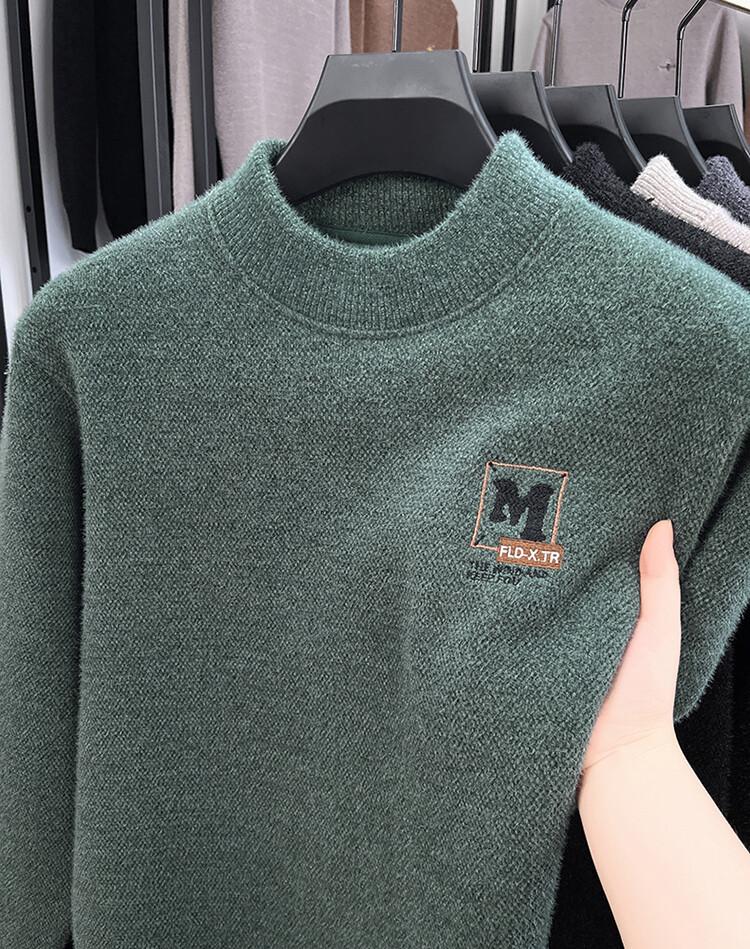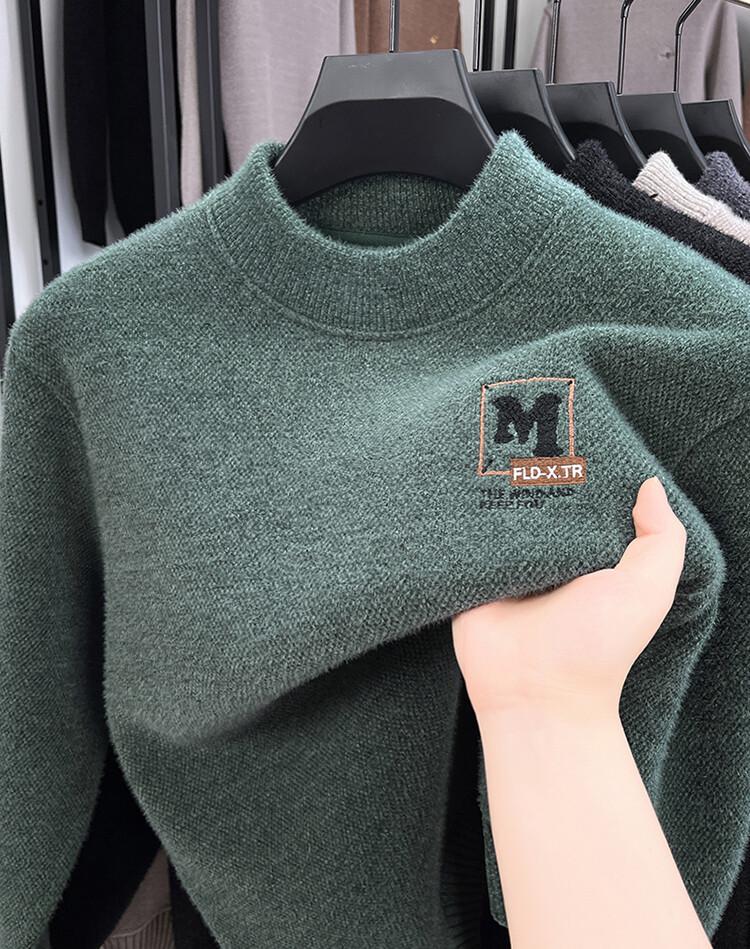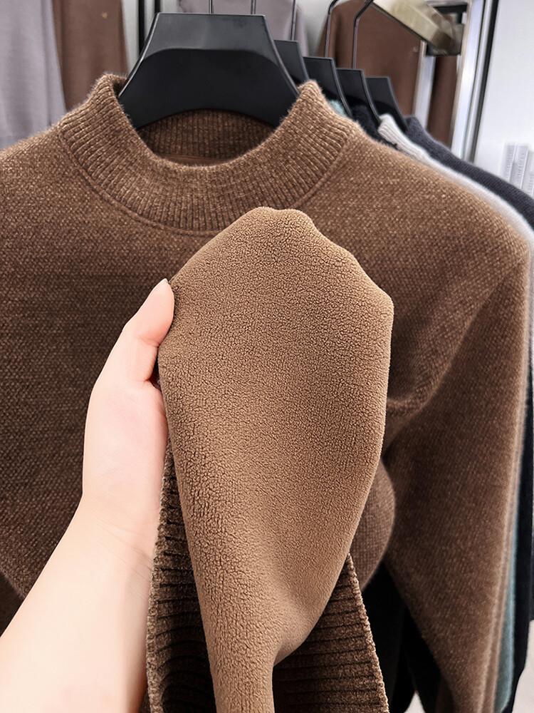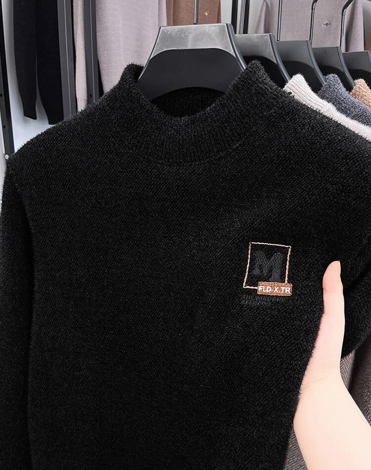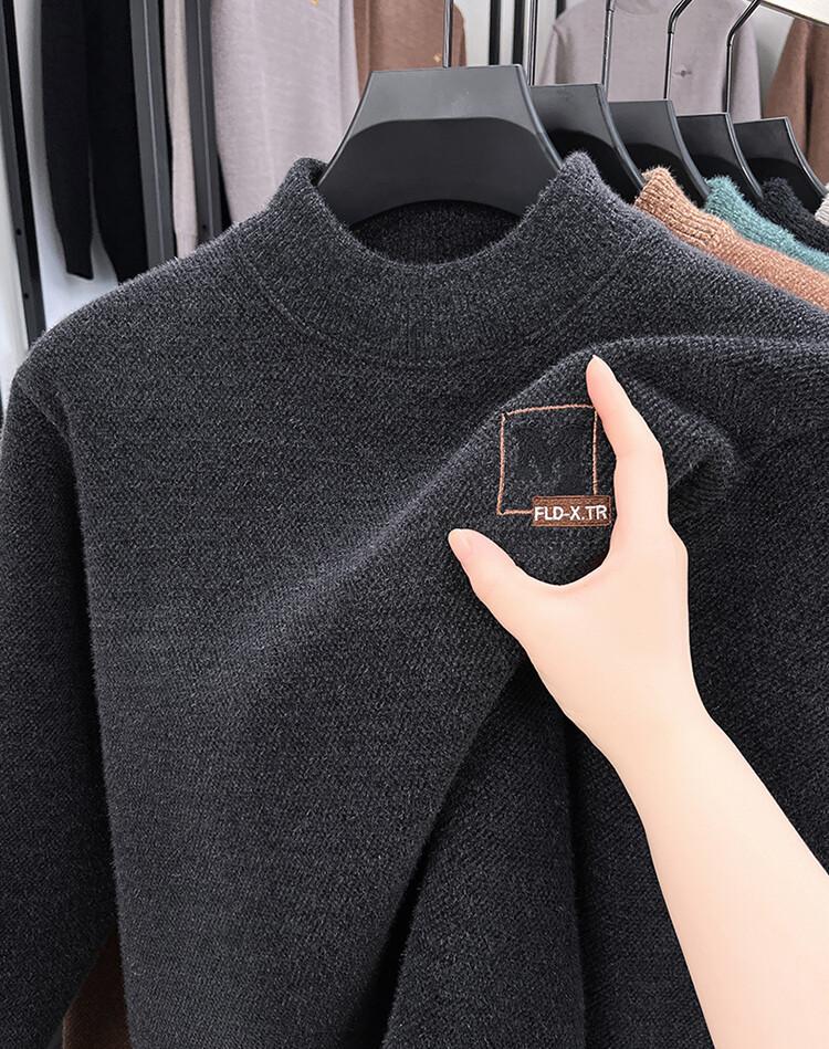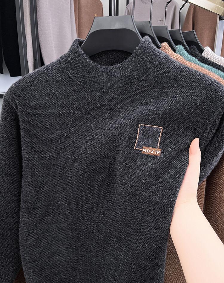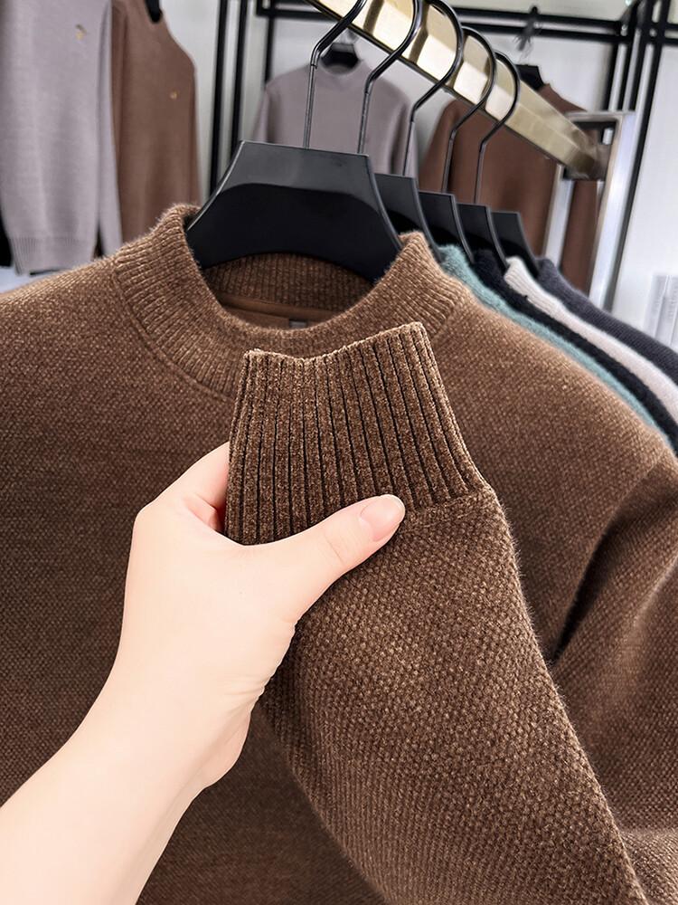 Suéter de hombre de otoño e invierno de cuello semi alto más terciopelo engrosado nuevo cálido de una pieza de terciopelo chenilla de punto camisa base
