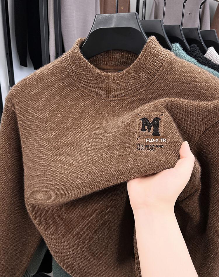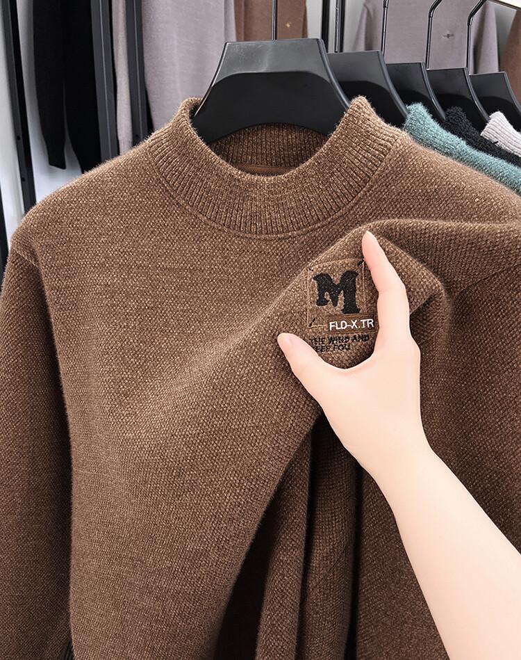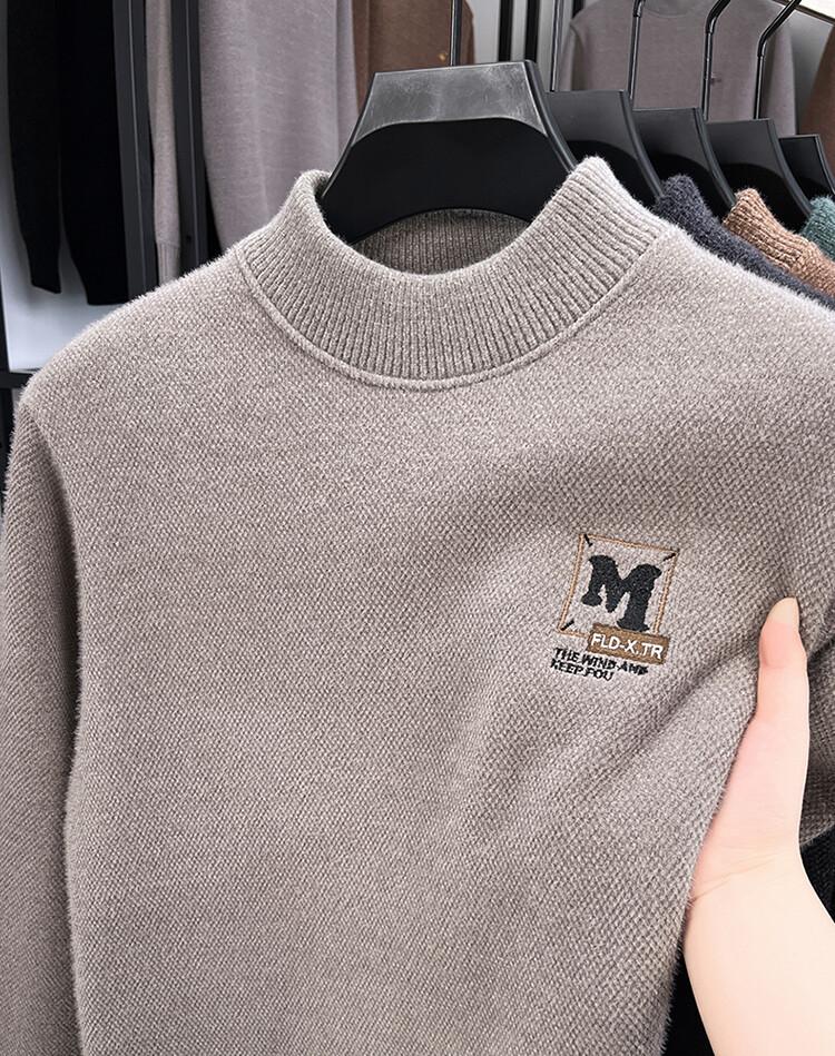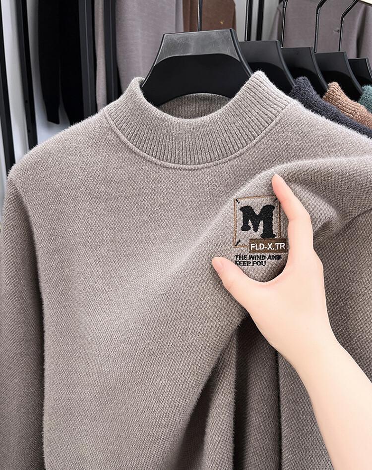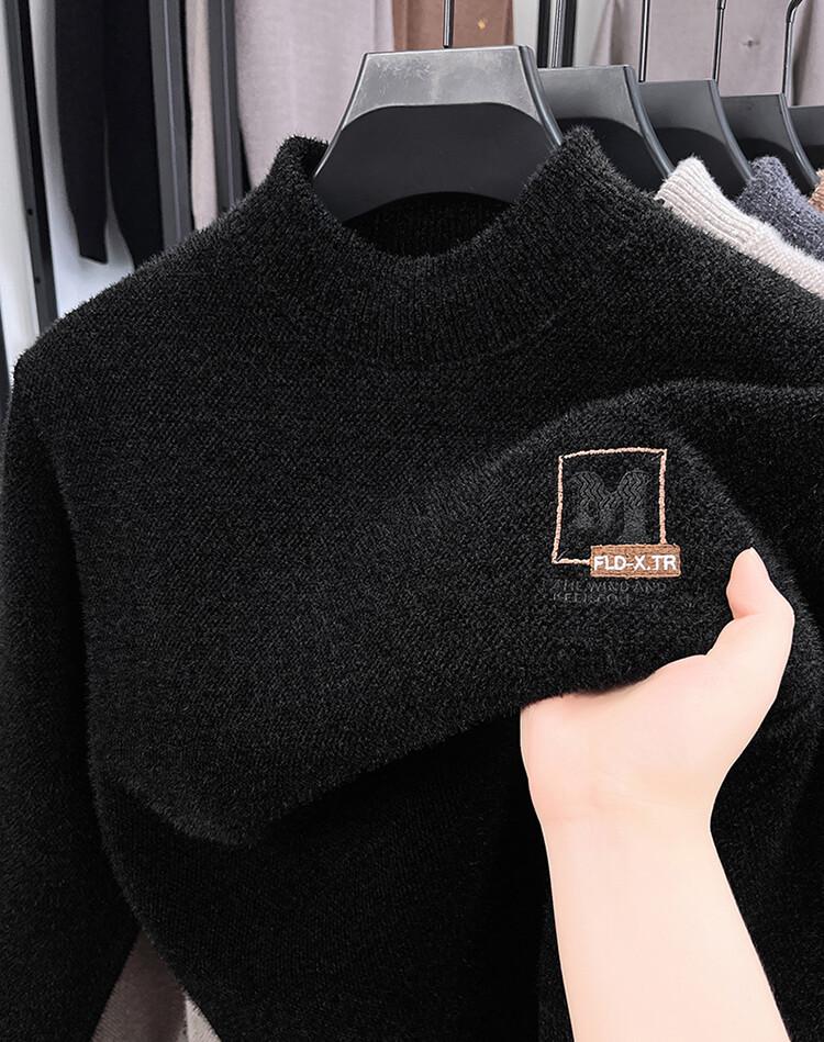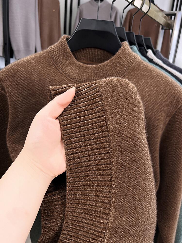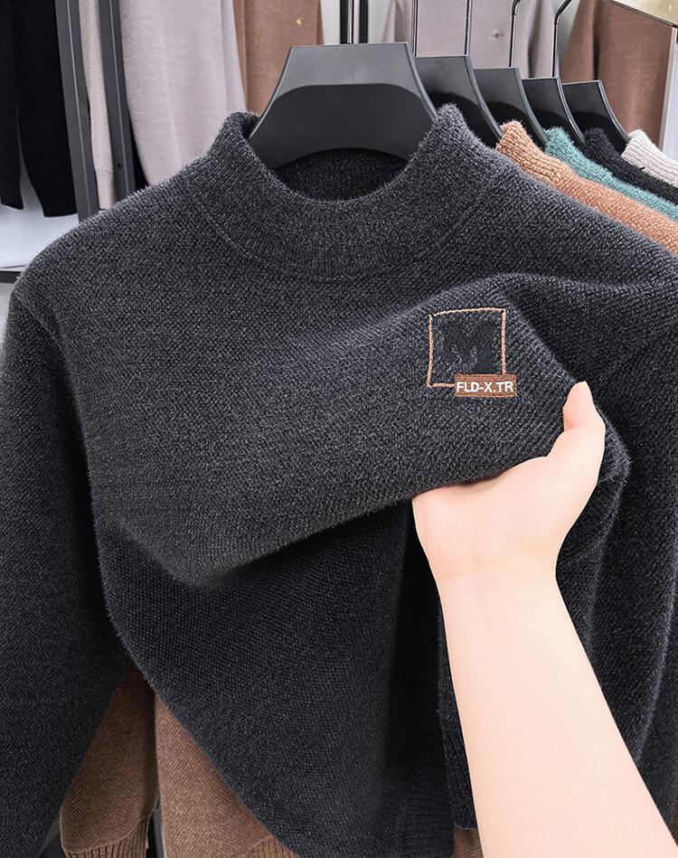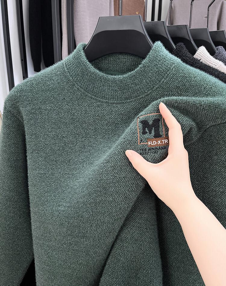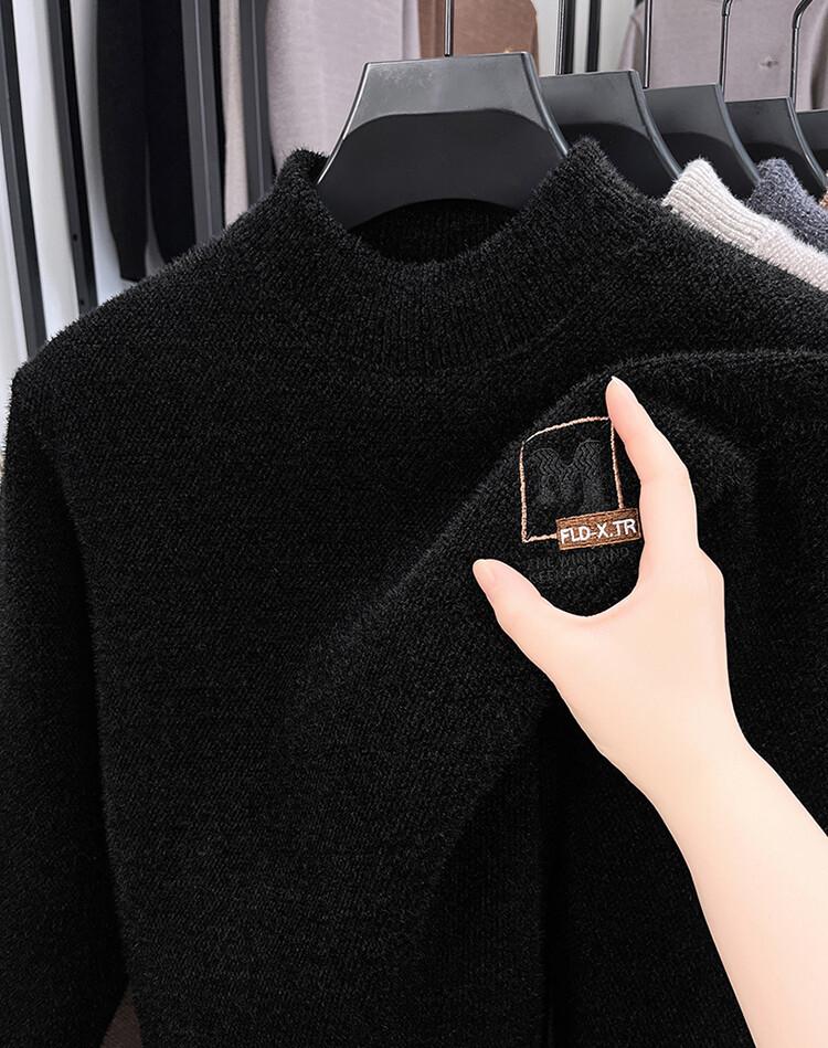 Suéter de hombre de otoño e invierno de cuello semi alto más terciopelo engrosado nuevo cálido de una pieza de terciopelo chenilla de punto camisa base