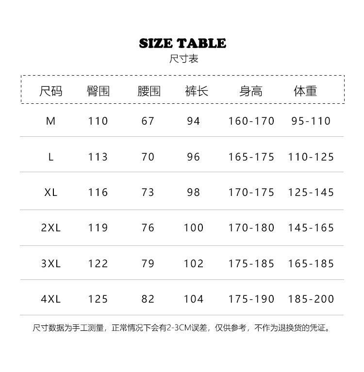 M (95-110) pounds, L (110-125) pounds, Xl (125-145) pounds, 2xl (145-165) pounds, 3xl (165-185) pounds, 4xl (185-200) pounds