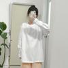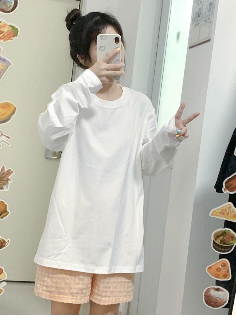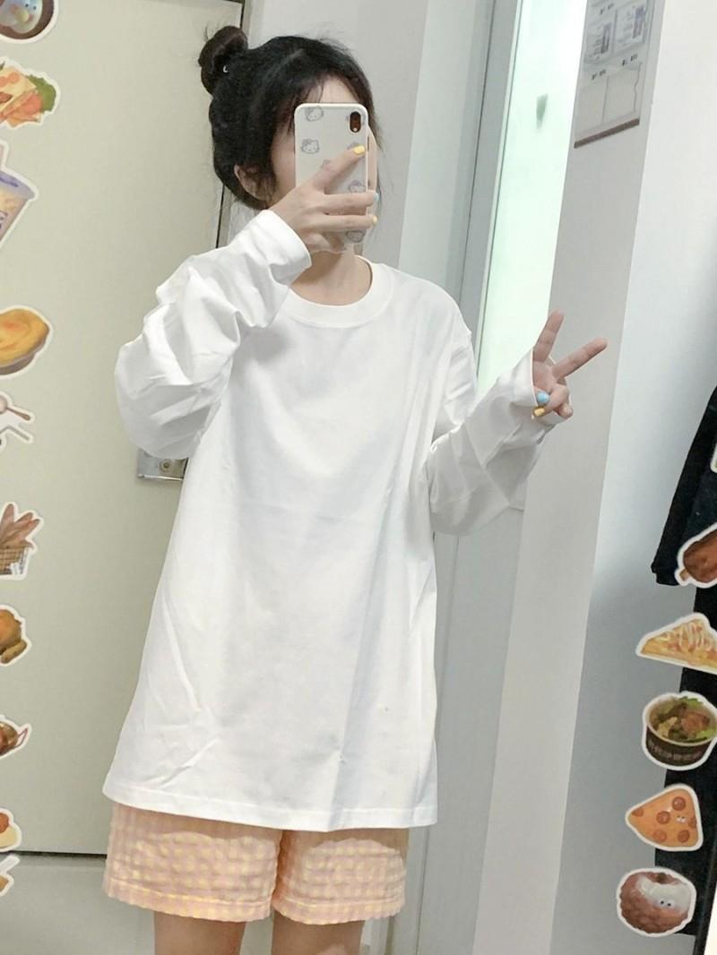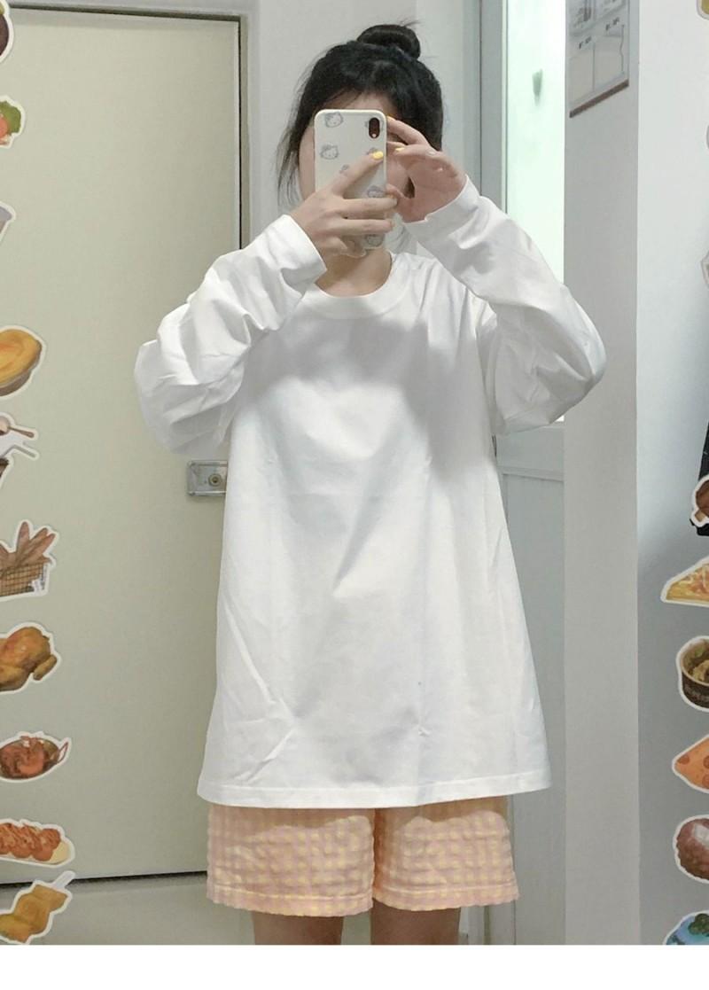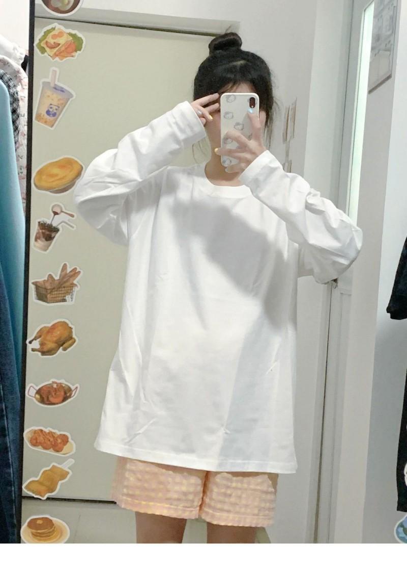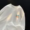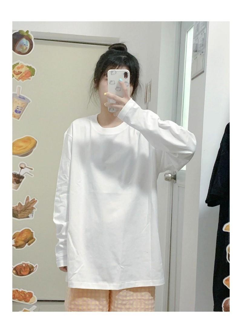 Camiseta de Manga Larga Holgada de Algodón Puro Pesado para Hombre Otoño/Invierno Ins Cuello Redondo Americano Capa Interior Casual Versátil Camiseta Básica