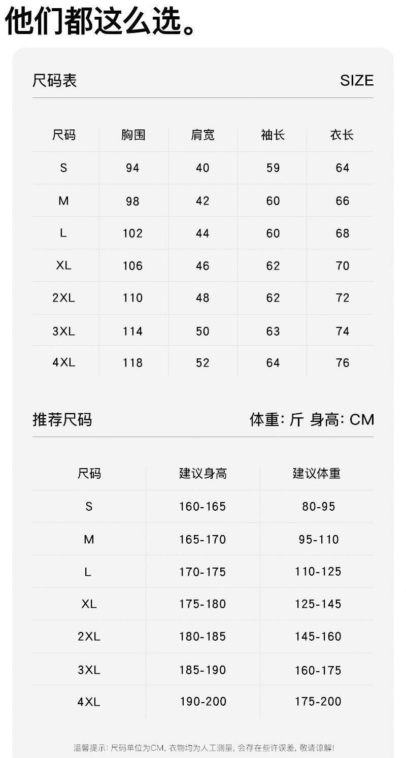 S [recommended 80-95 catties], M [Recommended 95-110 catties], L [recommended 110-125 catties], XL [recommende...