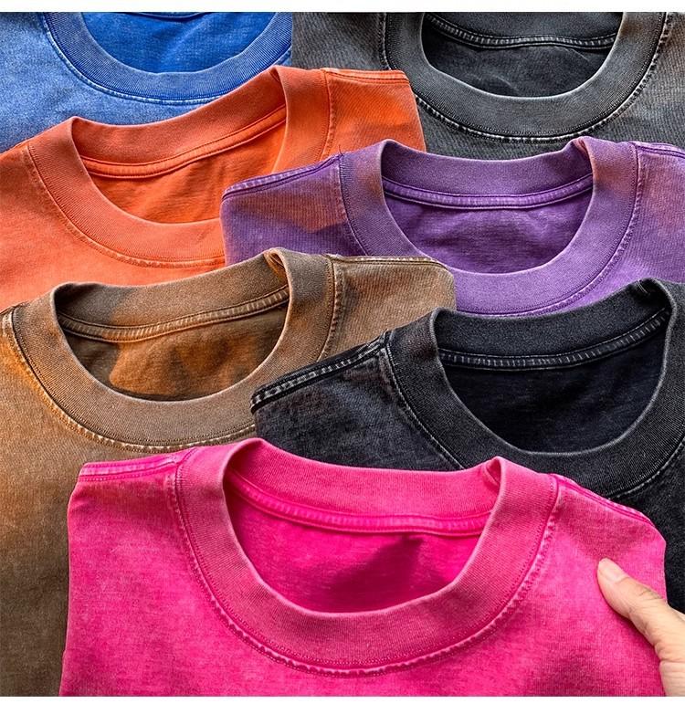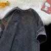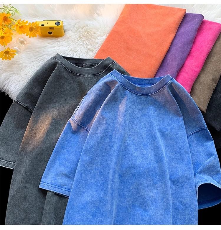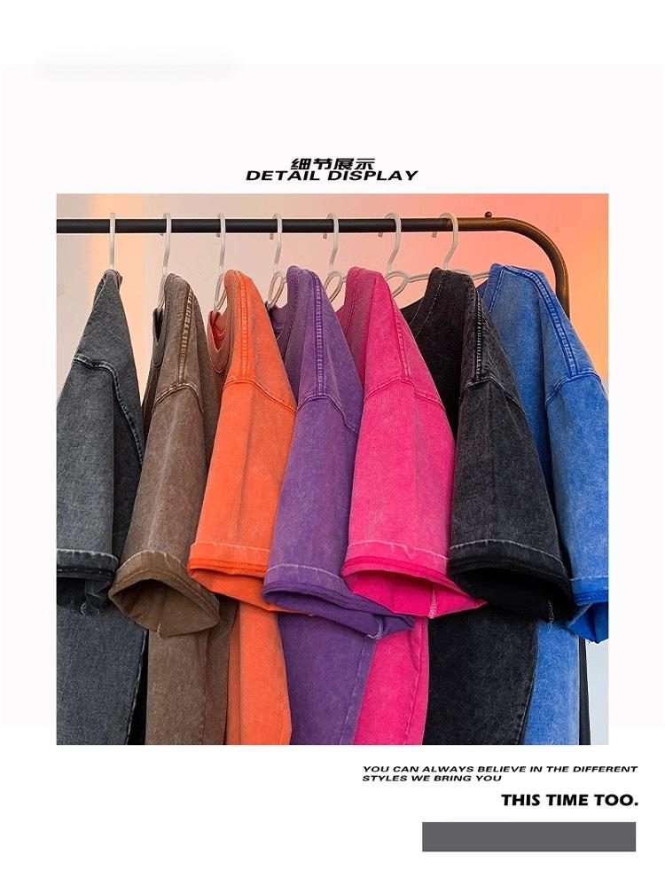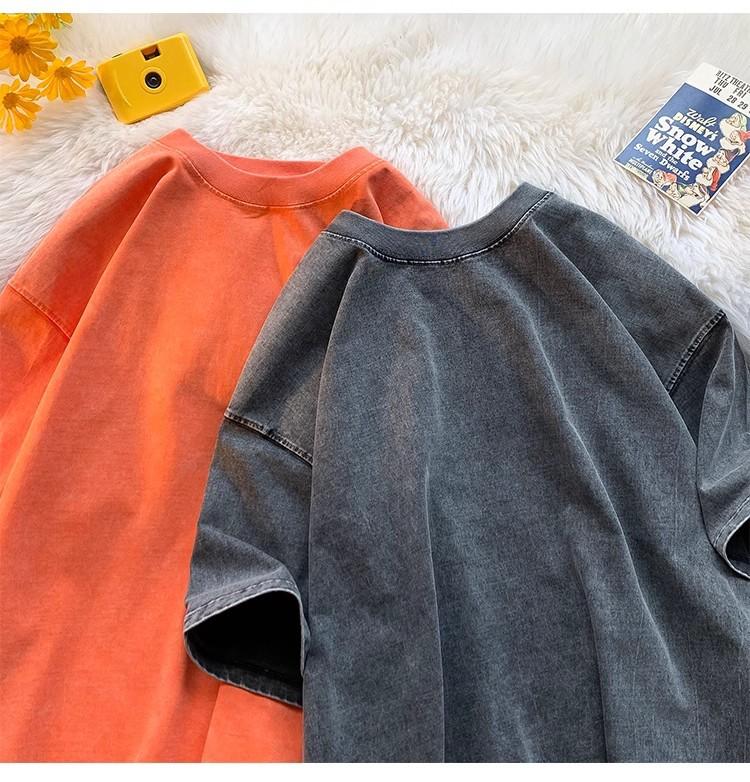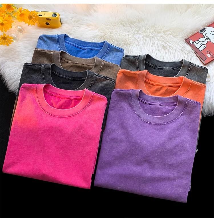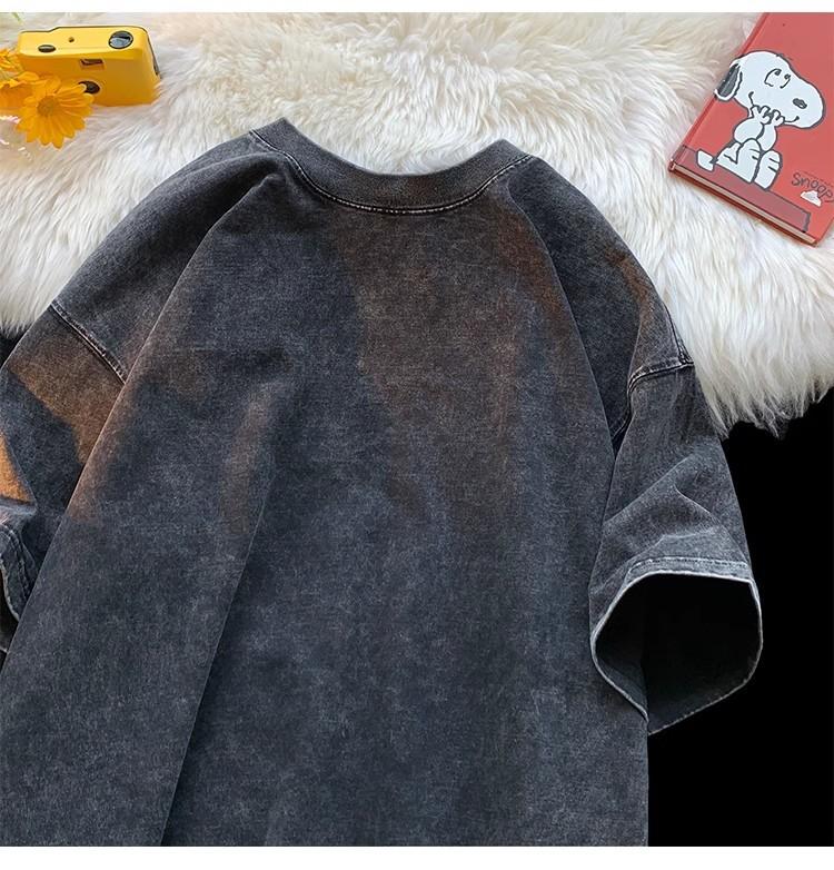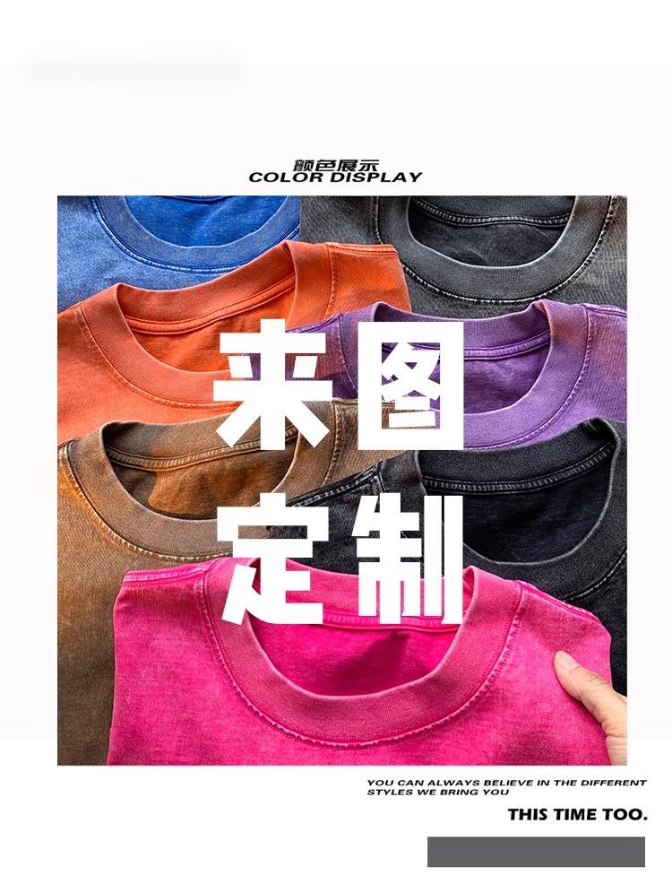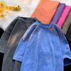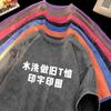 Playera Lavada Algodón Puro Manga Corta DIY Estampada Imagen Logotipo Ropa de Trabajo Desgastada Americana Desgastada