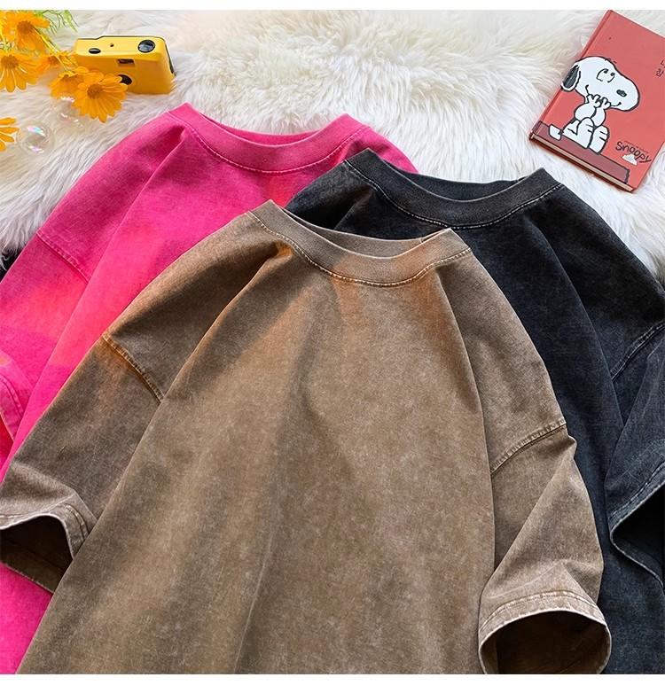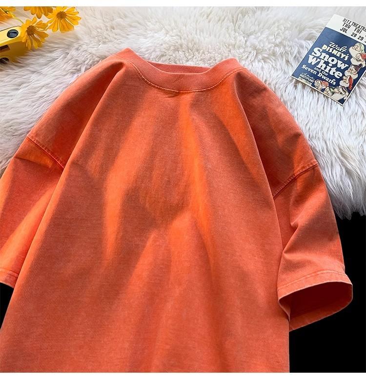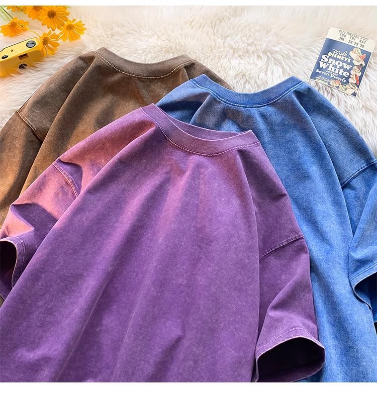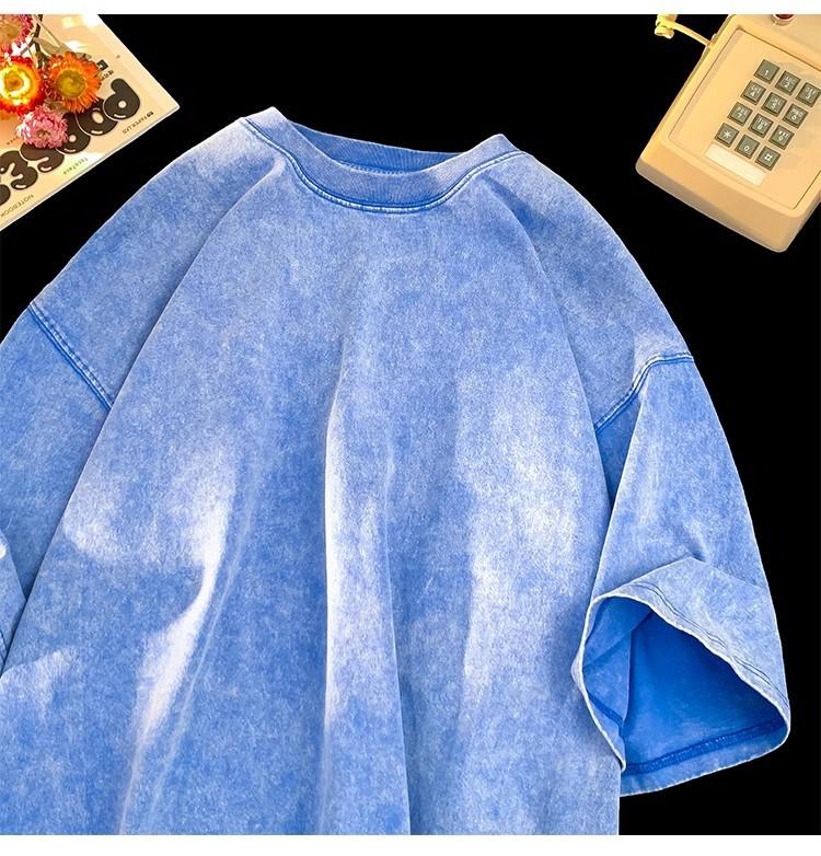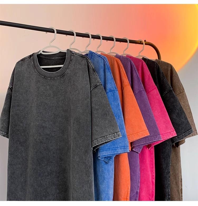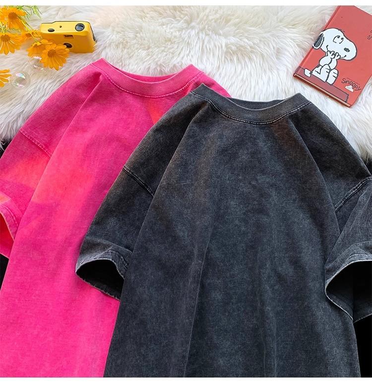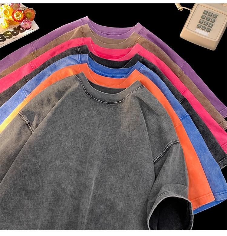 Playera Lavada Algodón Puro Manga Corta DIY Estampada Imagen Logotipo Ropa de Trabajo Desgastada Americana Desgastada