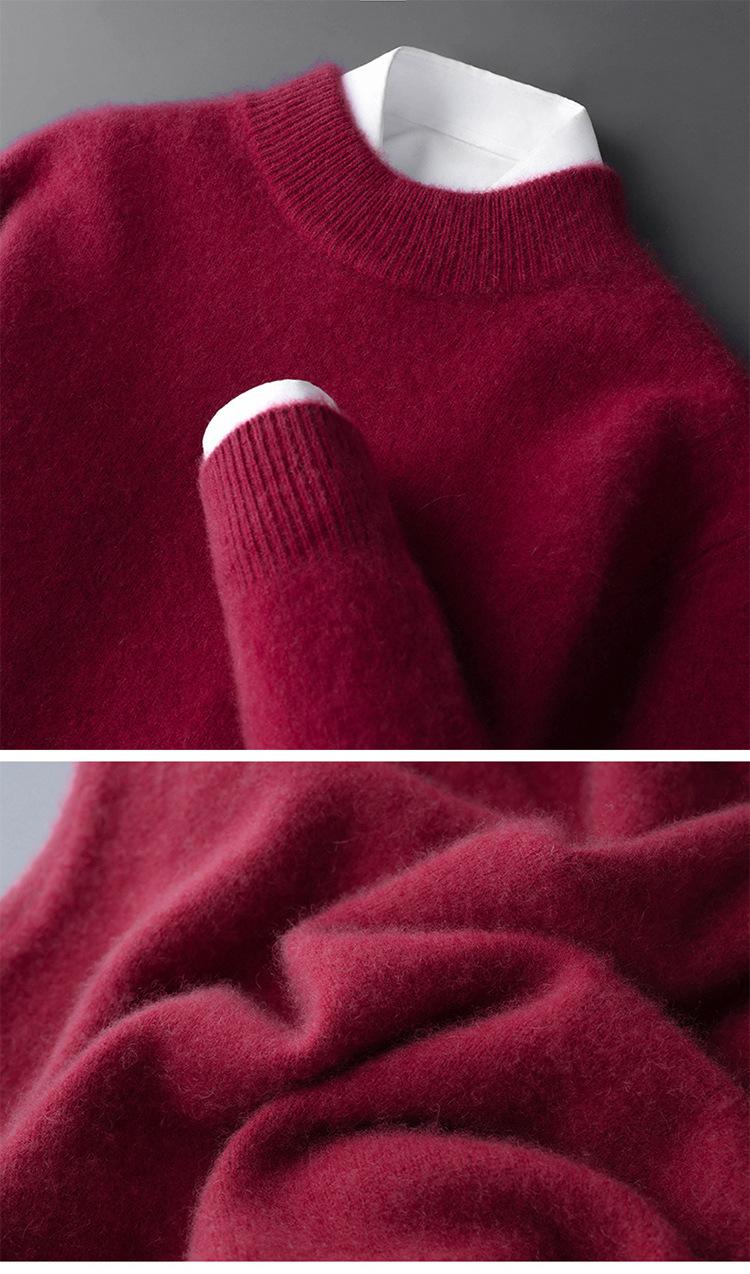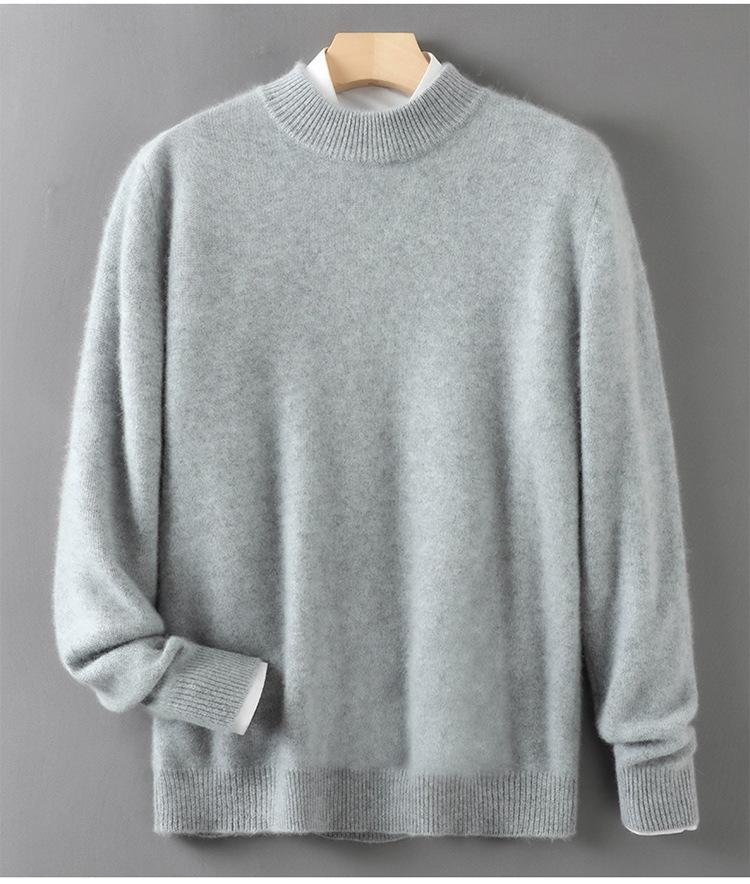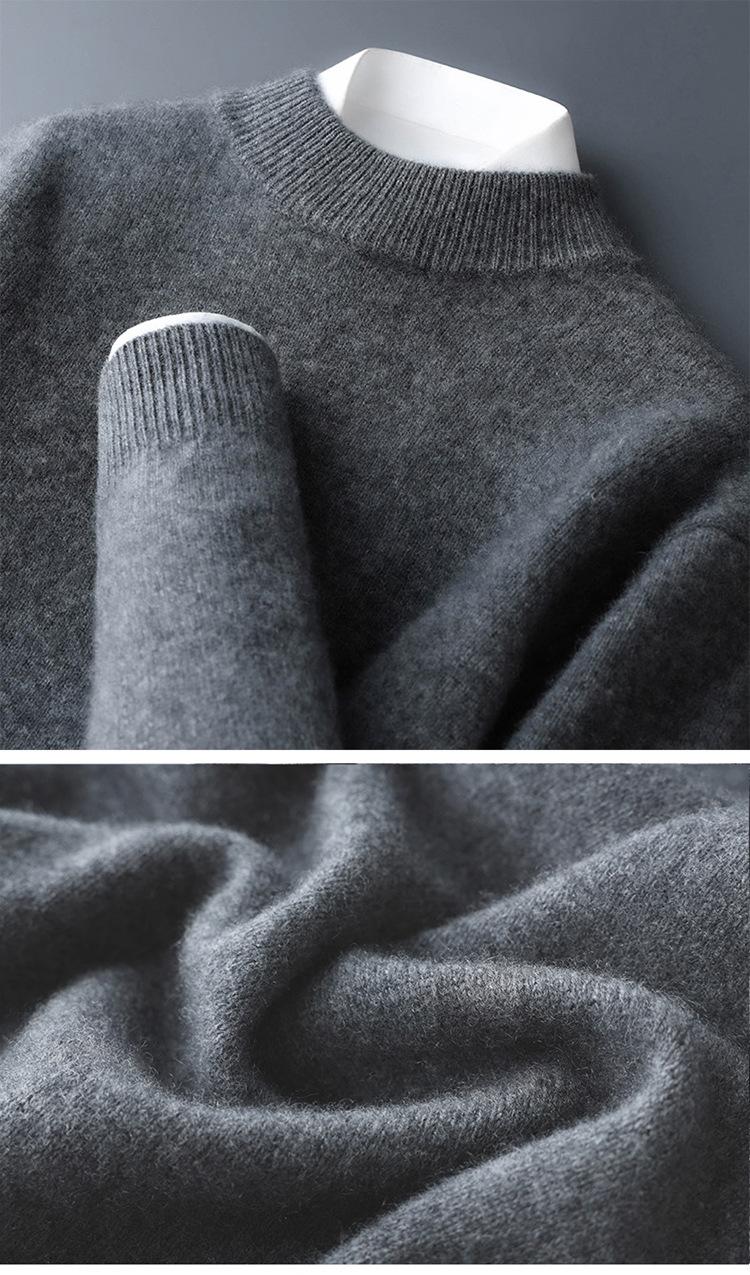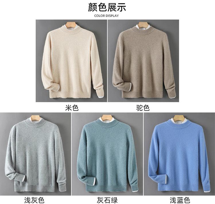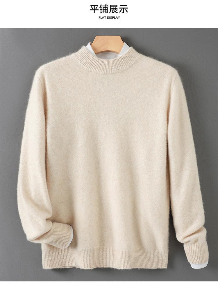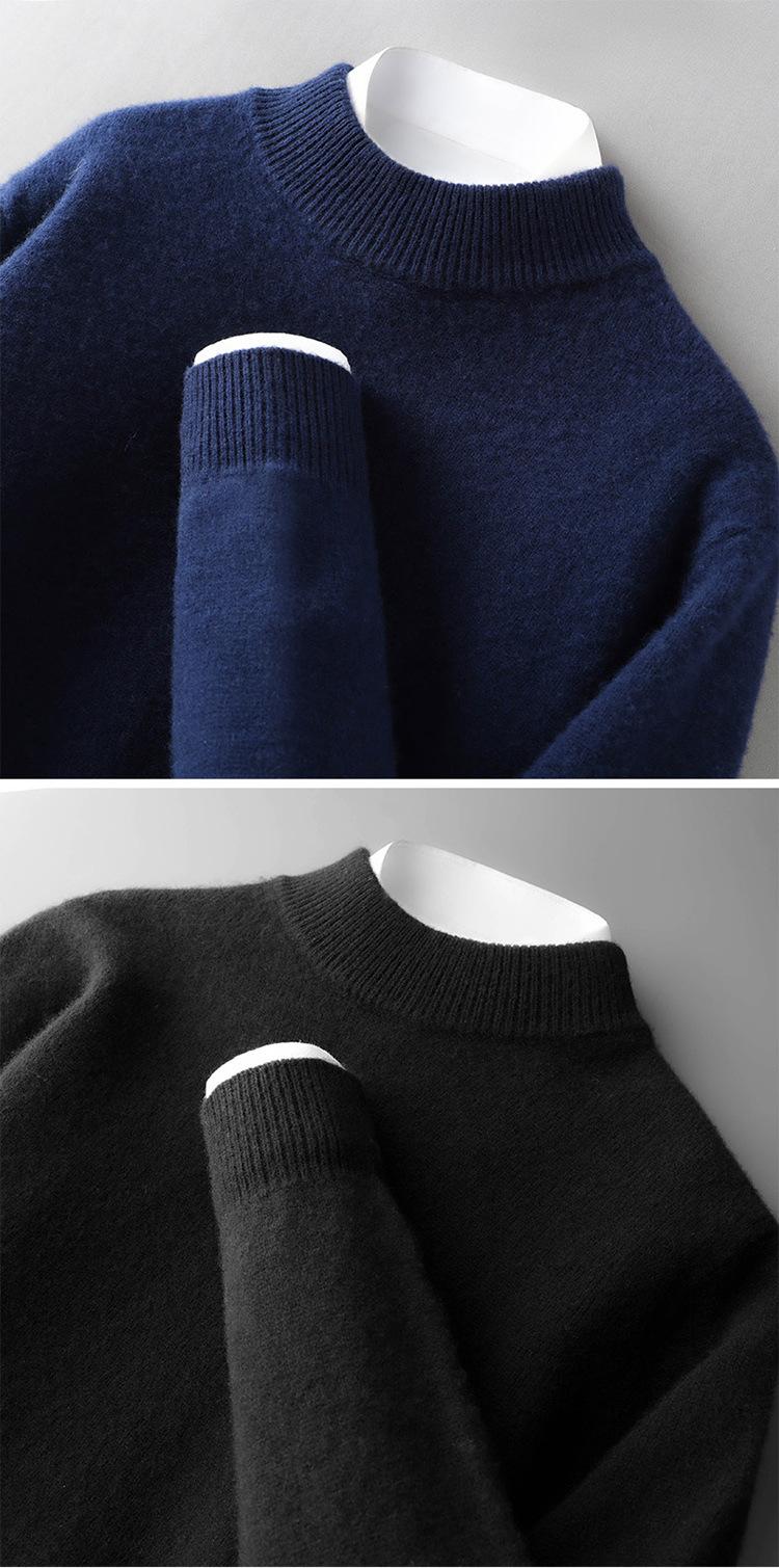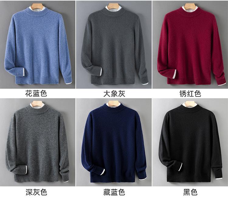 Suéter de Lana 100% Pura para Hombre Cuello Medio Alto Color Sólido Suéter Grueso Business Casual Capa Interior Camiseta Base Tejida Top