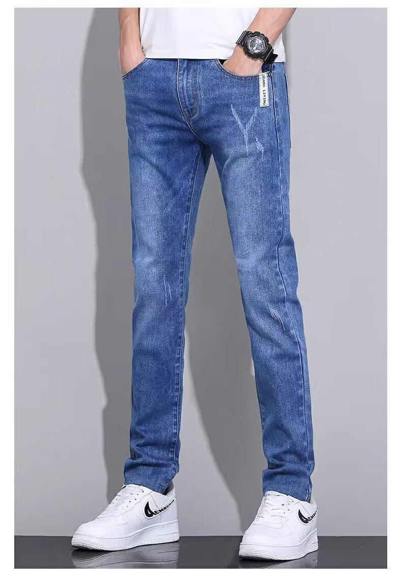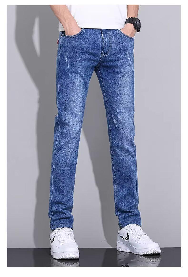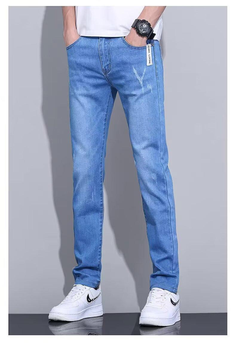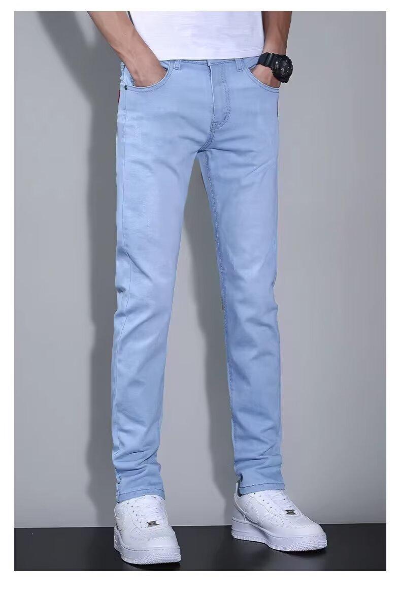 Primavera/Verano Nuevo Jeans Elásticos Hombre Estilo Coreano Tendencia Delgados Rectos Ajustados Versátiles Casuales de Gama Alta Pantalones Largos