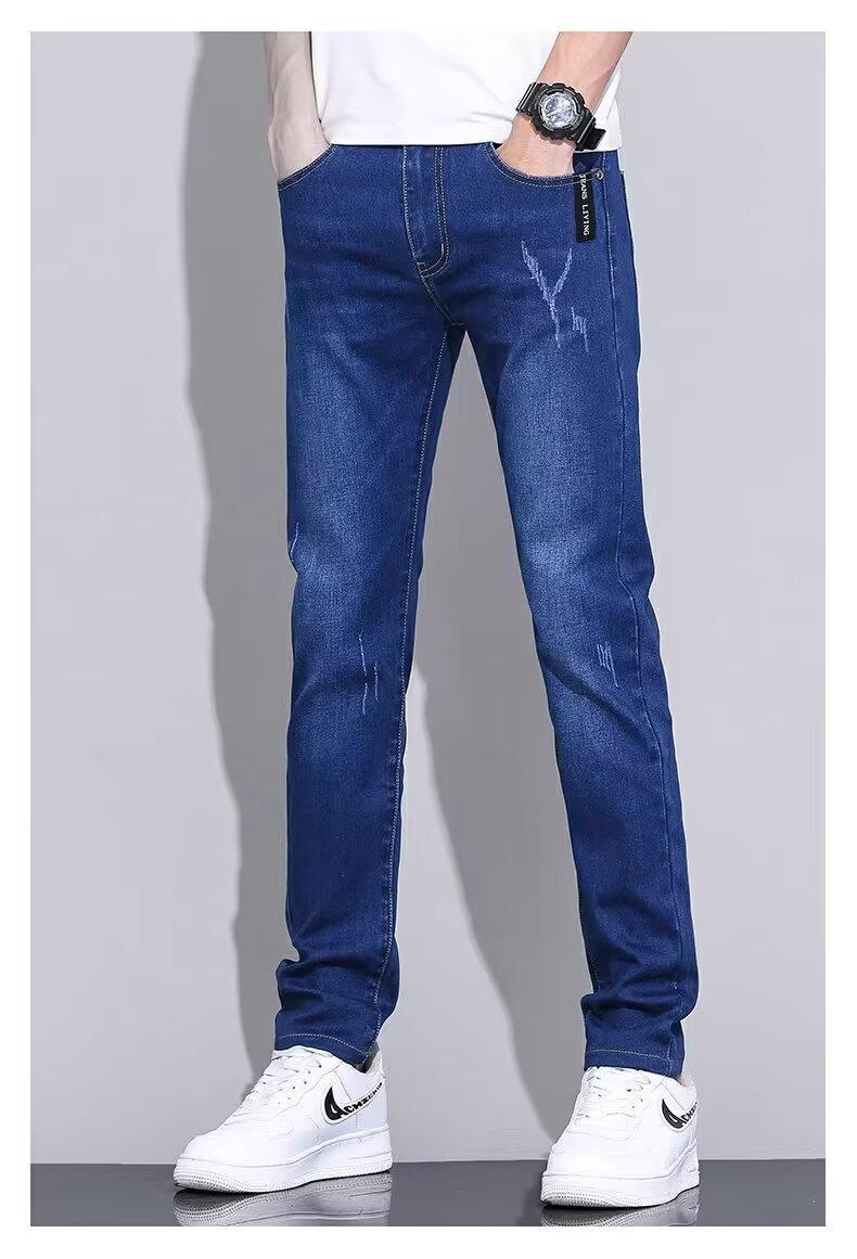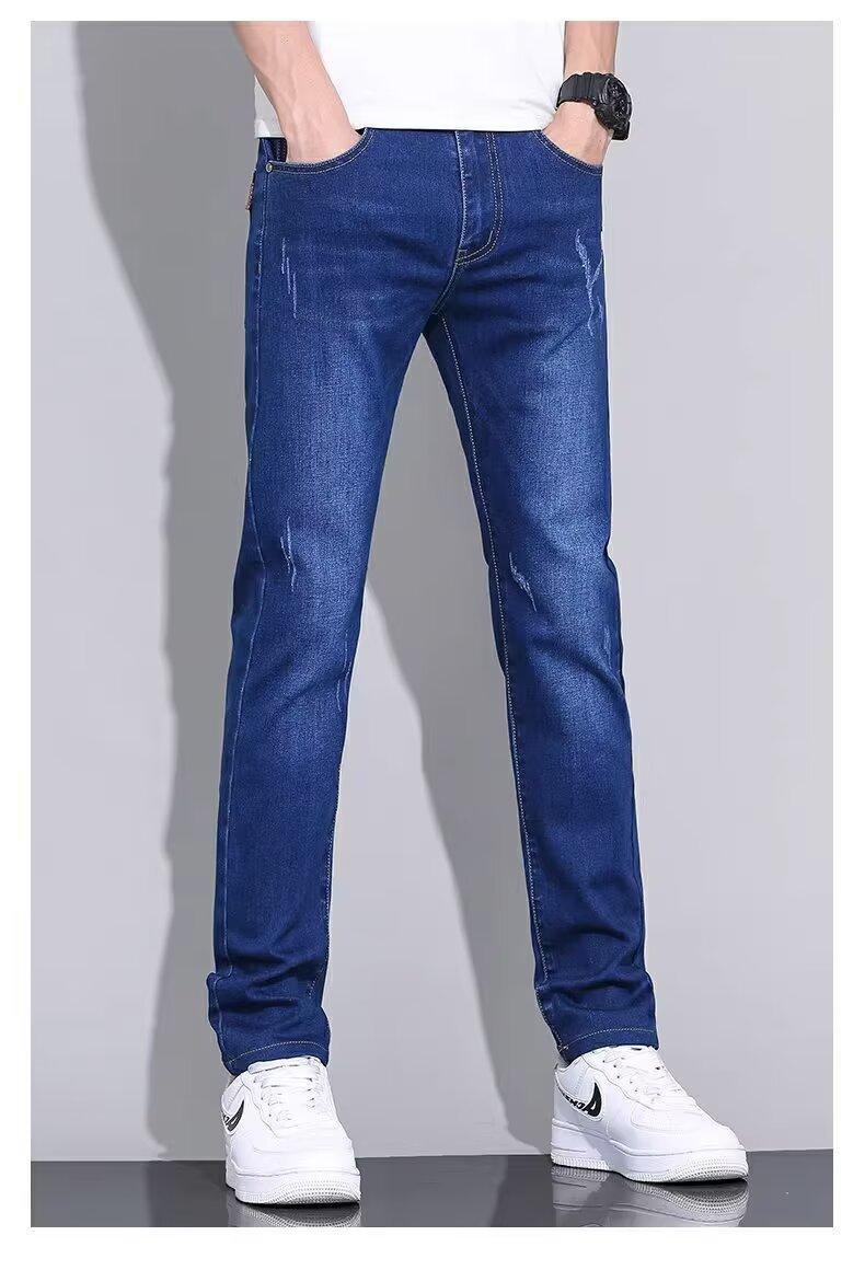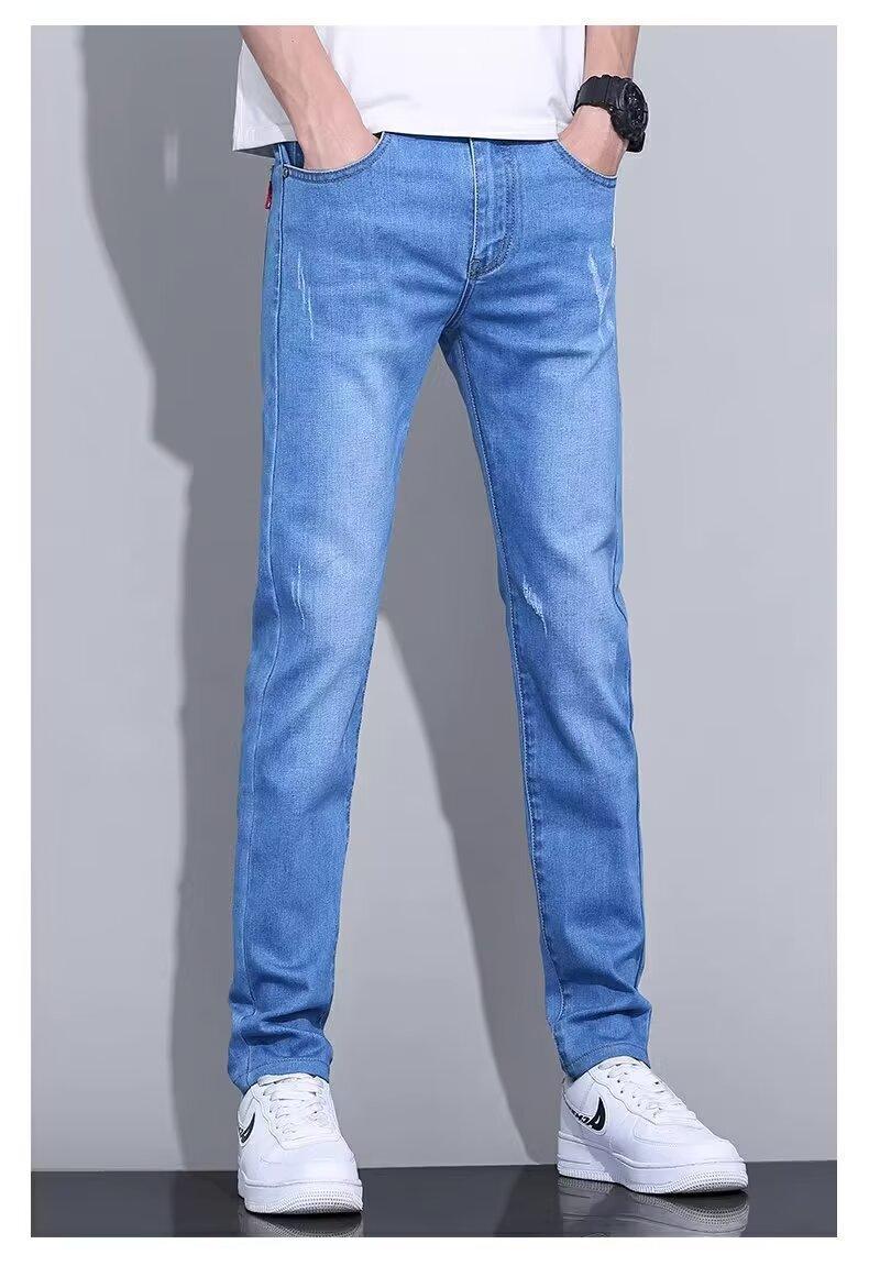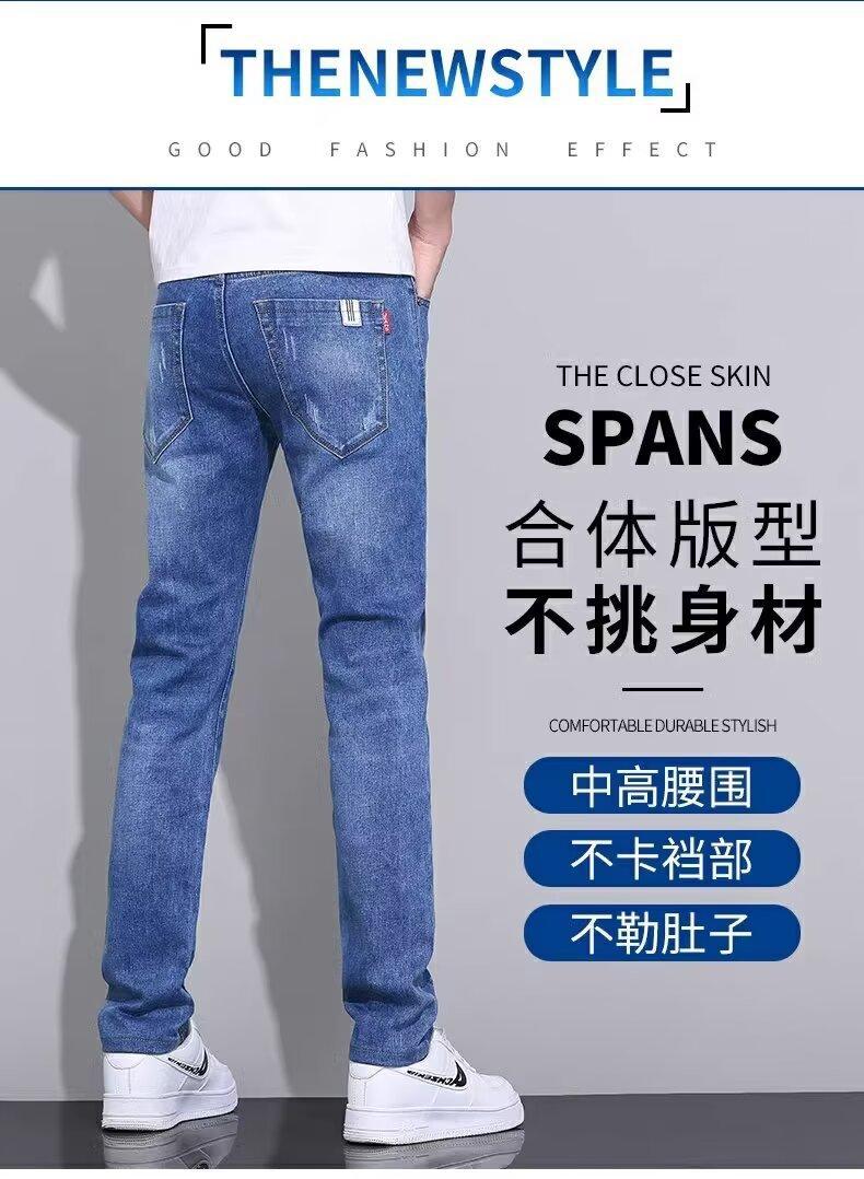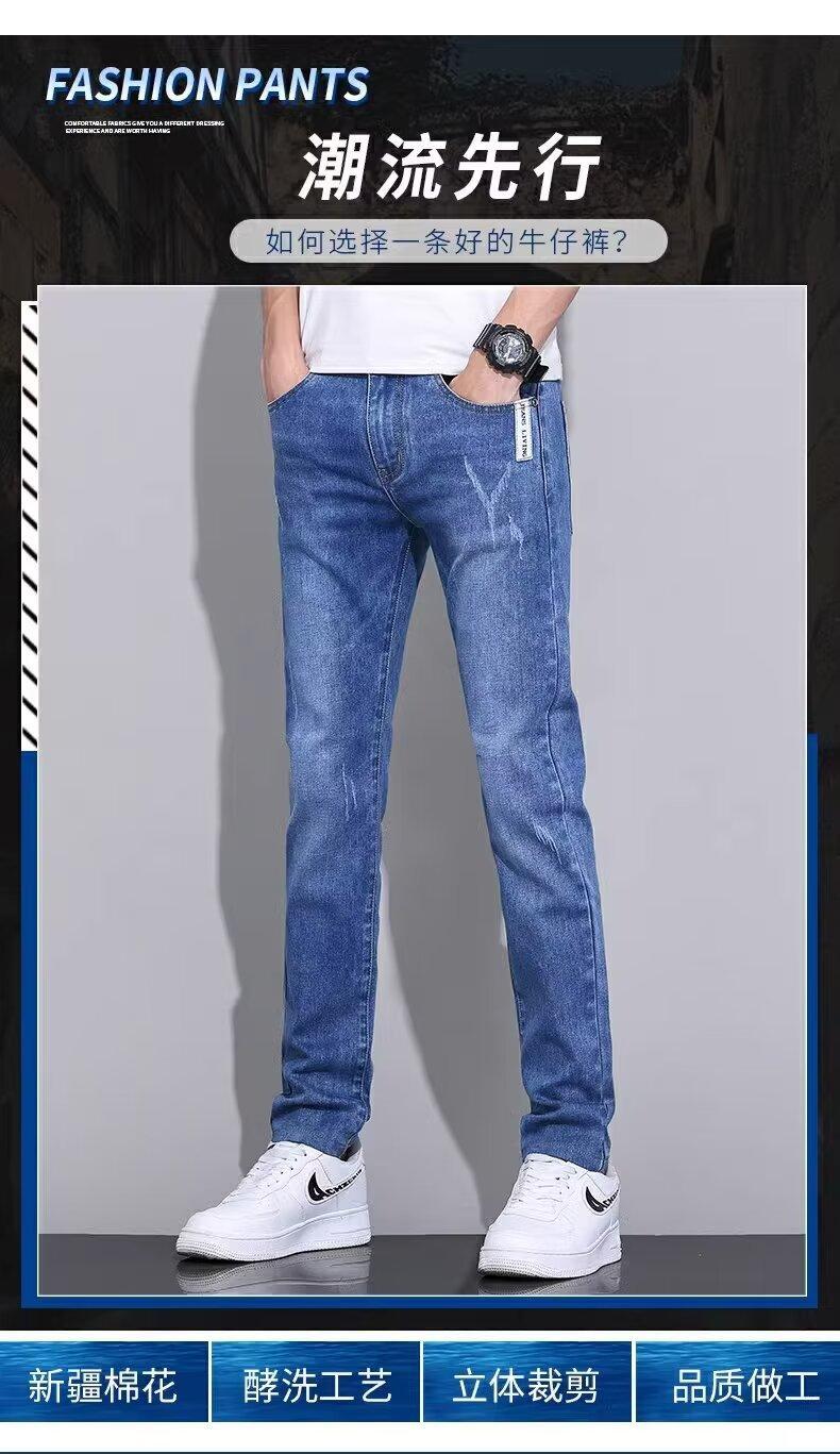 Primavera/Verano Nuevo Jeans Elásticos Hombre Estilo Coreano Tendencia Delgados Rectos Ajustados Versátiles Casuales de Gama Alta Pantalones Largos
