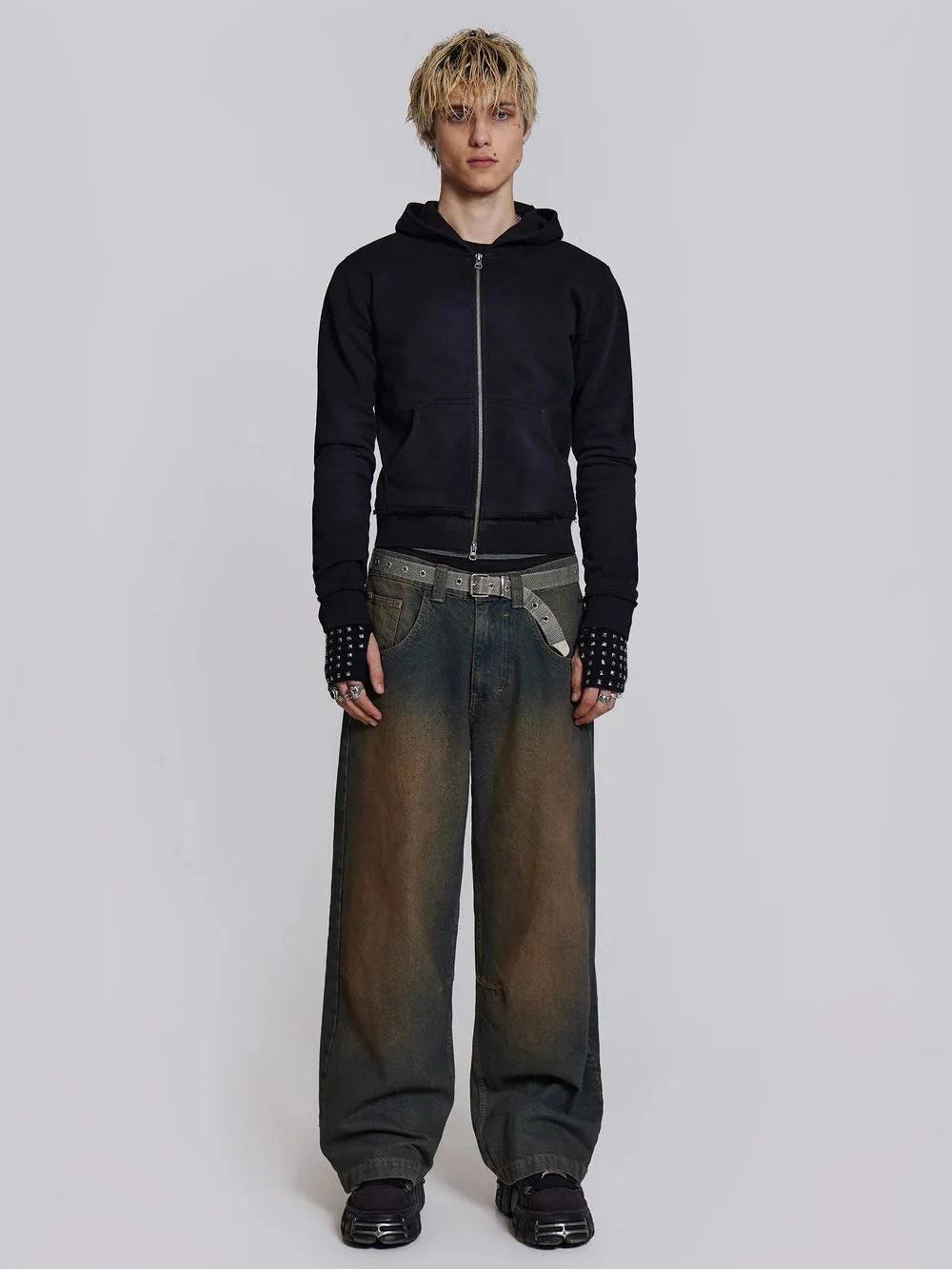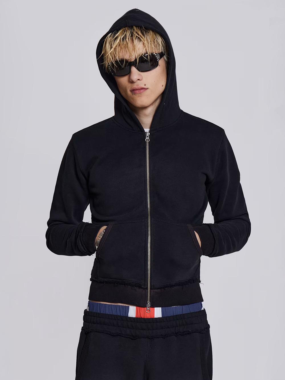 Sudadera con capucha y cremallera estilo europeo y americano para hombre, nueva colección otoño-invierno 2025, corte ajustado, algodón puro, versátil, diseño de estilo retro hip-hop