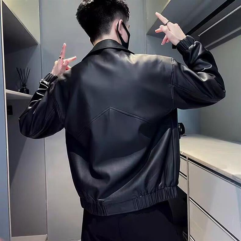 Chaqueta de Cuero para Hombre Primavera Otoño Casual Moderna Marca PUNK Guapo Motocicleta Tendencia Chaqueta de Cuero Abrigo Ropa de Trabajo Ajustada Top de Alta Gama