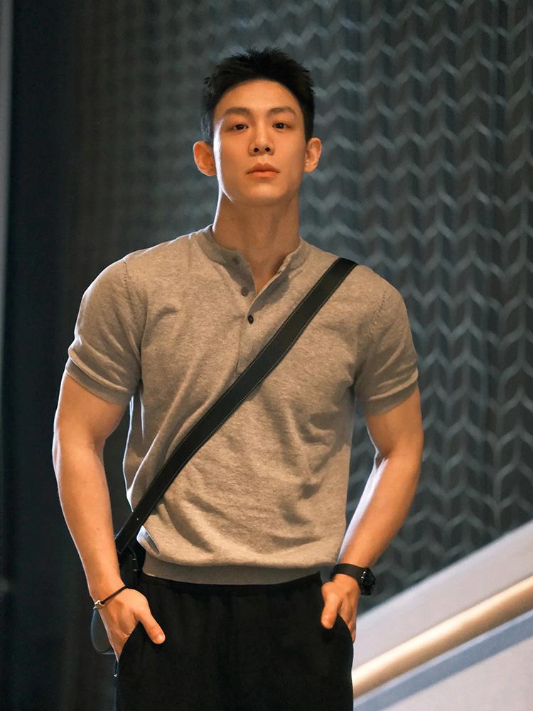 Camiseta Polo Henley de Manga Corta American Fitness para Hombre Verano Hombro Recto Puños Camiseta Pesada Rígida Manga Corta
