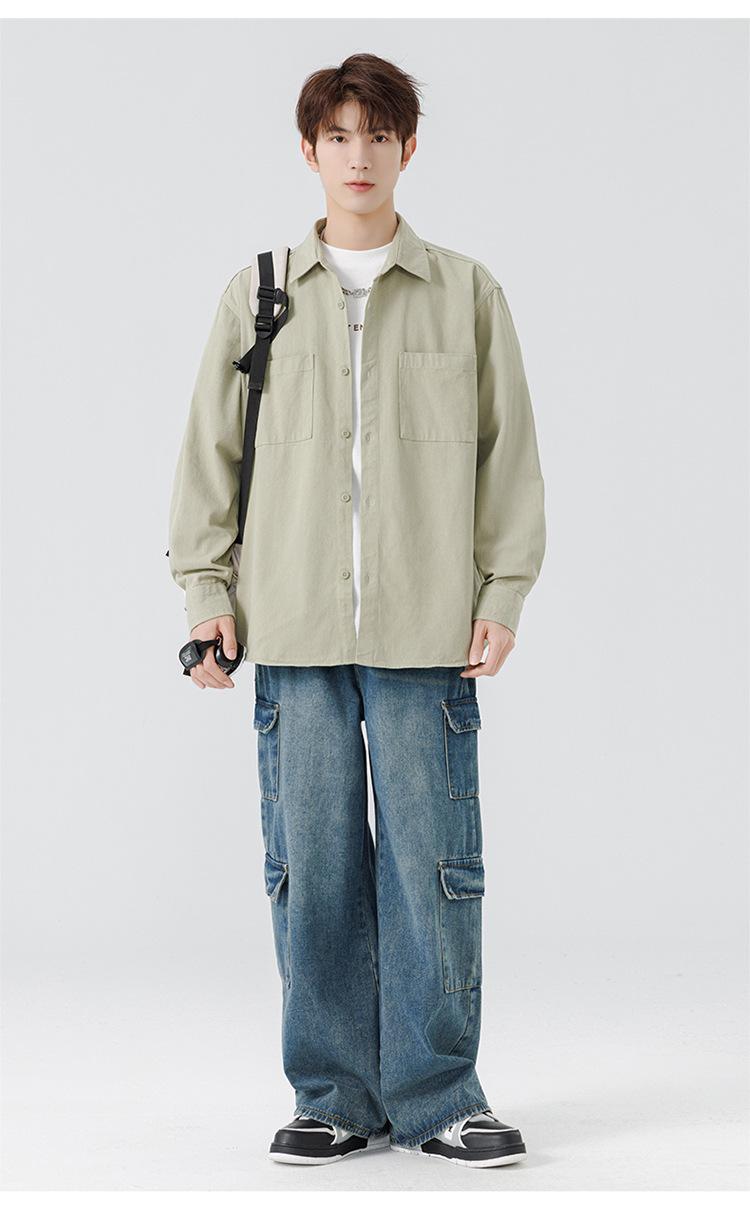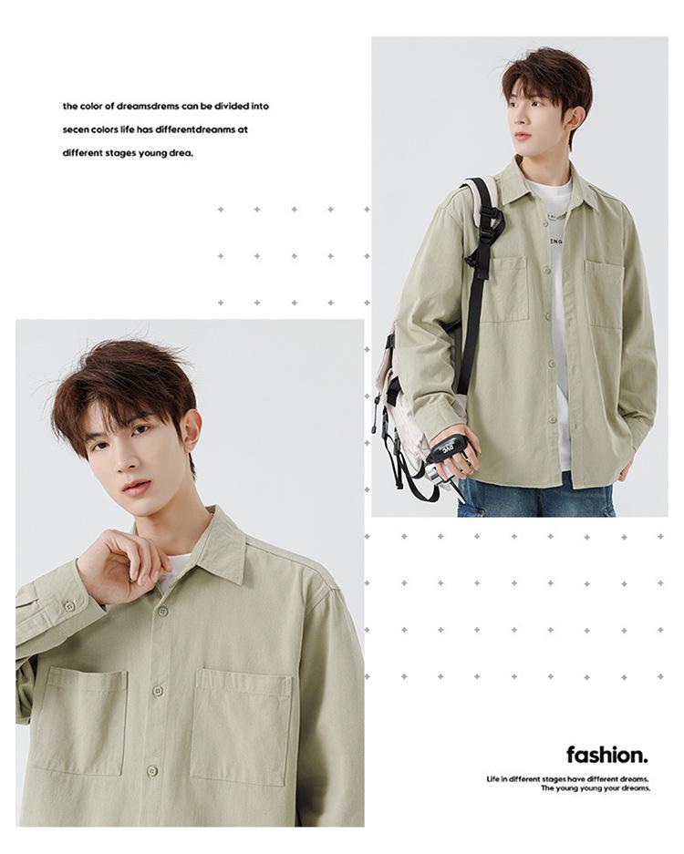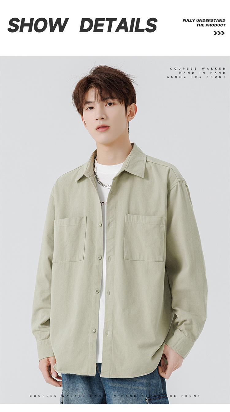 Camisa de Manga Larga de Algodón Puro para Hombre Otoño y Primavera Nueva Suelta Casual Camisa para Hombre Tendencia Coreana Top Versátil Chaqueta Hombre