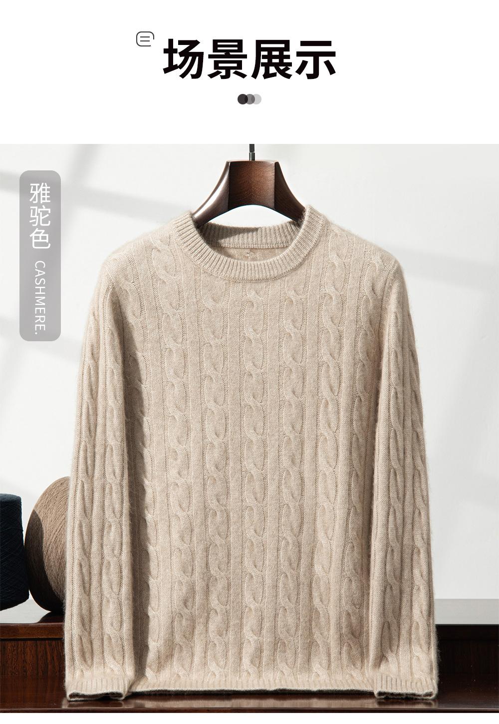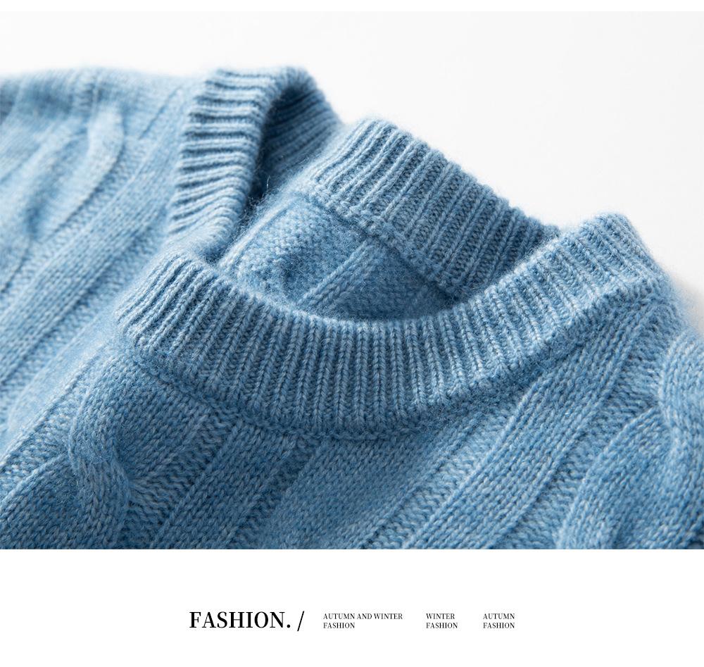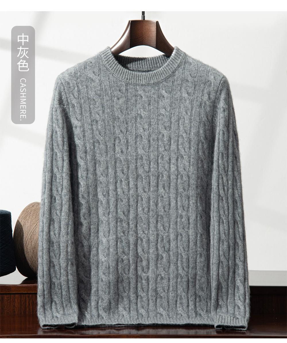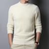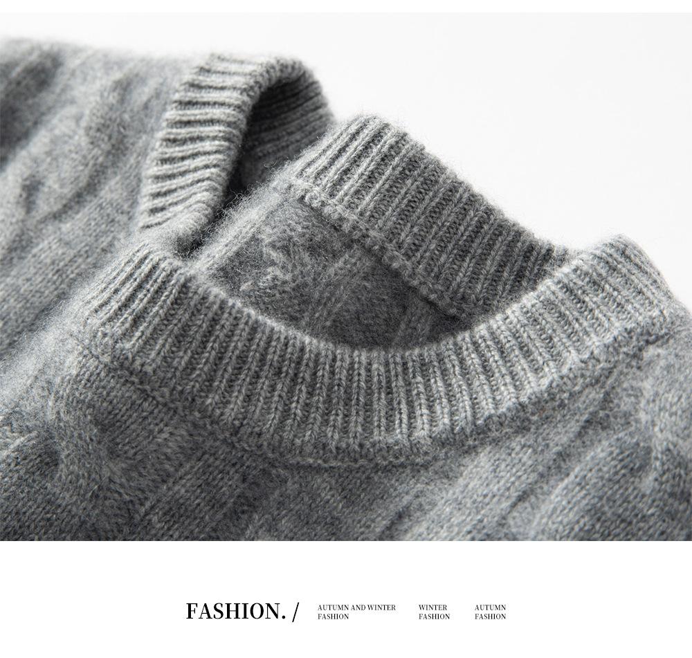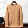 Nuevo Suéter de Cachemira de Punto Trenzado de Doble Hebra para Otoño/Invierno para Hombre, Cuello Redondo, Prendas de Punto para Hombre, Lana, Color Sólido, Cálido, Capa Base
