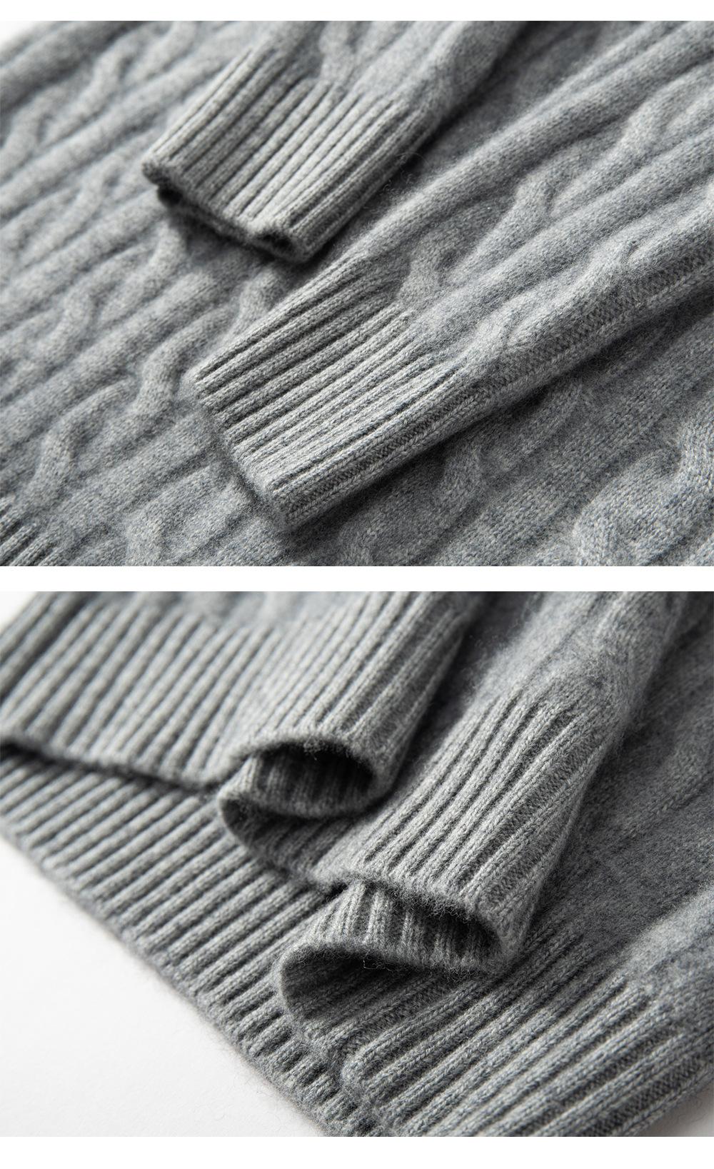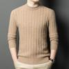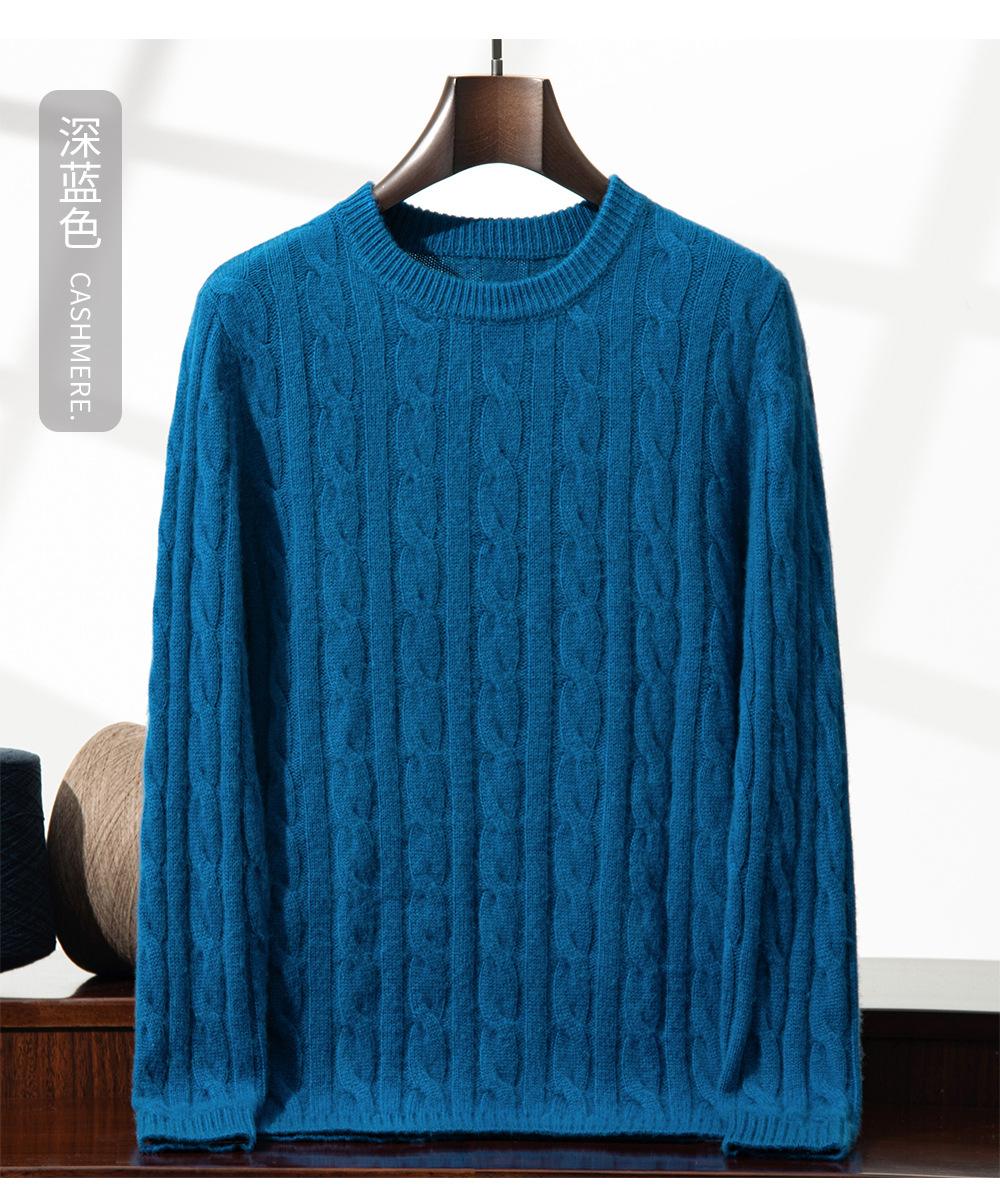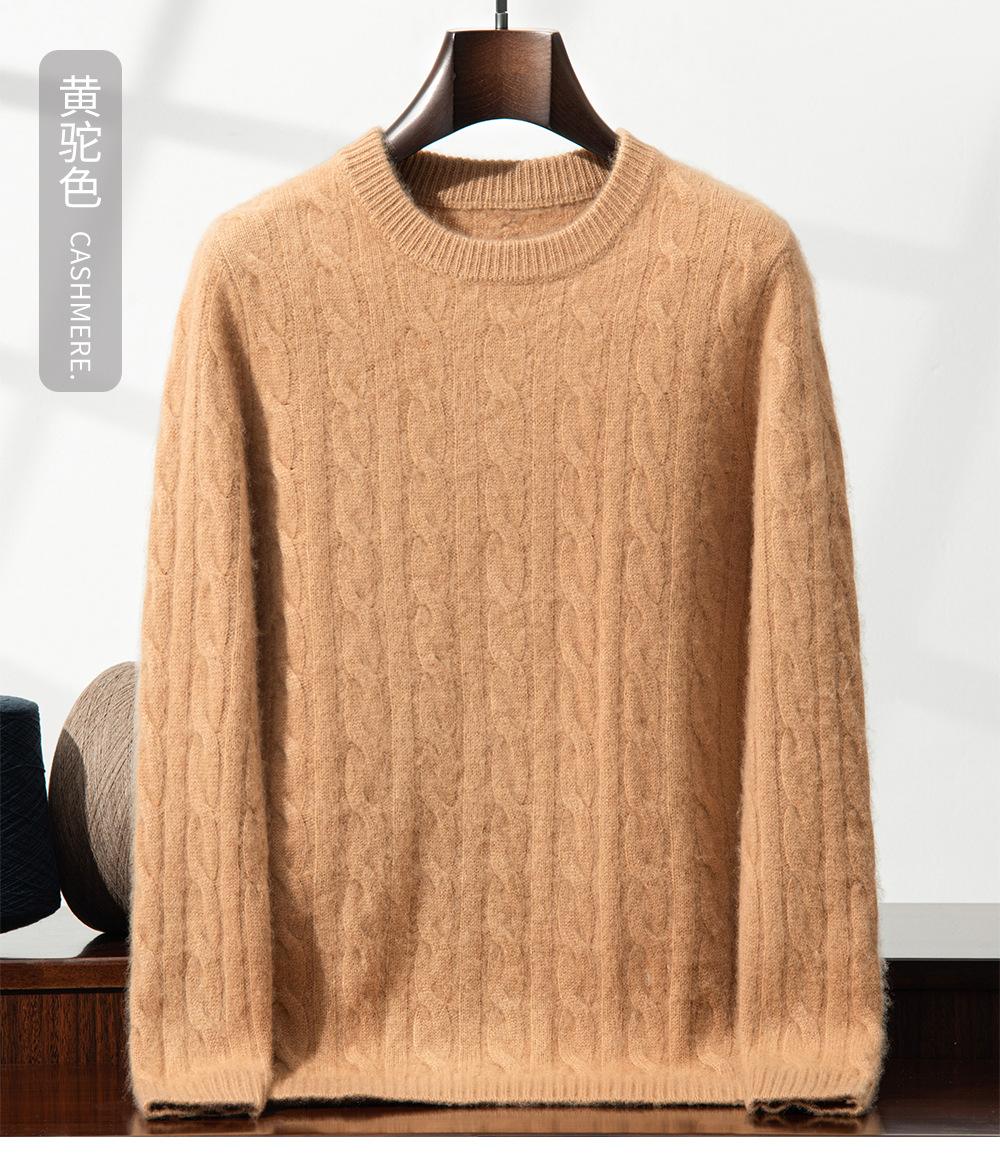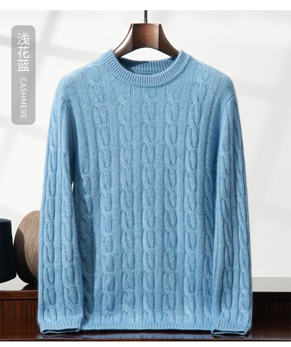 Nuevo Suéter de Cachemira de Punto Trenzado de Doble Hebra para Otoño/Invierno para Hombre, Cuello Redondo, Prendas de Punto para Hombre, Lana, Color Sólido, Cálido, Capa Base
