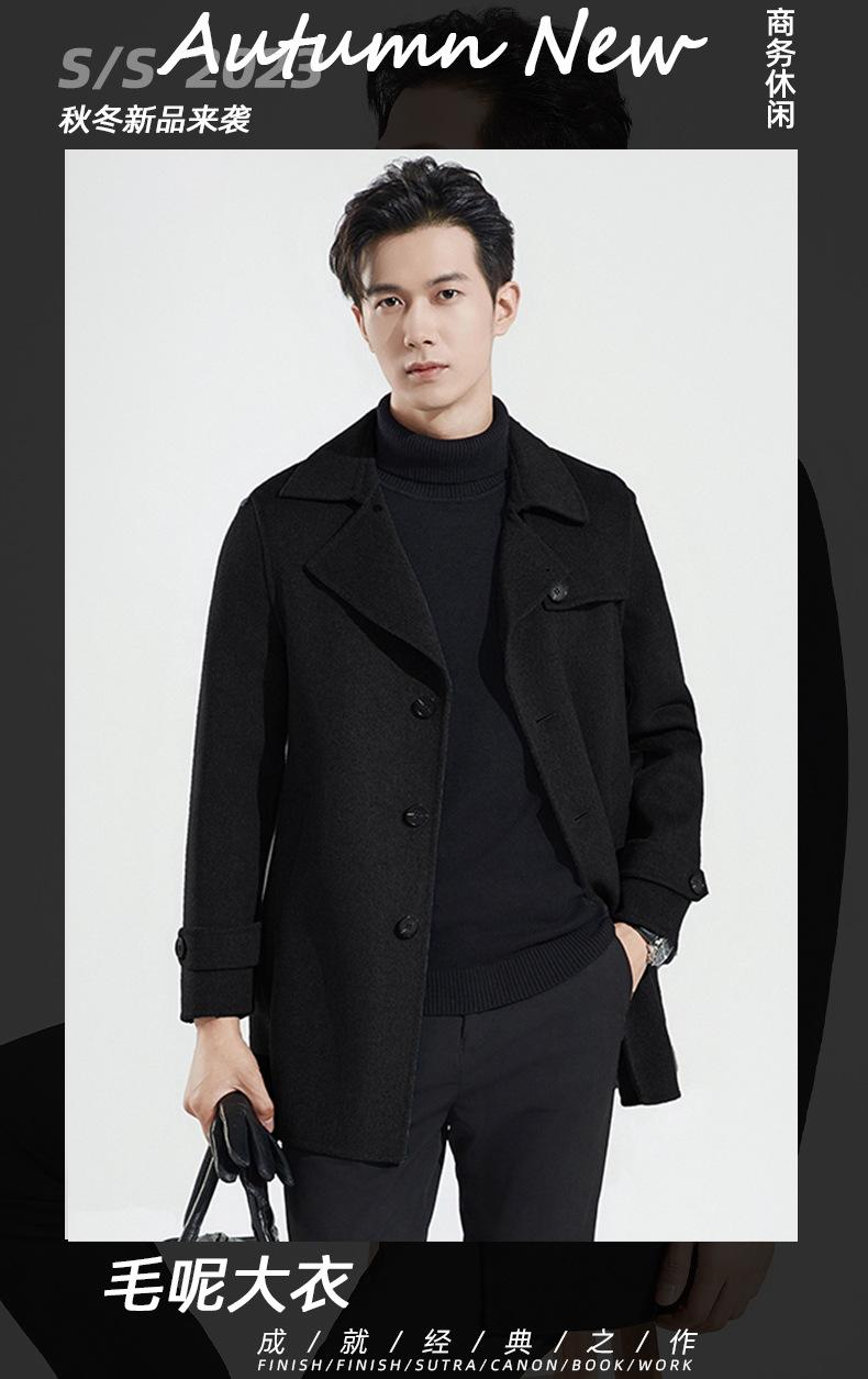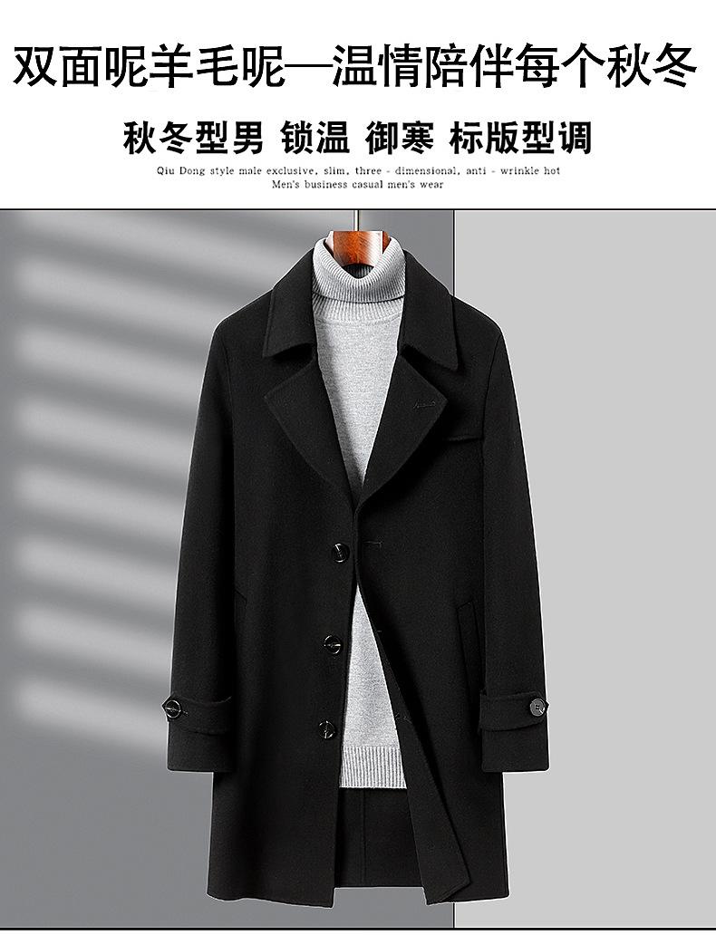 En stock Estilo Coreano Elegante Abrigo de Lana de Oveja Abrigo para Hombre Color Sólido Largo Medio Engrosado Doble Faz Abrigo de Tweed Nuevo