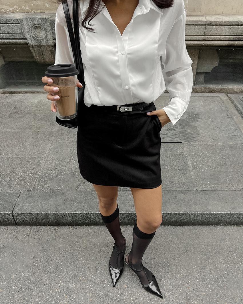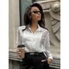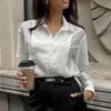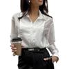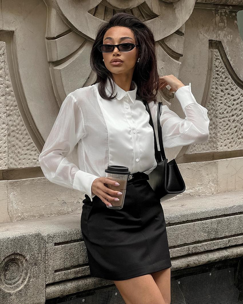 Camisa Blanca de Viaje Transfronterizo Europeo y Americano con Cuello Vuelto para Mujer, Verano, Sentido del Diseño Empalmado, Manga Larga, Ropa de Mujer para Comercio Exterior