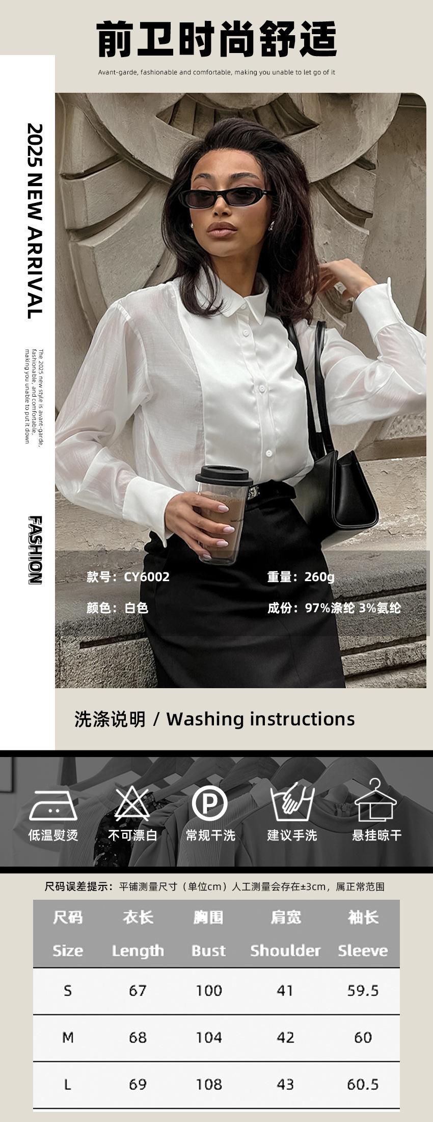 Compra Camisa Blanca de Viaje Transfronterizo Europeo y Americano con Cuello Vuelto para Mujer, Verano, Sentido del Diseño Empalmado, Manga Larga, Ropa de Mujer para Comercio Exterior al por mayor en Joom.pro