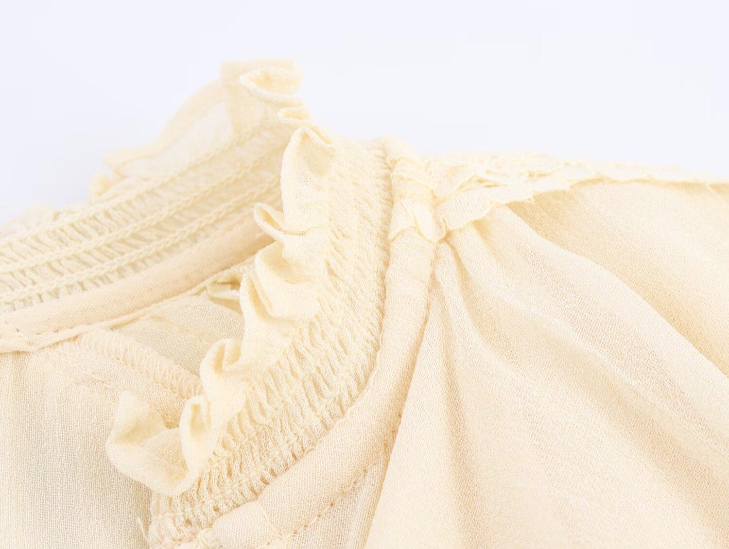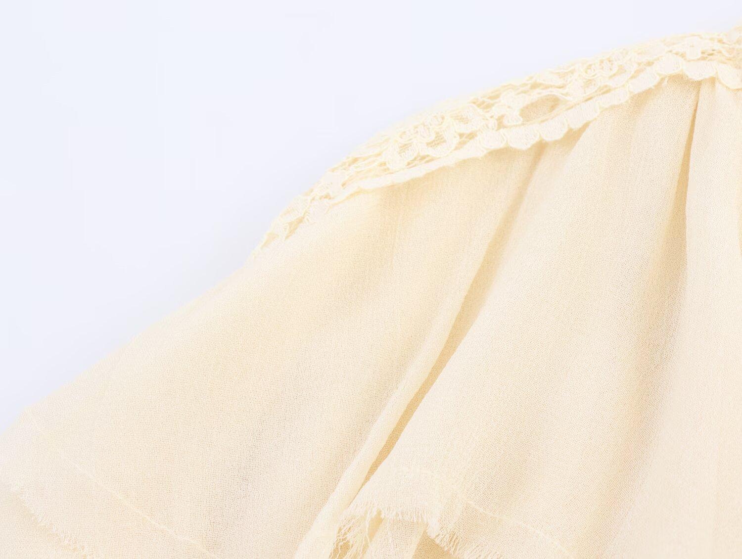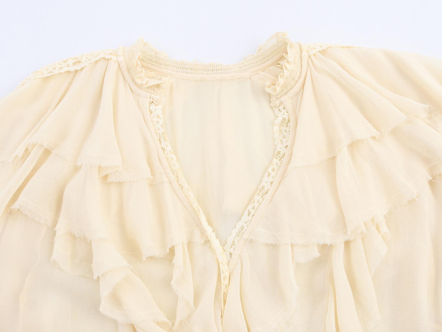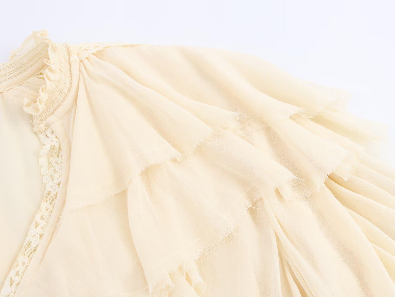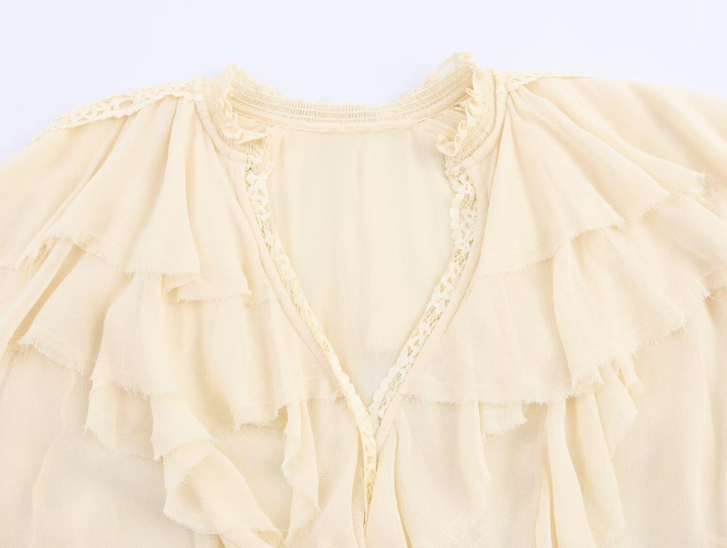 Transfronterizo Nuevo 2025 Estilo Europeo y Americano Ropa de Mujer Comercio Exterior Venta al por Mayor ZR En Stock Camisa de Encaje con Decoración en Capas