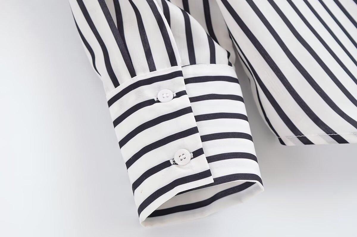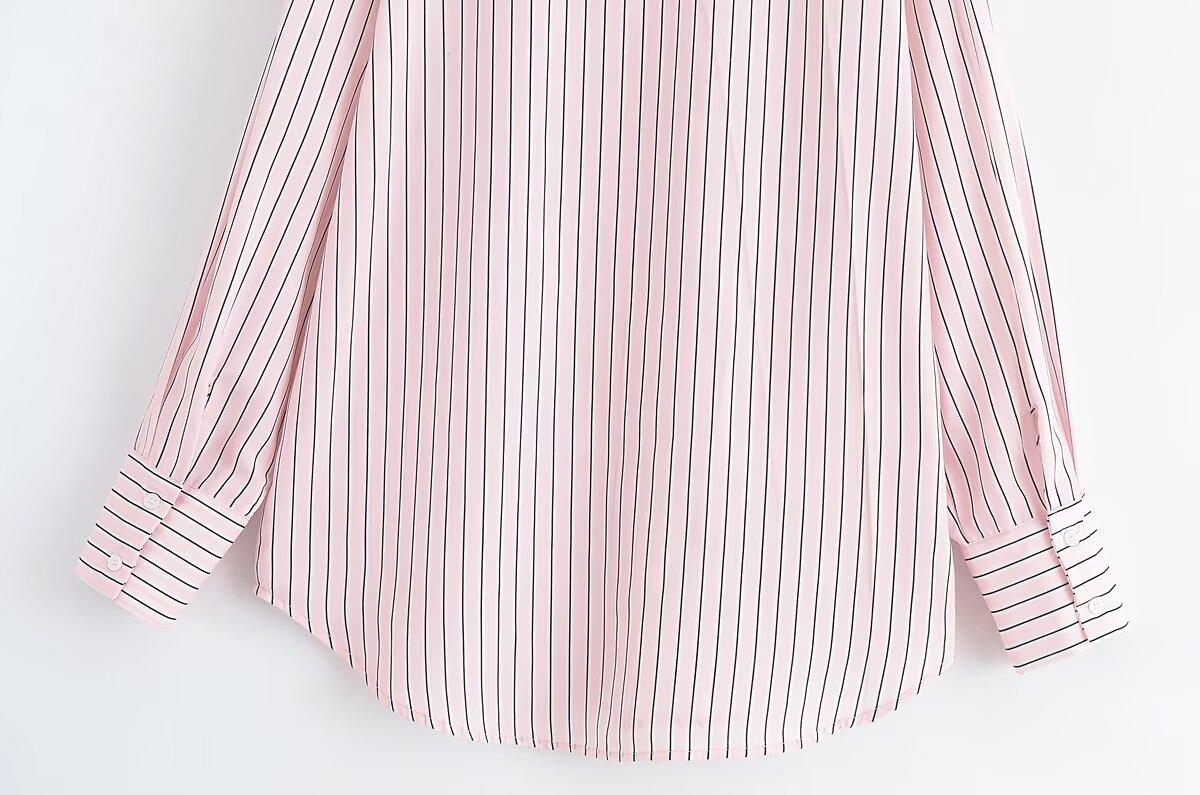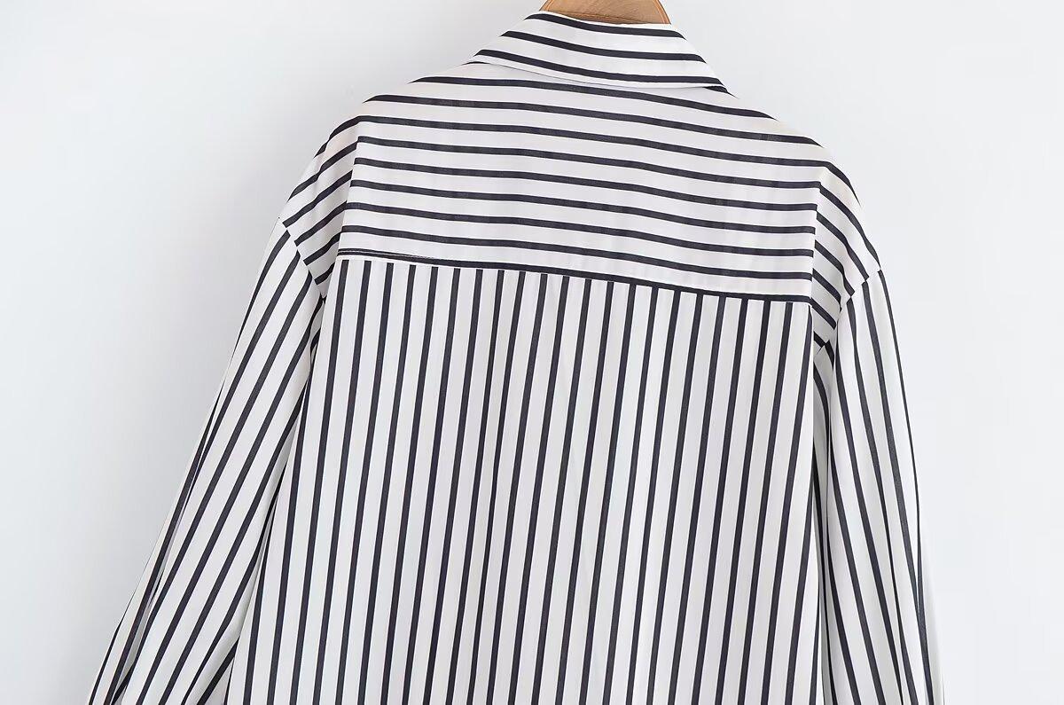 Nuevos Productos Transfronterizos 2025 Ropa de Mujer Estilo Europeo y Americano Comercio Exterior Venta al por Mayor Camisas Casuales de Moda Holgadas de Rayas de Manga Larga