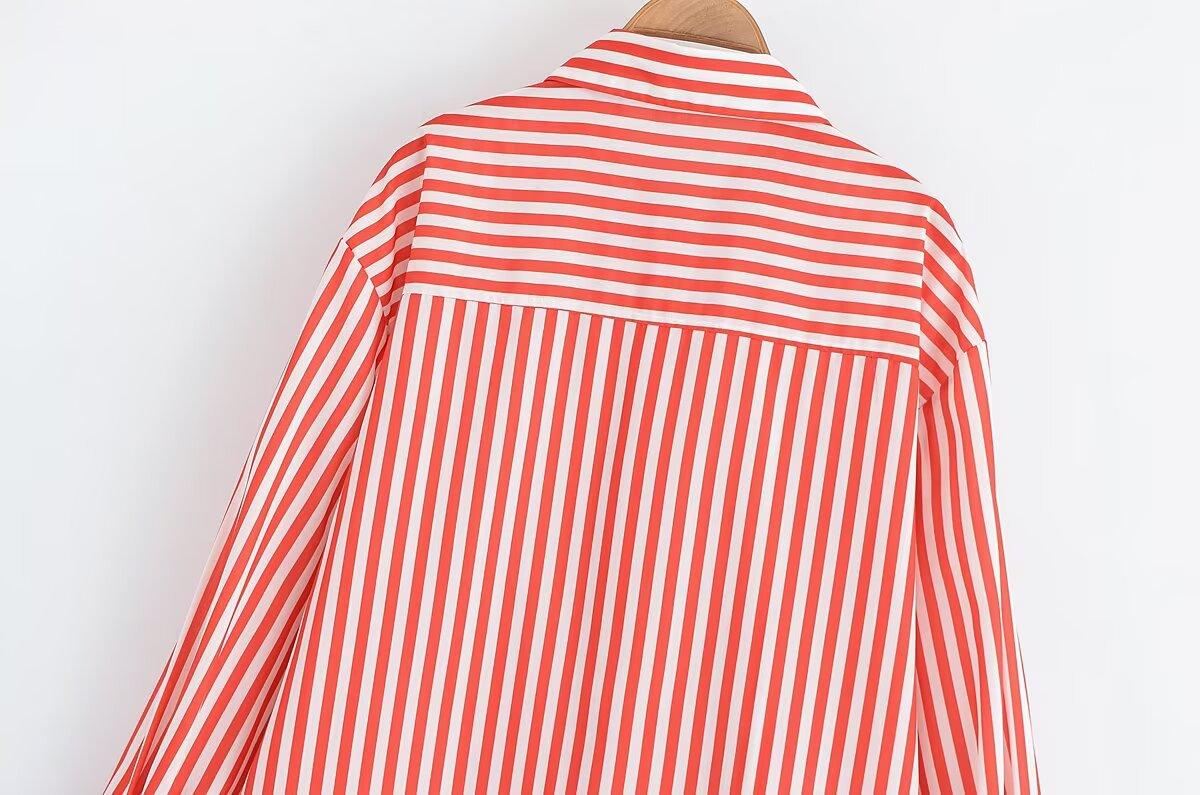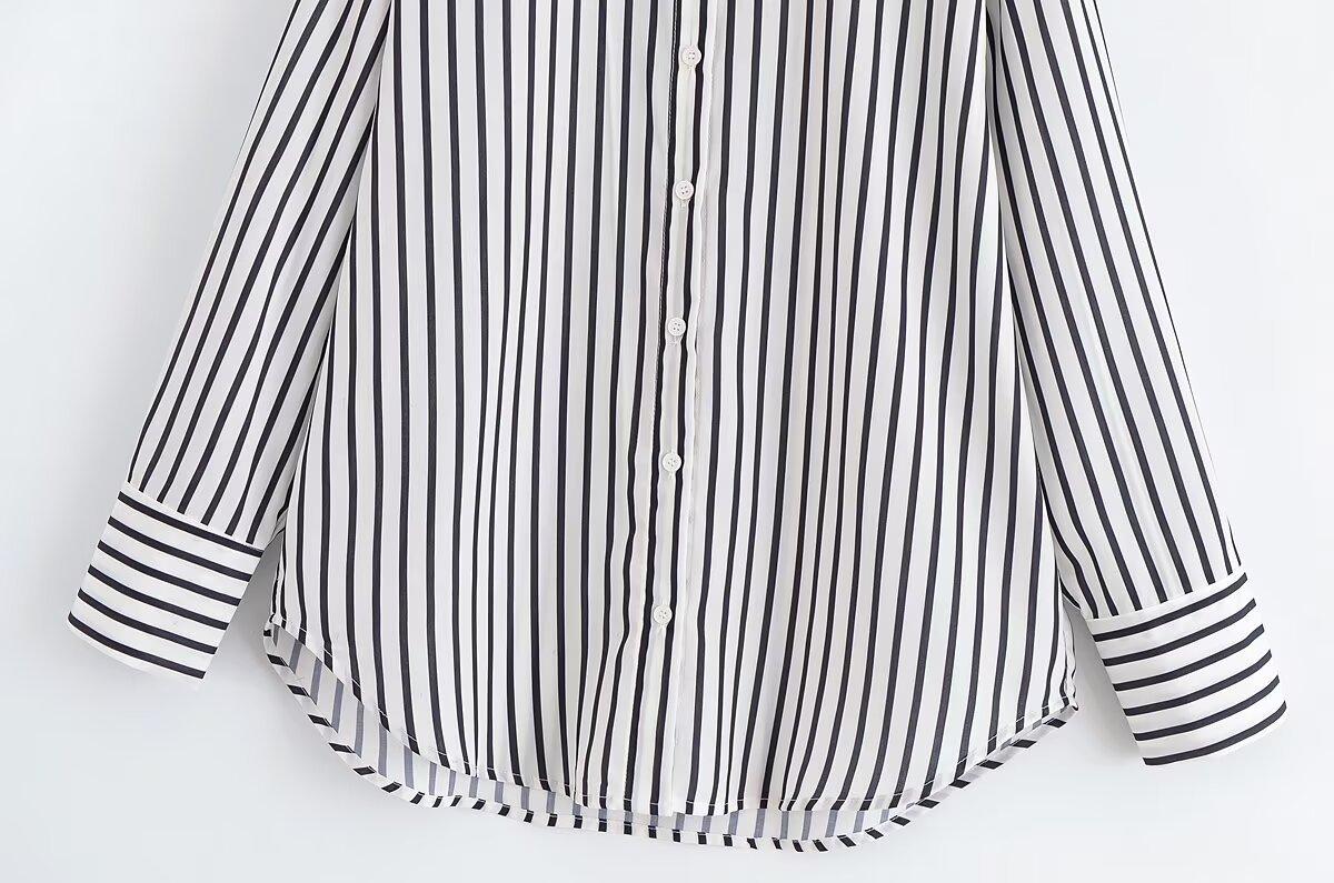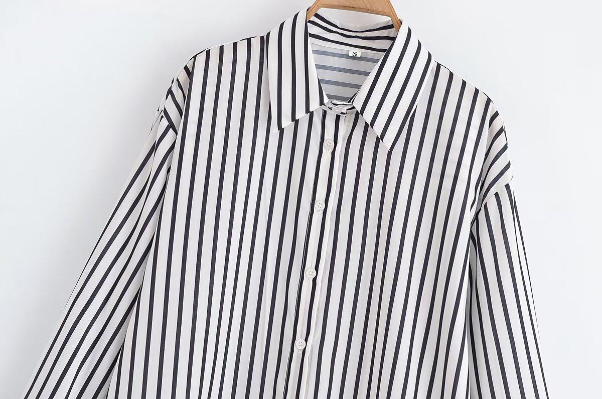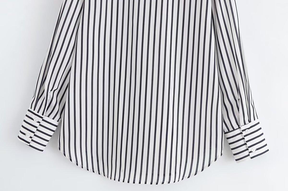 Nuevos Productos Transfronterizos 2025 Ropa de Mujer Estilo Europeo y Americano Comercio Exterior Venta al por Mayor Camisas Casuales de Moda Holgadas de Rayas de Manga Larga