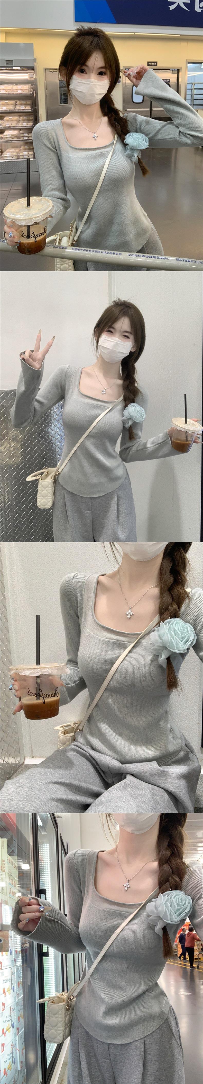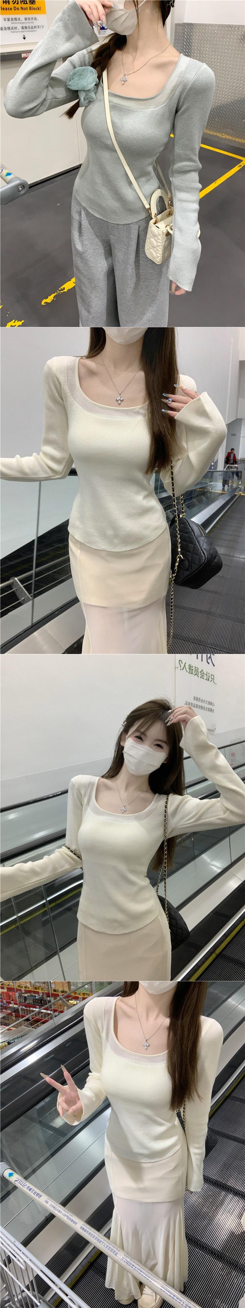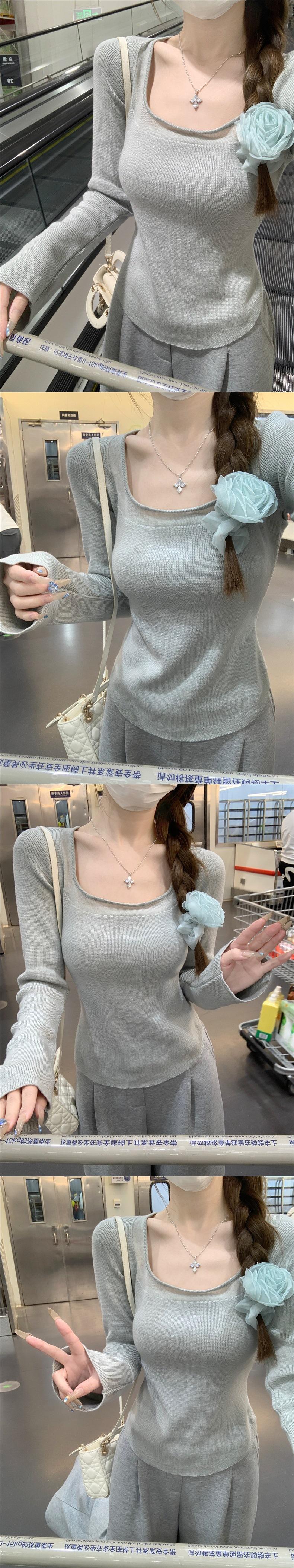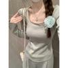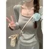 Chic puro y sexy camiseta básica de cuello cuadrado ropa interior de mujer principios de otoño 2025 nuevo top de punto de manga larga de alta gama ajustado