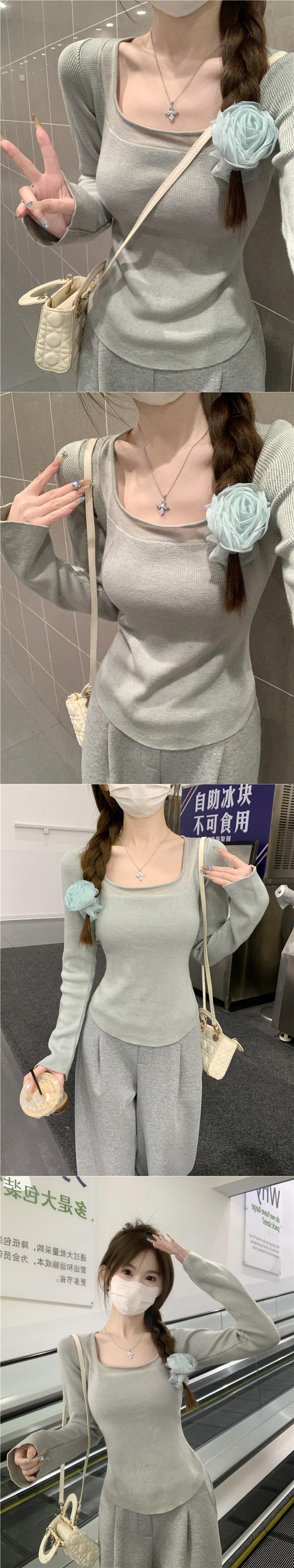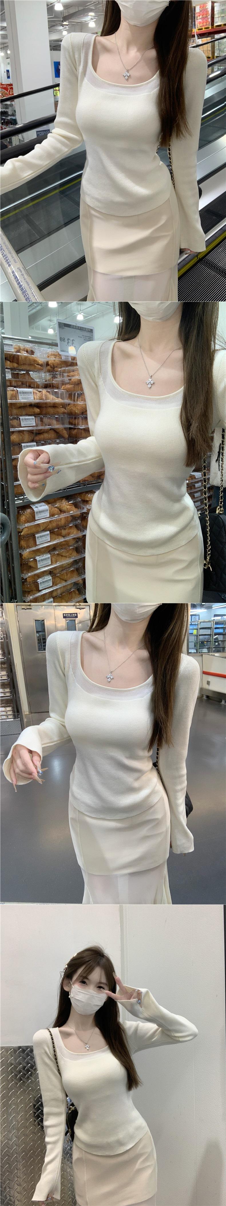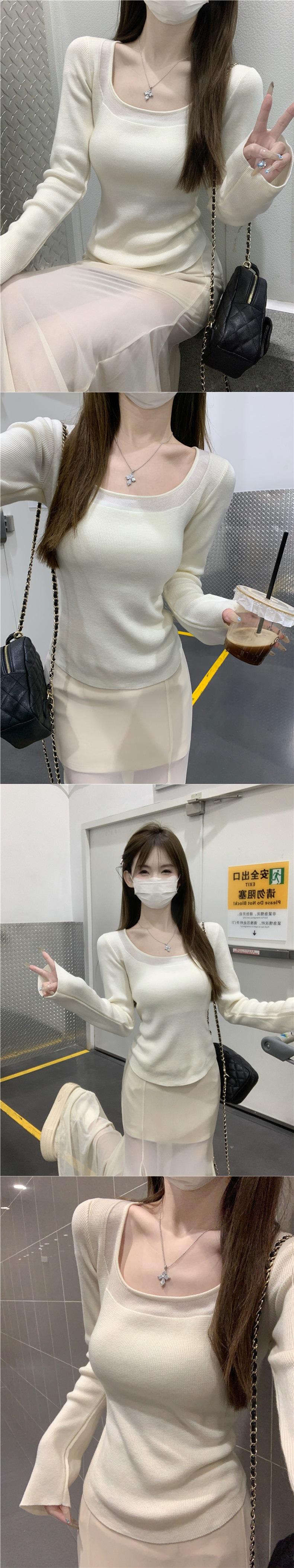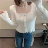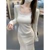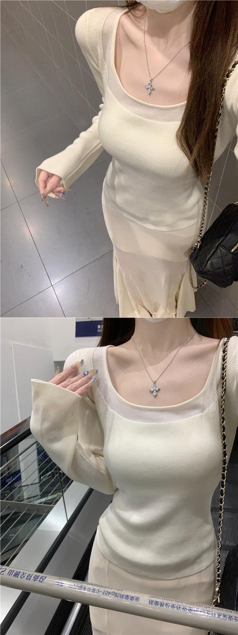 Chic puro y sexy camiseta básica de cuello cuadrado ropa interior de mujer principios de otoño 2025 nuevo top de punto de manga larga de alta gama ajustado