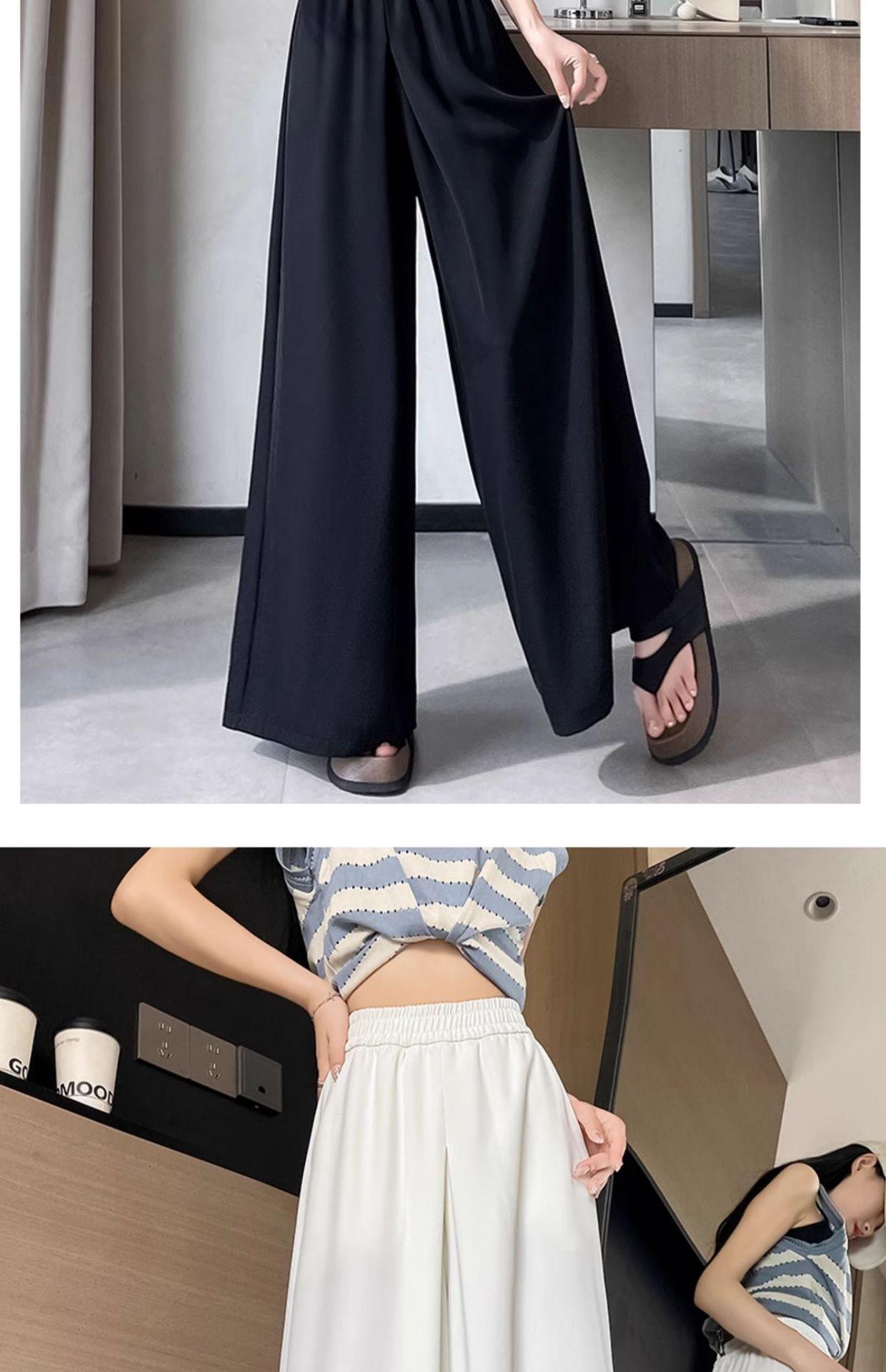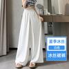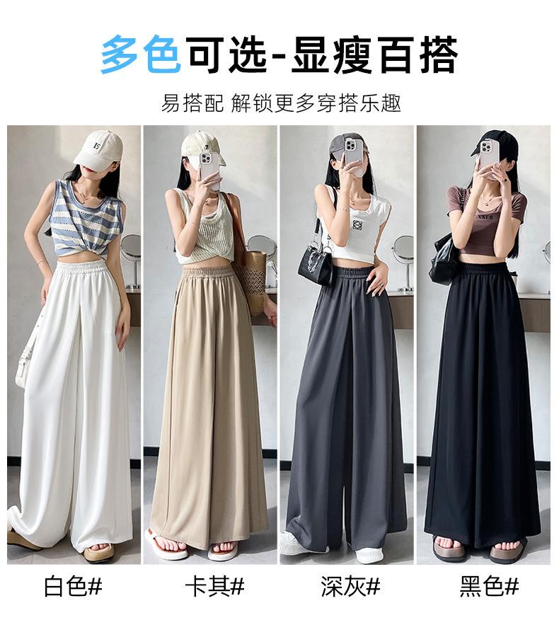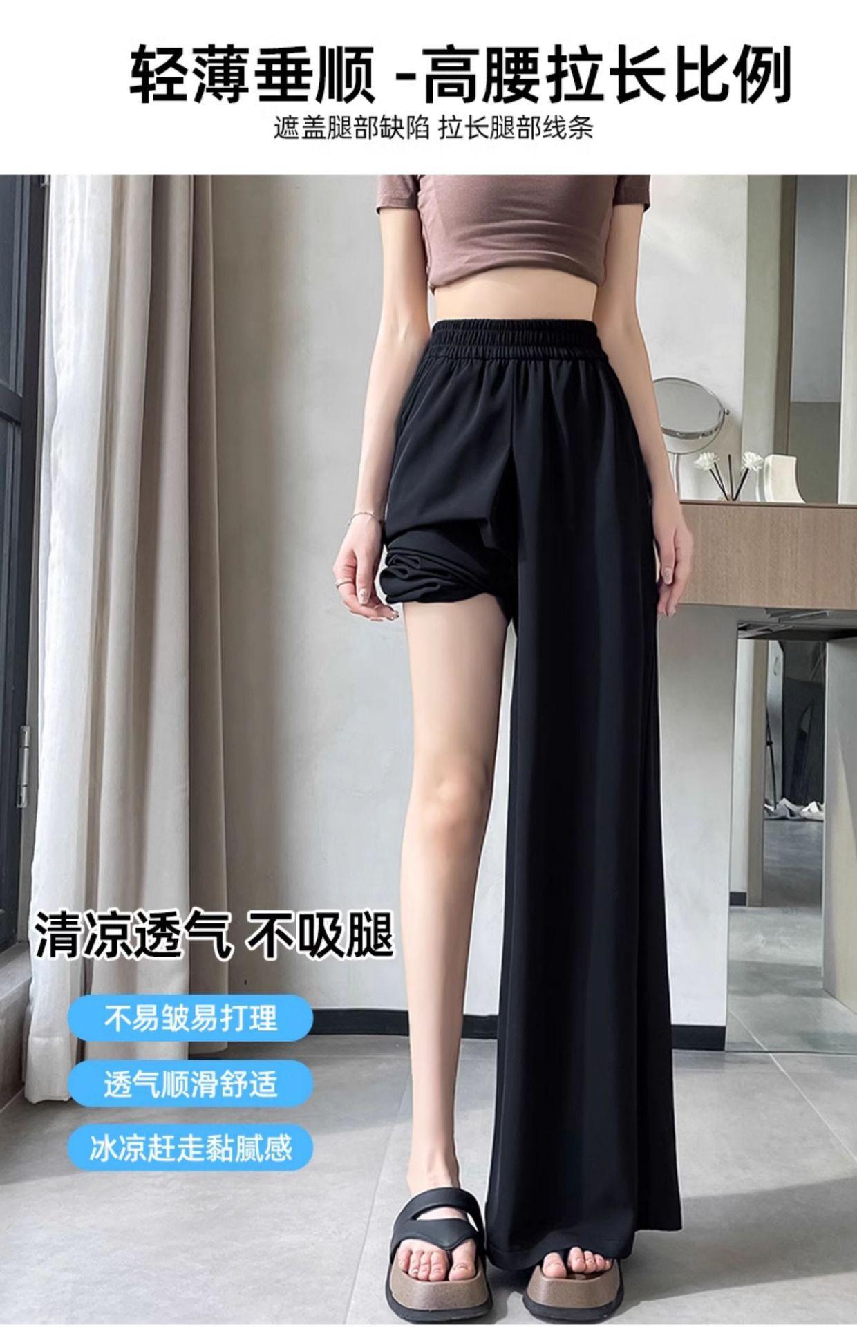 Pantalones de Falda de Seda Helada de Verano Delgados de Talla Grande de Cintura Alta para Mujer 2025 Nuevo Traje Casual Suelto Drapeado Adelgazante Pantalones de Pierna Ancha