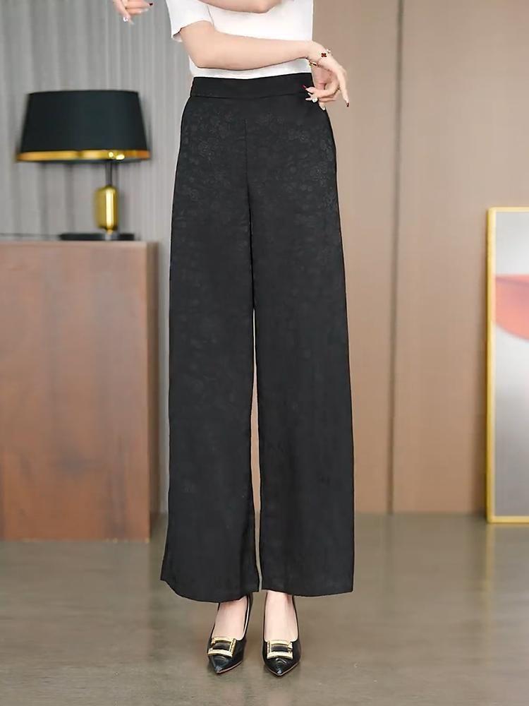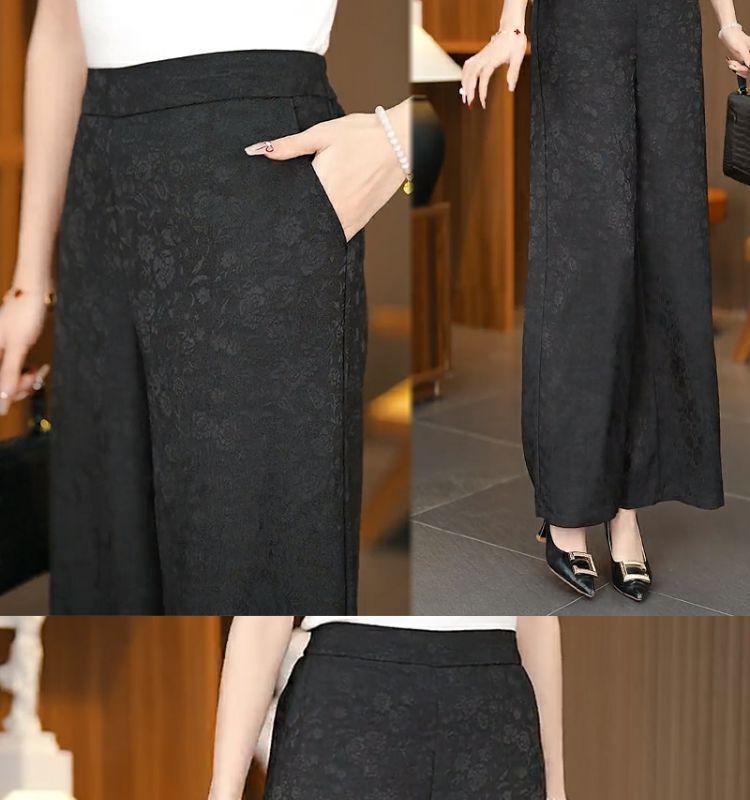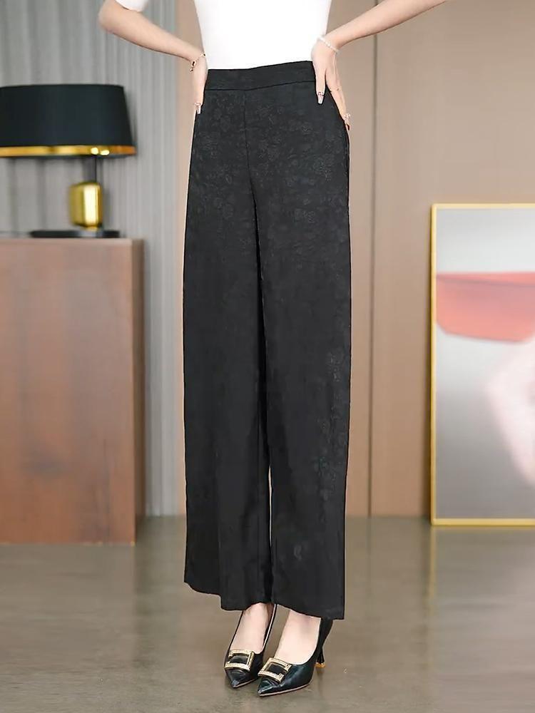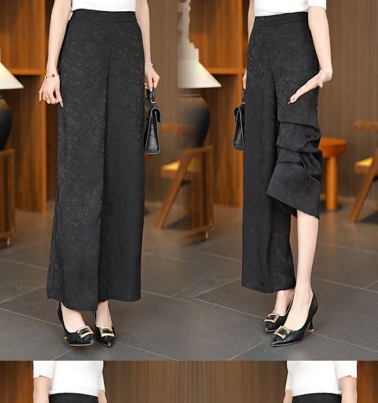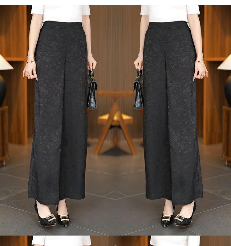 Compra Pantalones casuales rectos jacquard negros drapeados para mujer 2025 primavera/verano nuevos de talle alto holgados adelgazantes versátiles de pierna ancha al por mayor en Joom.pro