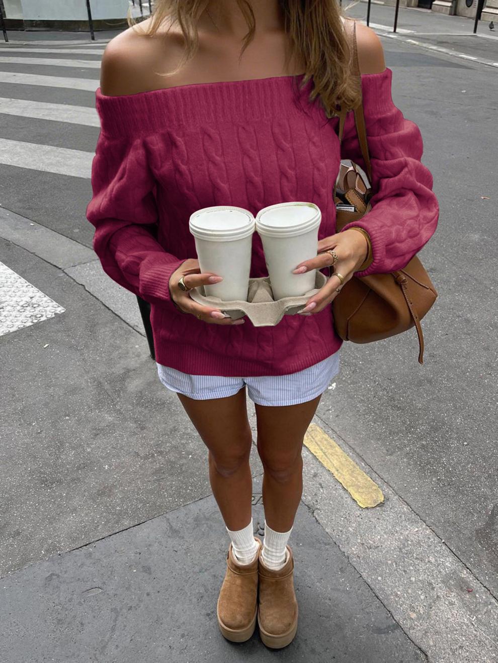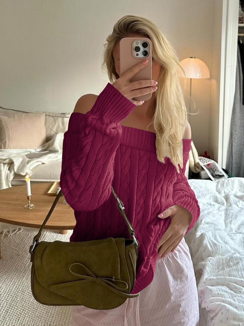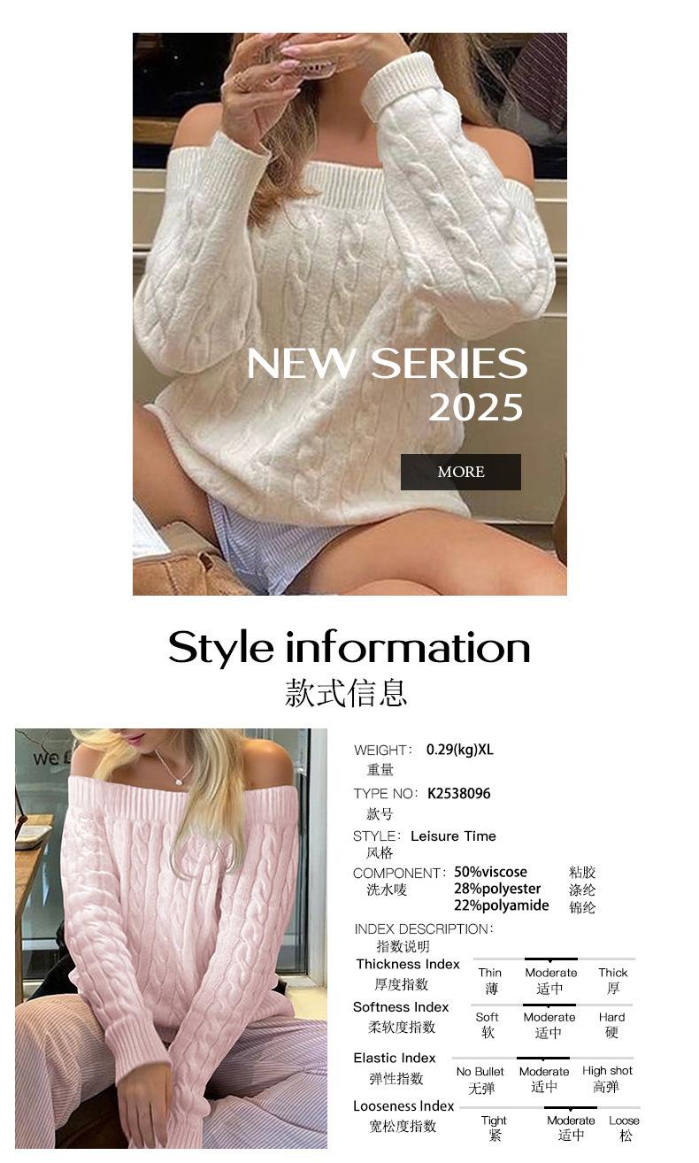 Suéter chaleco de punto de color sólido casual europeo y americano para el día a día transfronterizo para mujer al por mayor otoño e invierno 2025 top con hombros descubiertos
