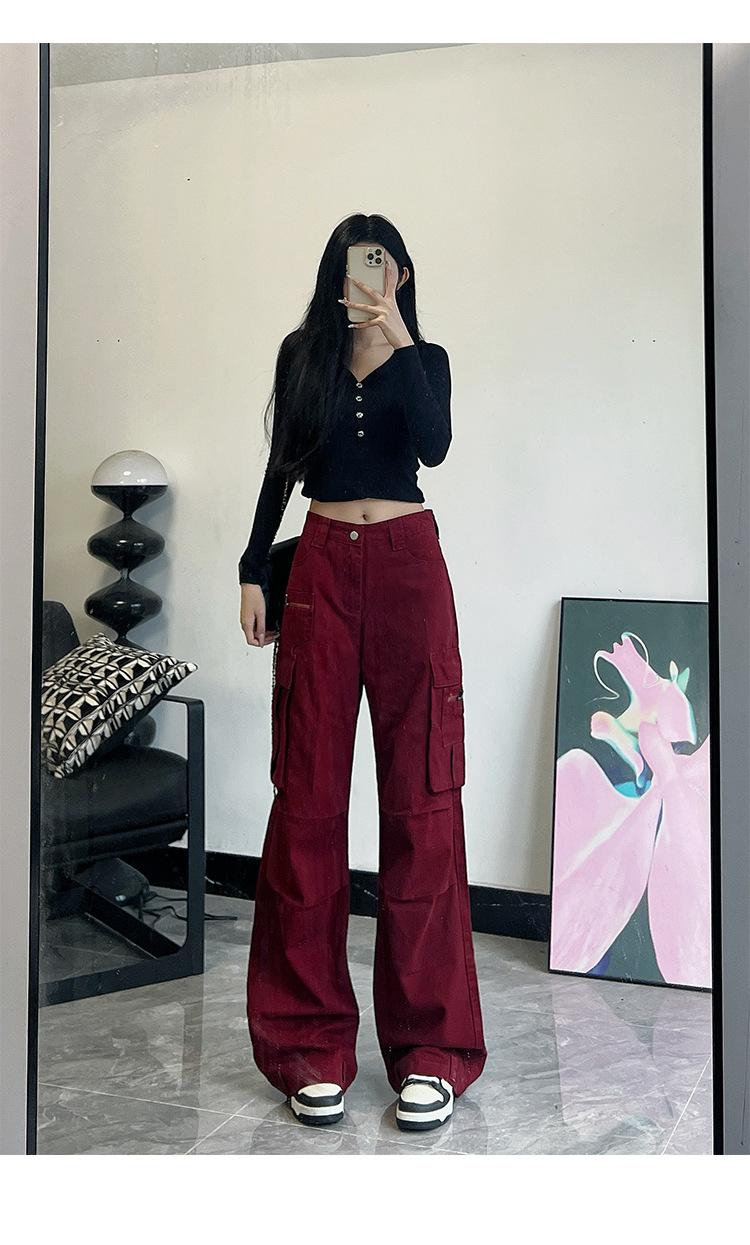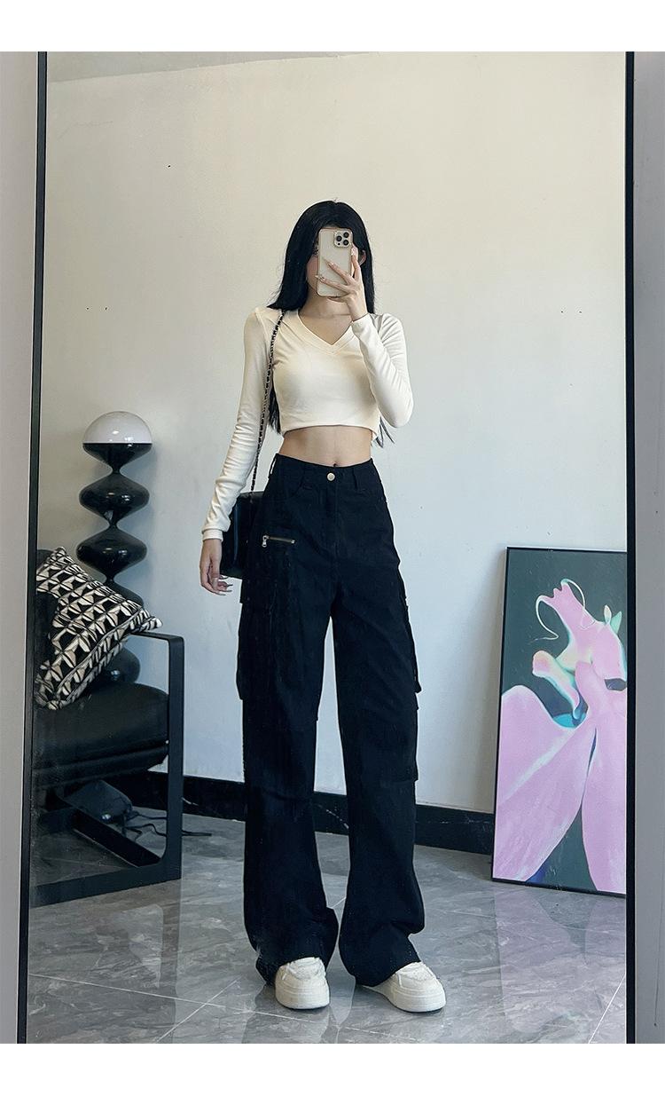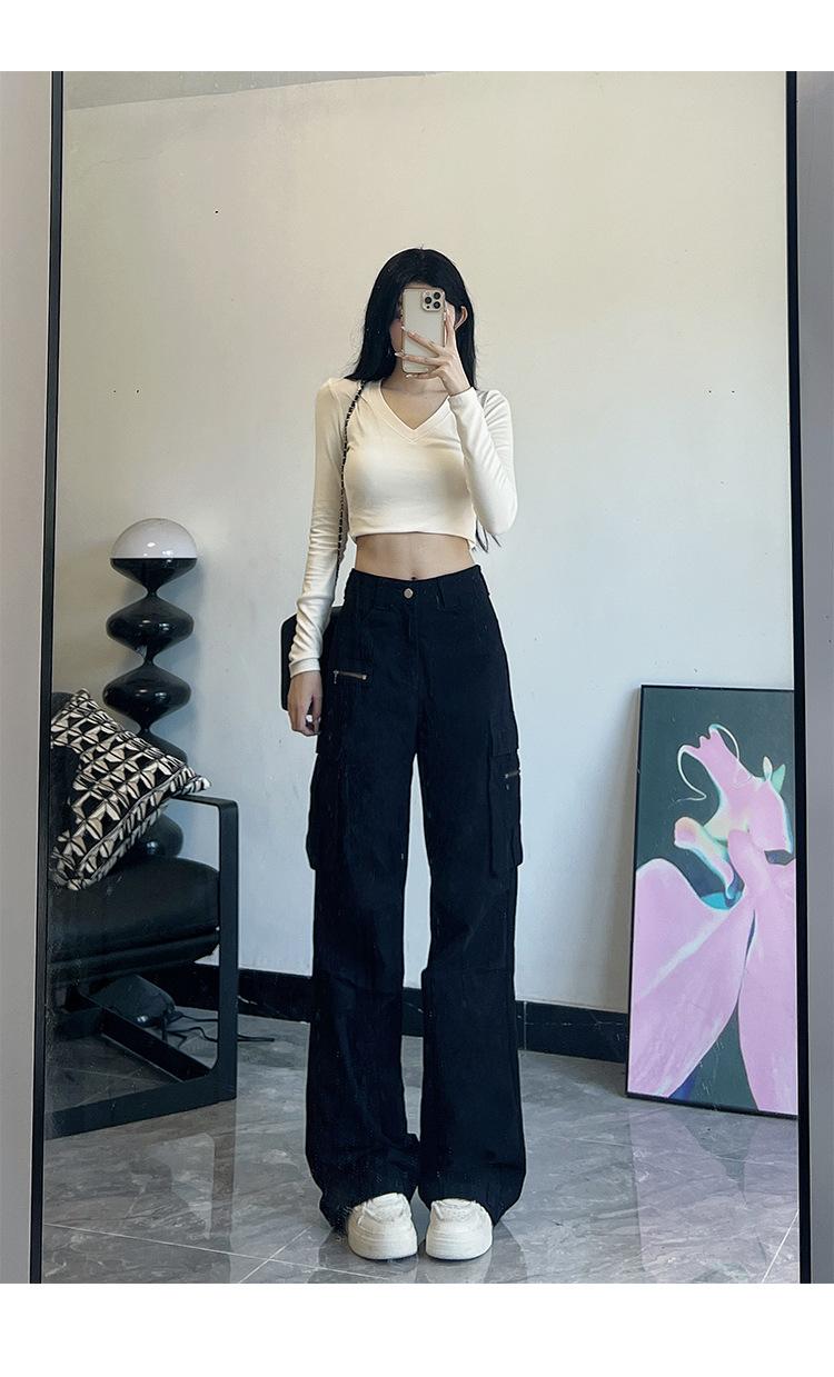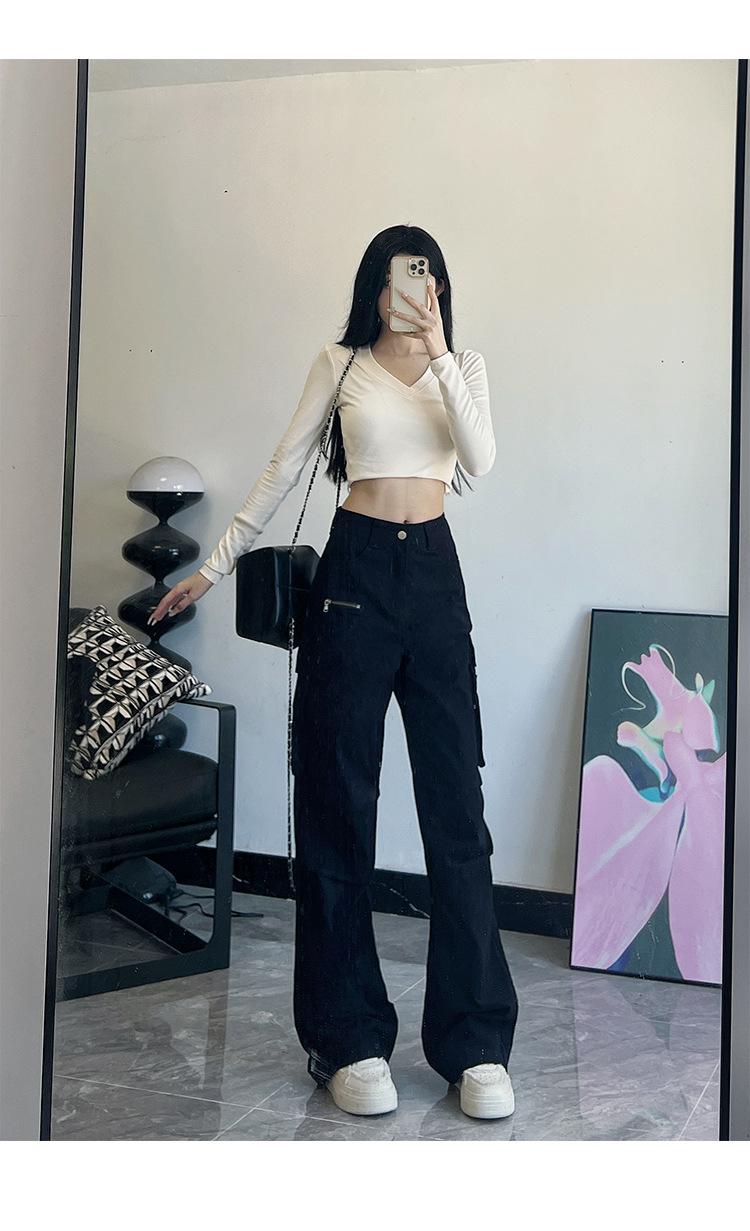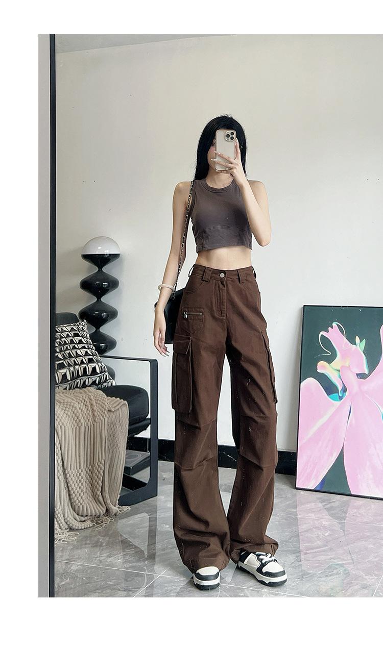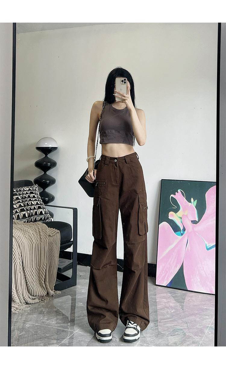 Compra Pantalones cargo plisados de estilo americano cool y vanguardista para mujer, primavera y otoño, diseño multibolsillo, vintage, holgados, rectos, largos hasta el suelo, de pierna ancha al por mayor en Joom.pro