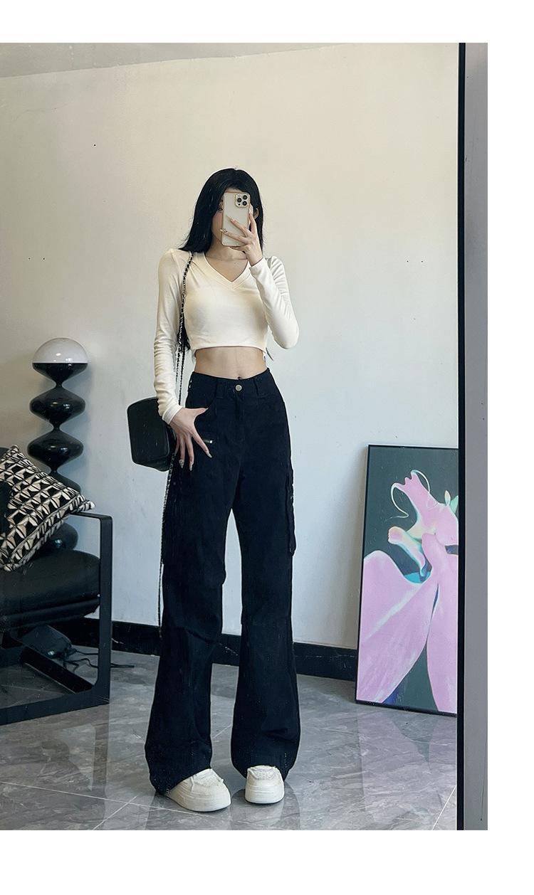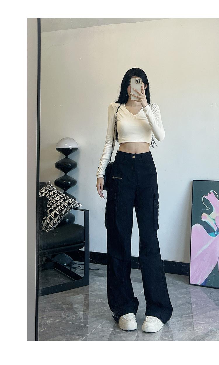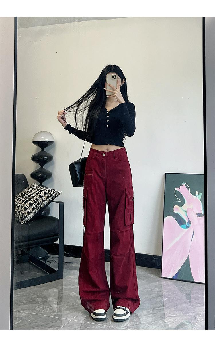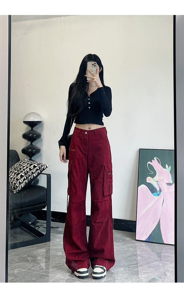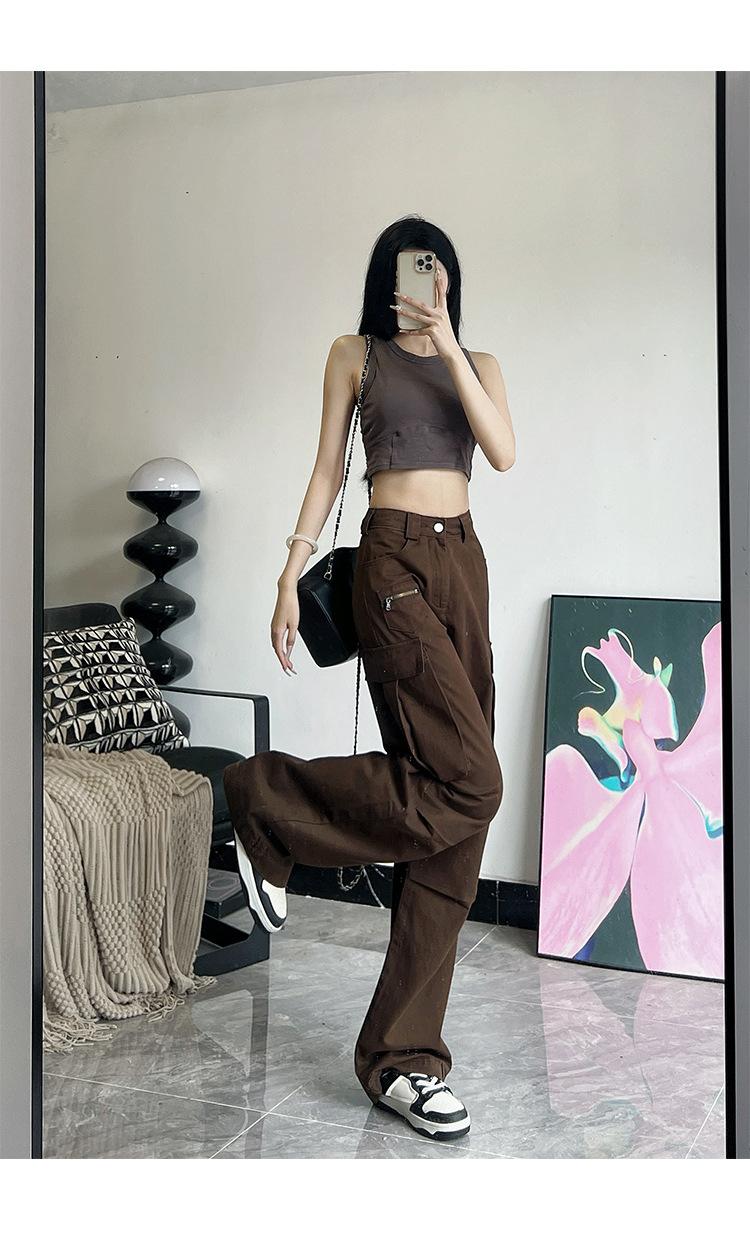 Compra Pantalones cargo plisados de estilo americano cool y vanguardista para mujer, primavera y otoño, diseño multibolsillo, vintage, holgados, rectos, largos hasta el suelo, de pierna ancha al por mayor en Joom.pro