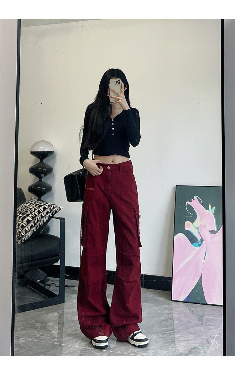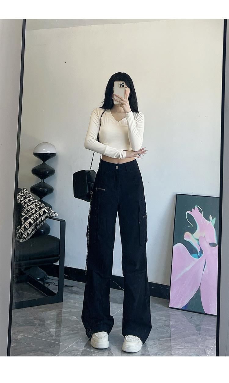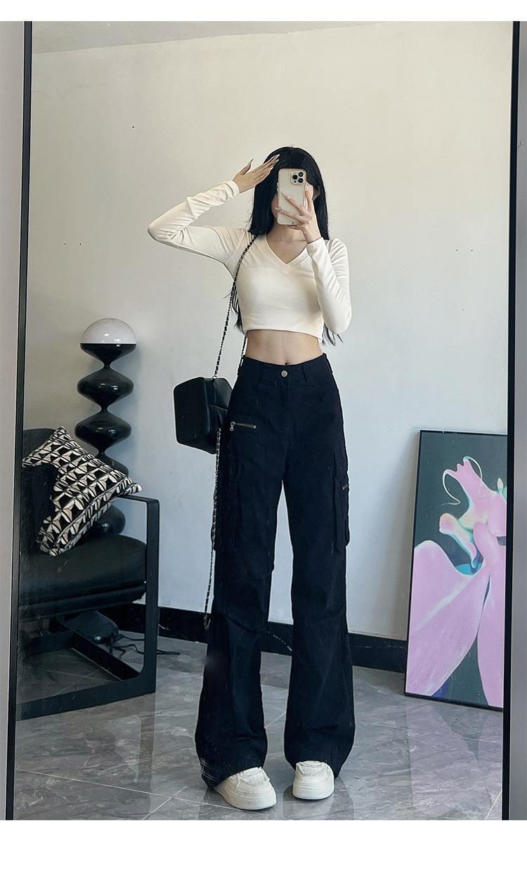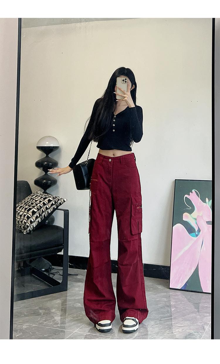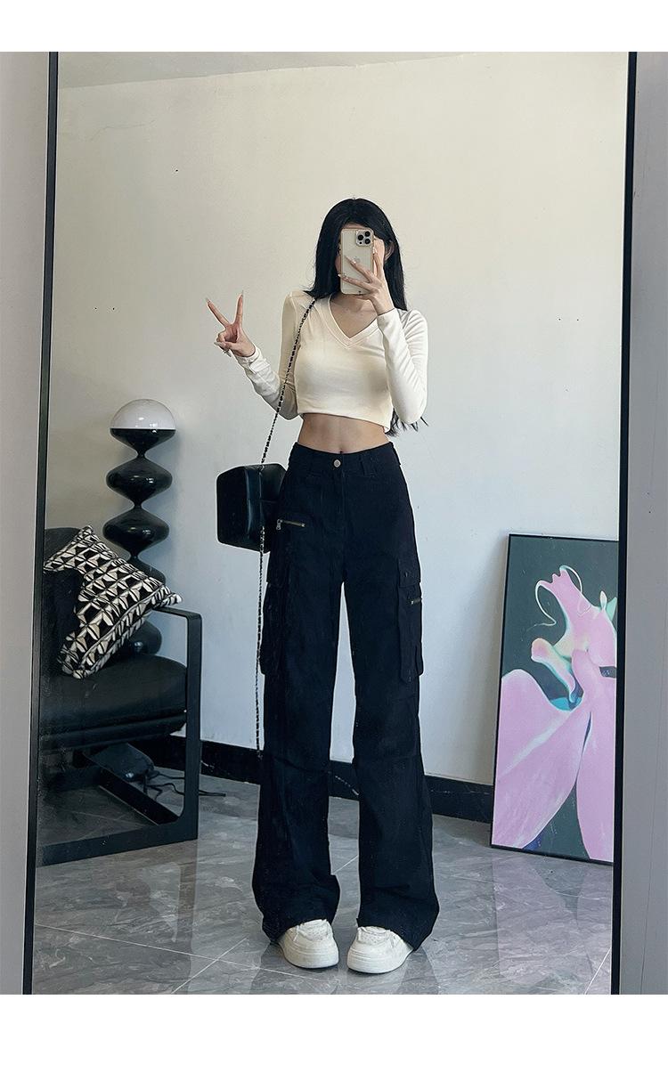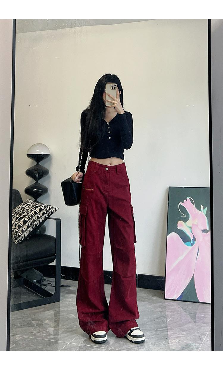 Compra Pantalones cargo plisados de estilo americano cool y vanguardista para mujer, primavera y otoño, diseño multibolsillo, vintage, holgados, rectos, largos hasta el suelo, de pierna ancha al por mayor en Joom.pro