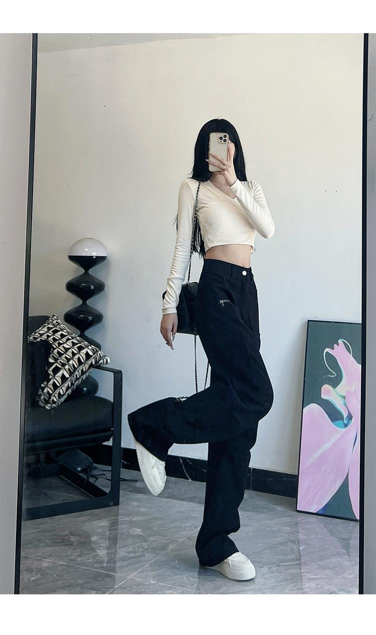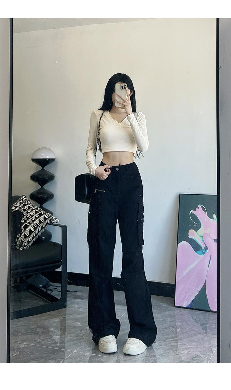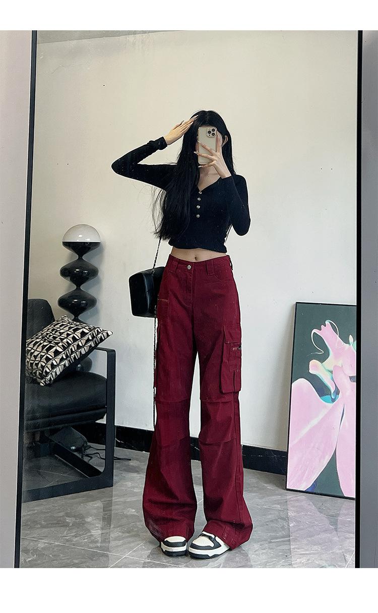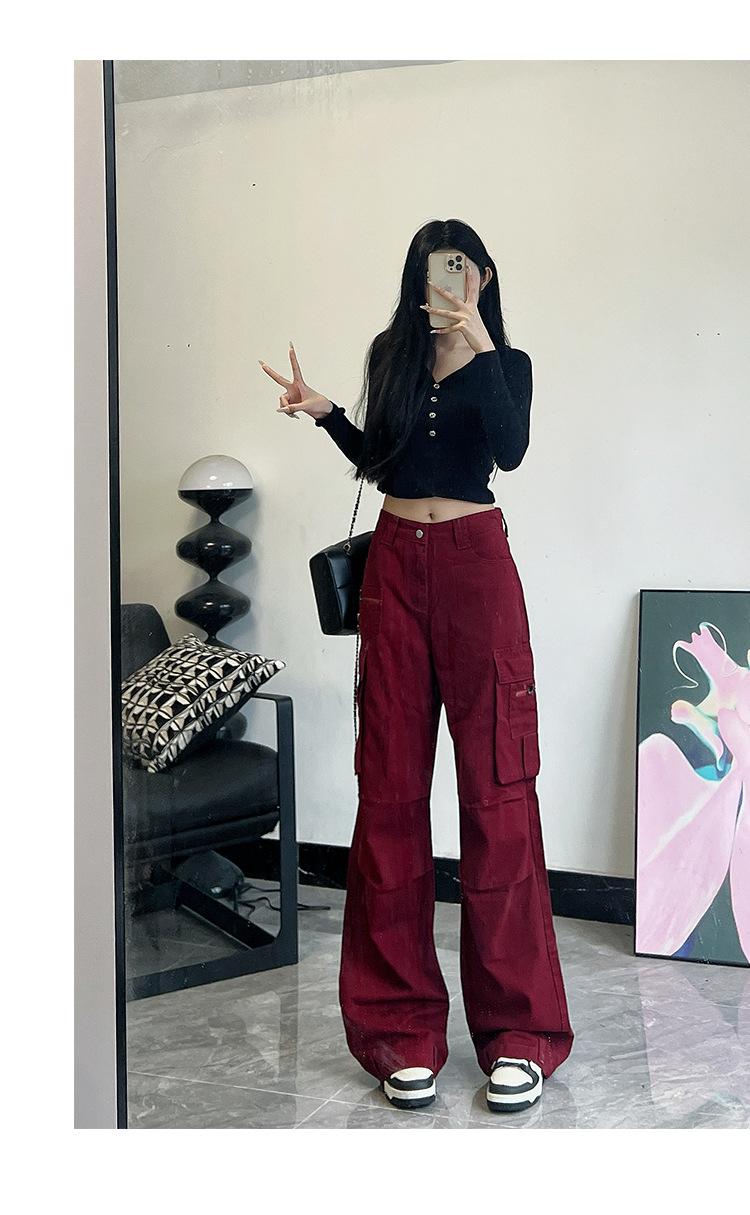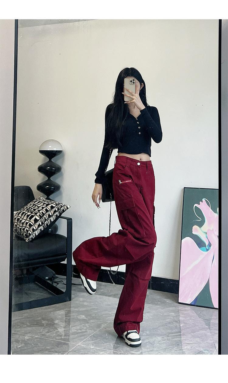 Compra Pantalones cargo plisados de estilo americano cool y vanguardista para mujer, primavera y otoño, diseño multibolsillo, vintage, holgados, rectos, largos hasta el suelo, de pierna ancha al por mayor en Joom.pro