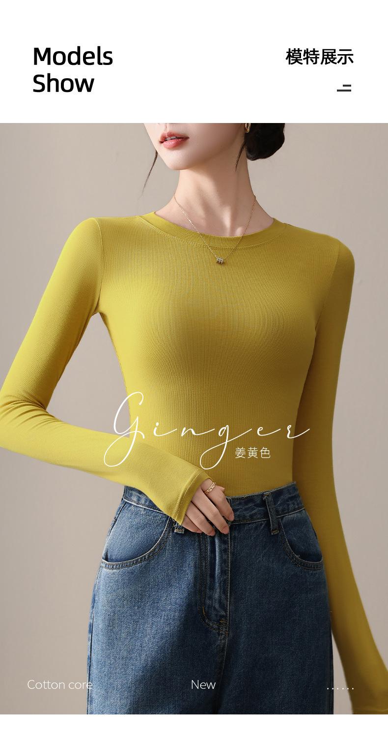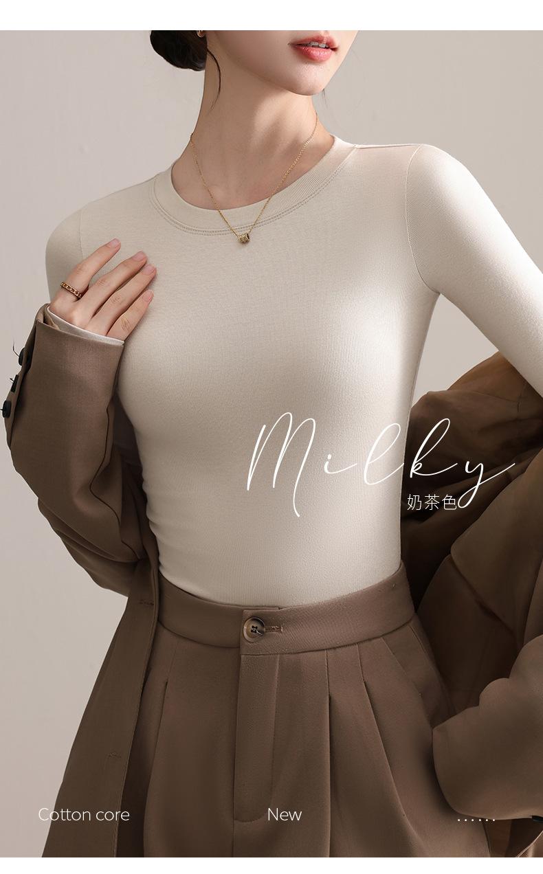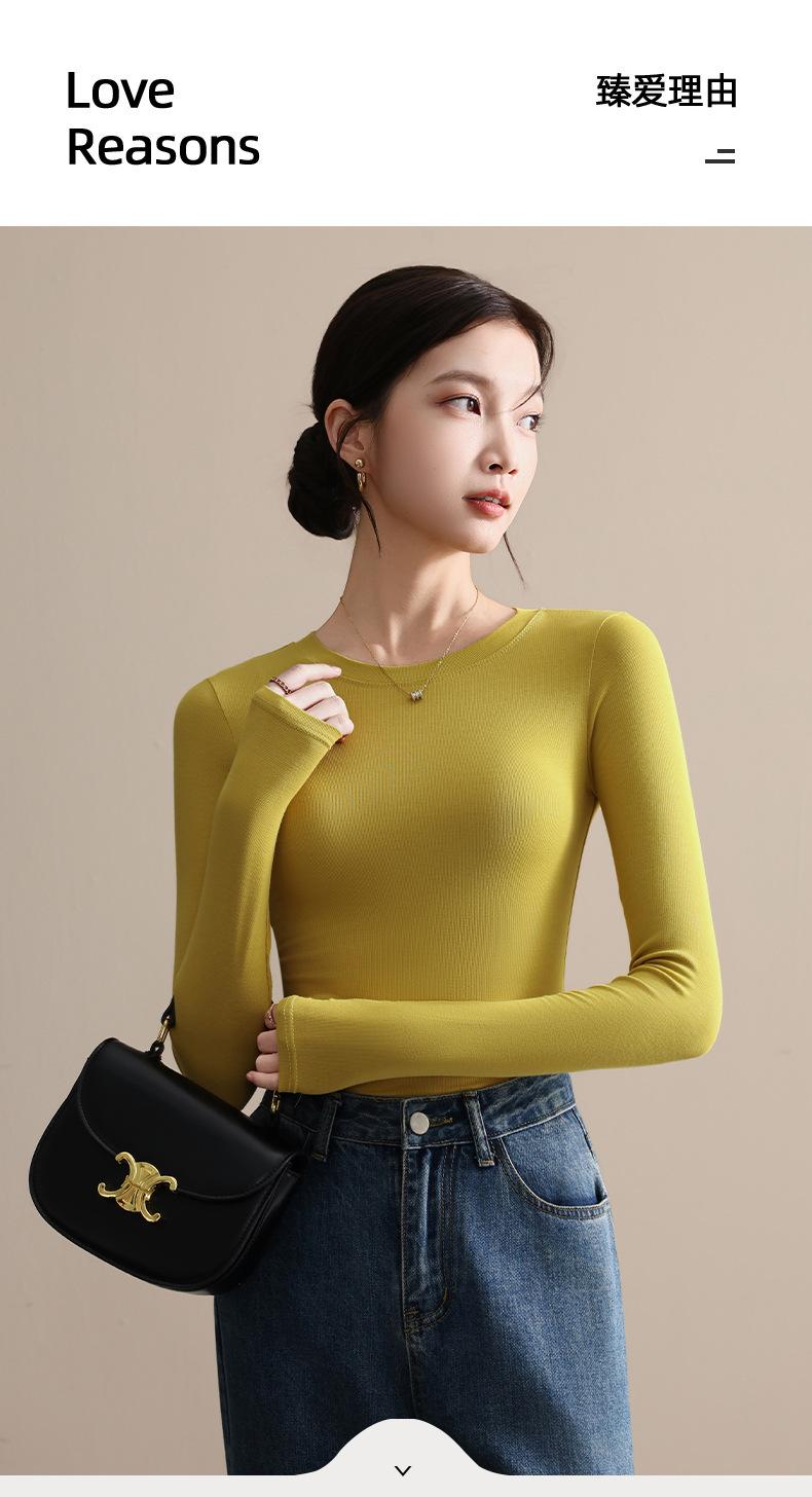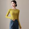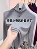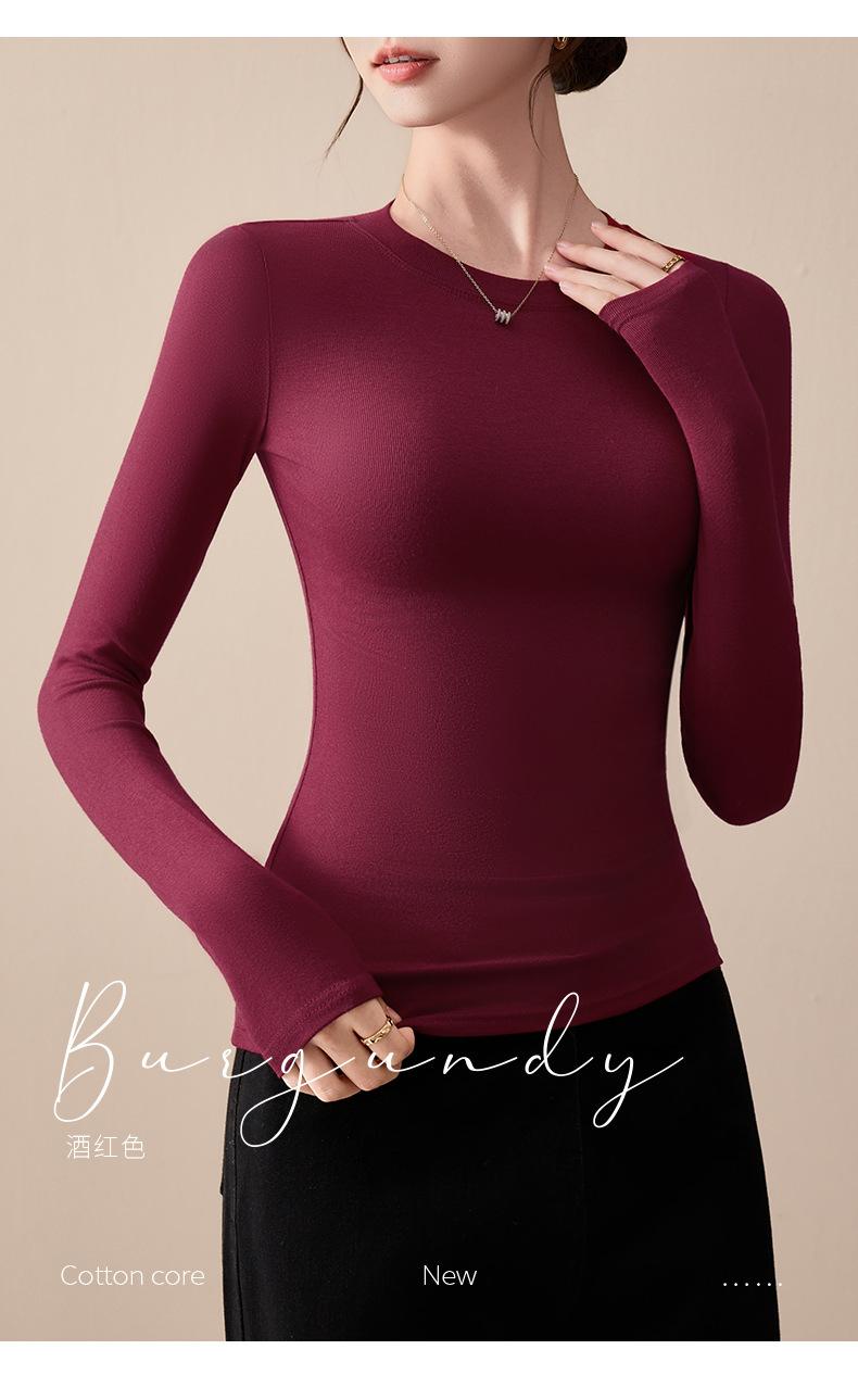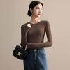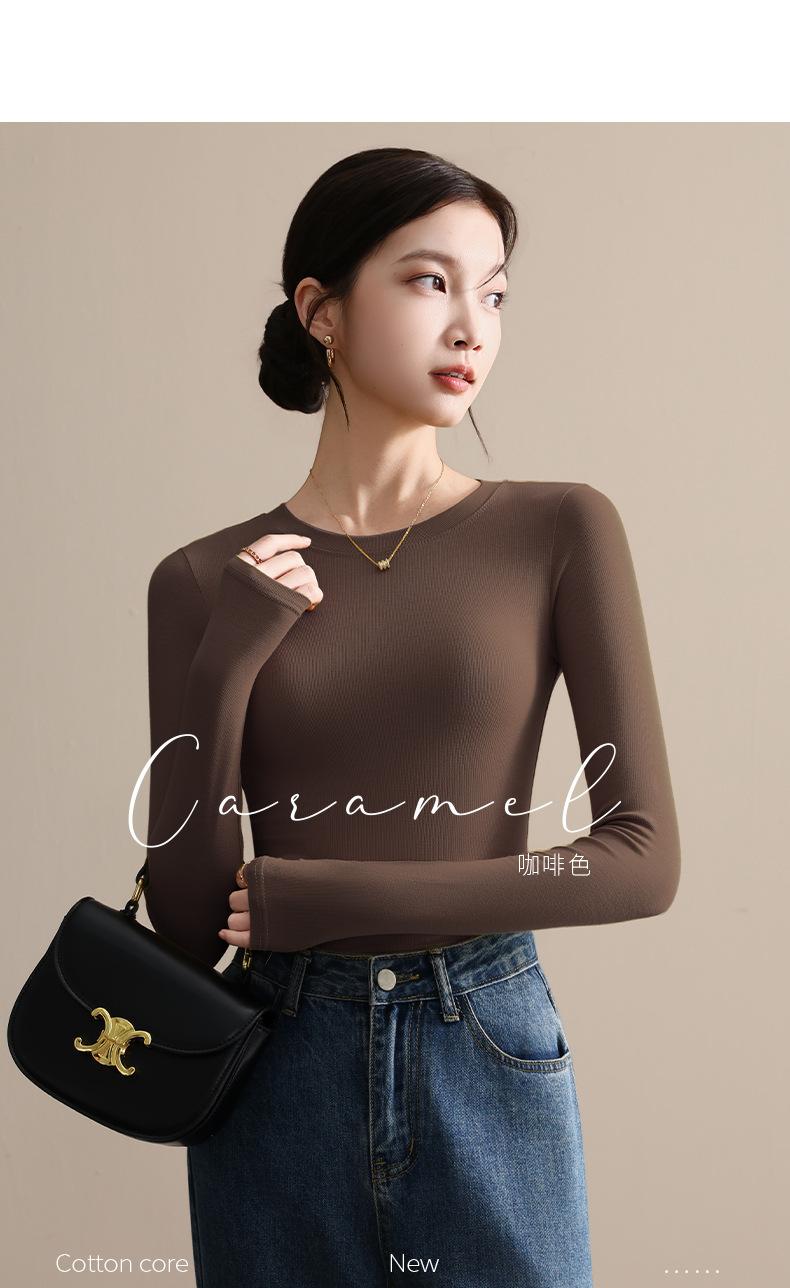 Playera de Cuello Redondo Hombro Recto Manga Larga Mujer Otoño 2025 Nueva Adelgazante Cuello Medio Alto Capa Base Ropa Interior Top Color Café
