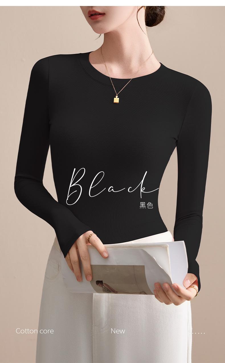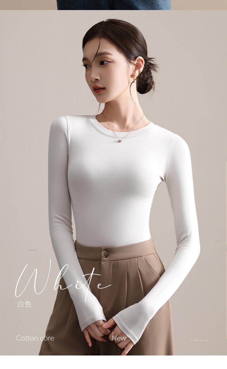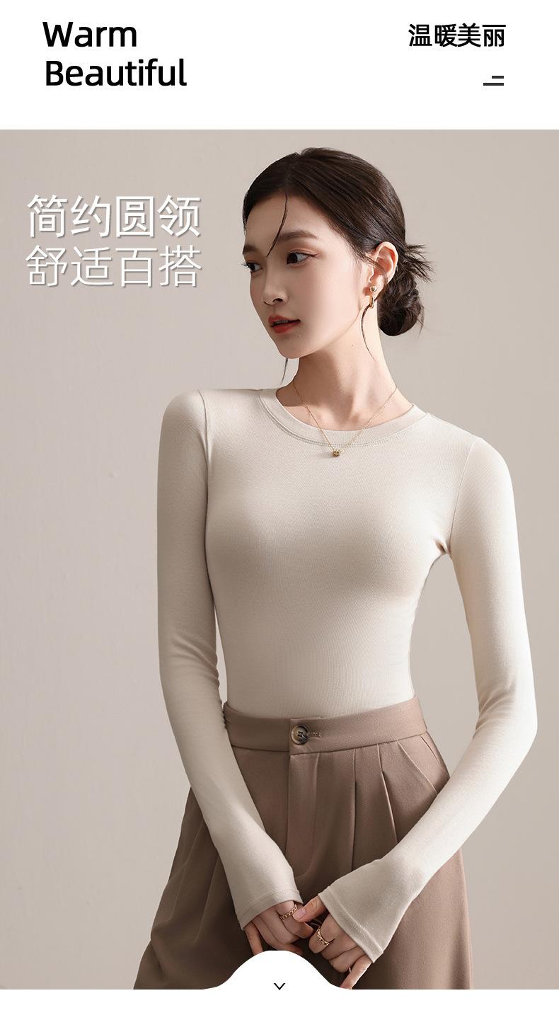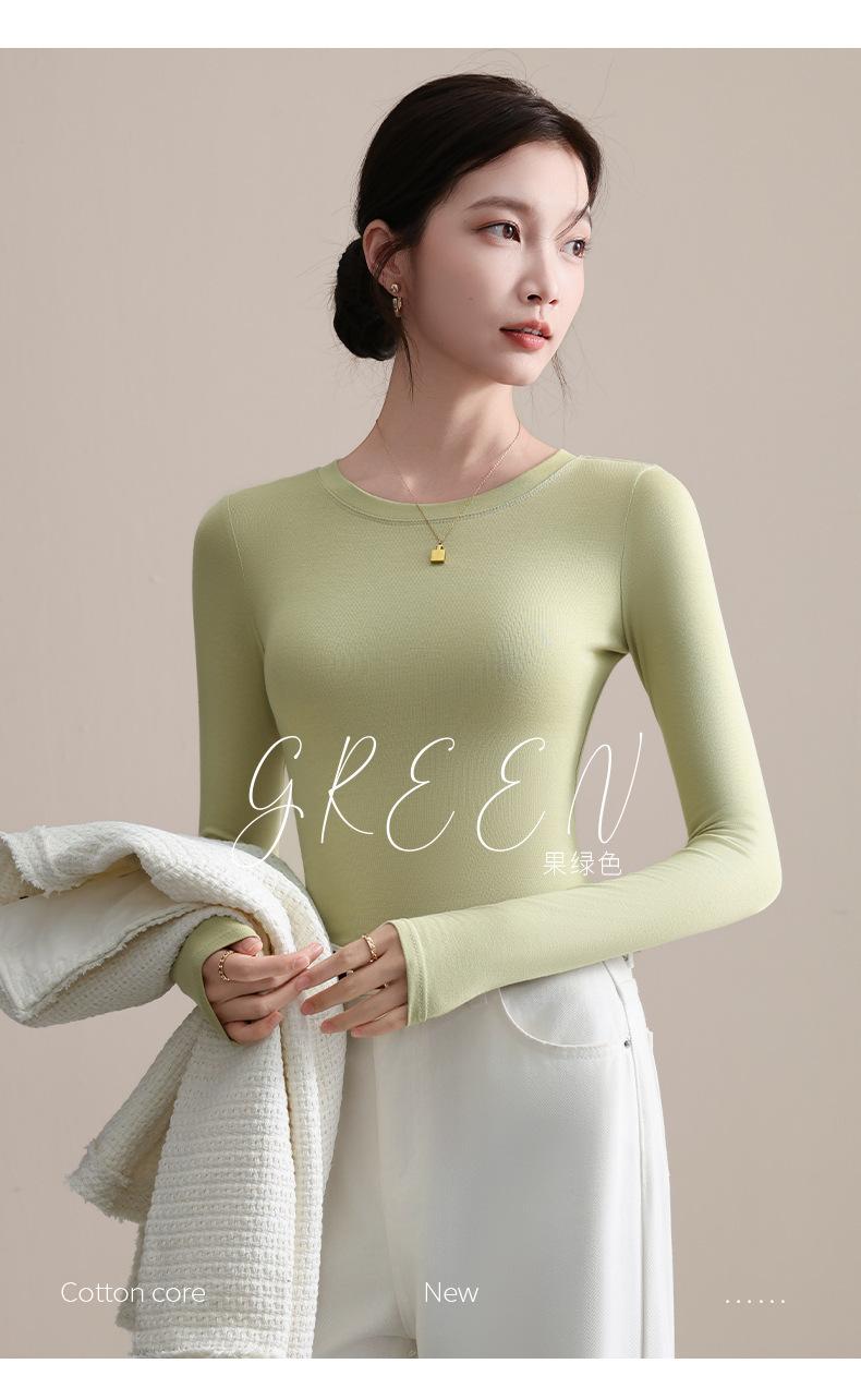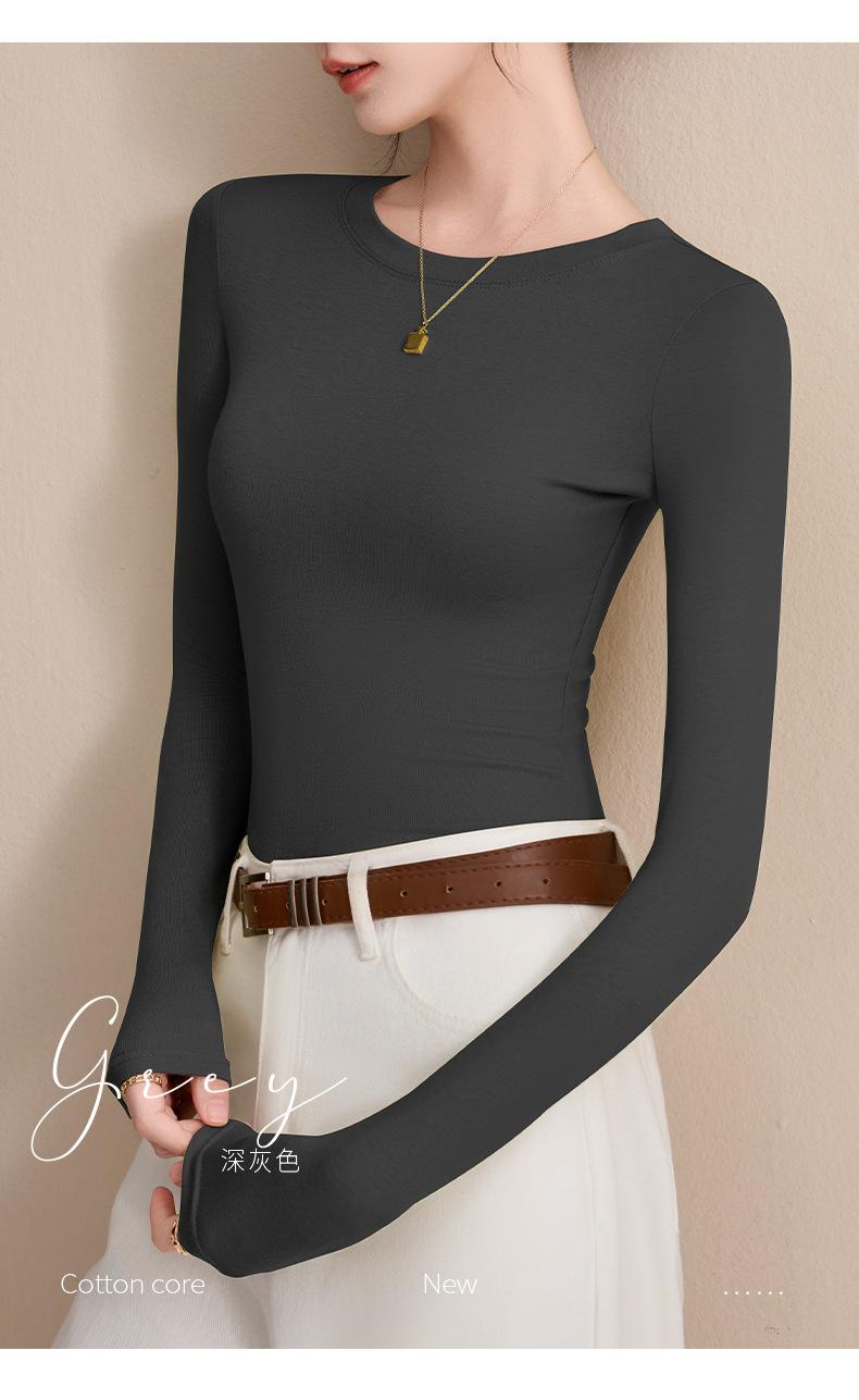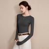 Playera de Cuello Redondo Hombro Recto Manga Larga Mujer Otoño 2025 Nueva Adelgazante Cuello Medio Alto Capa Base Ropa Interior Top Color Café